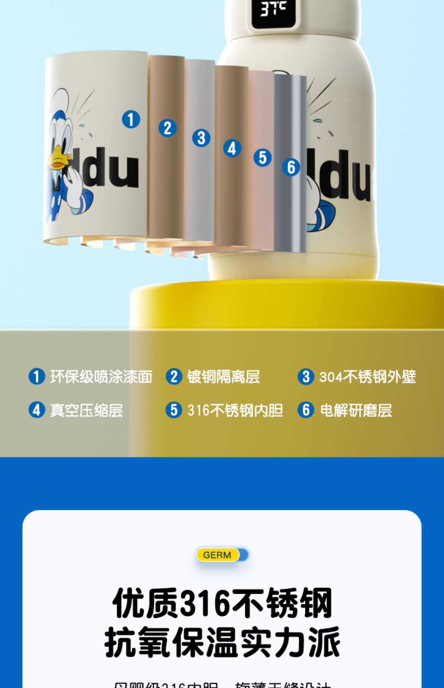 格沵GERM迪士尼智能儿童保温杯高颜值大容量水杯随行杯GM-52669/52676