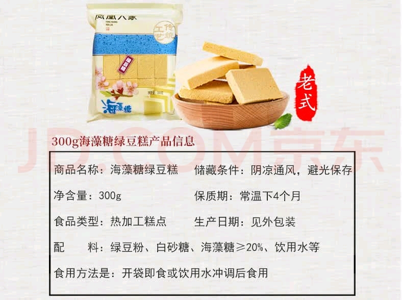 【凤凰人家绿豆糕】老式传统糕点/正宗特产/300g*2袋