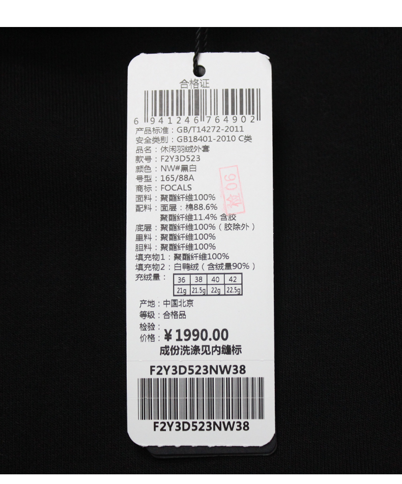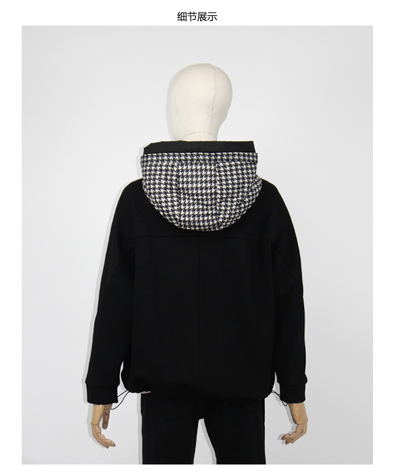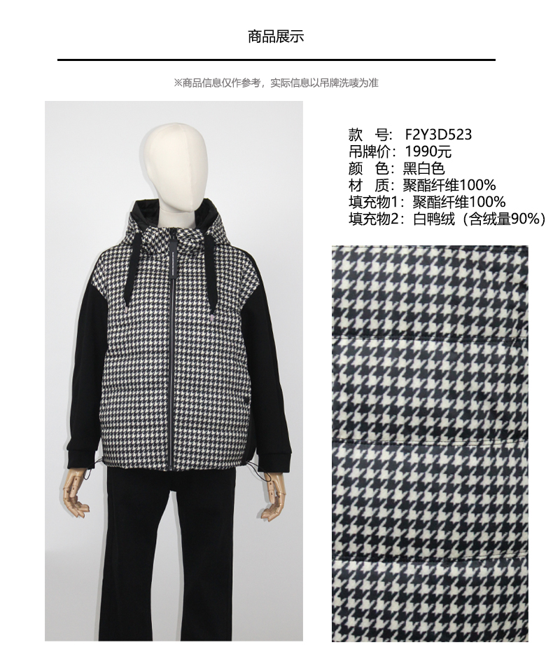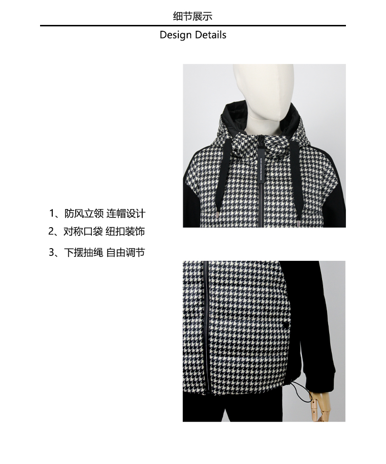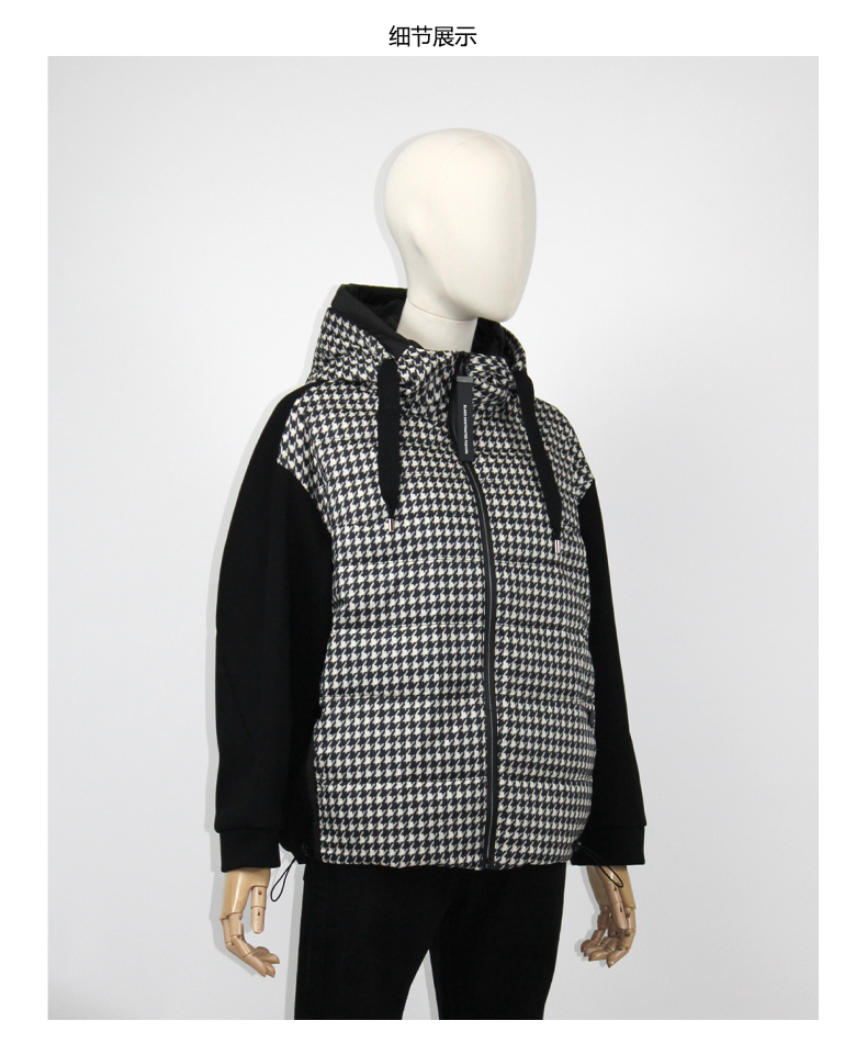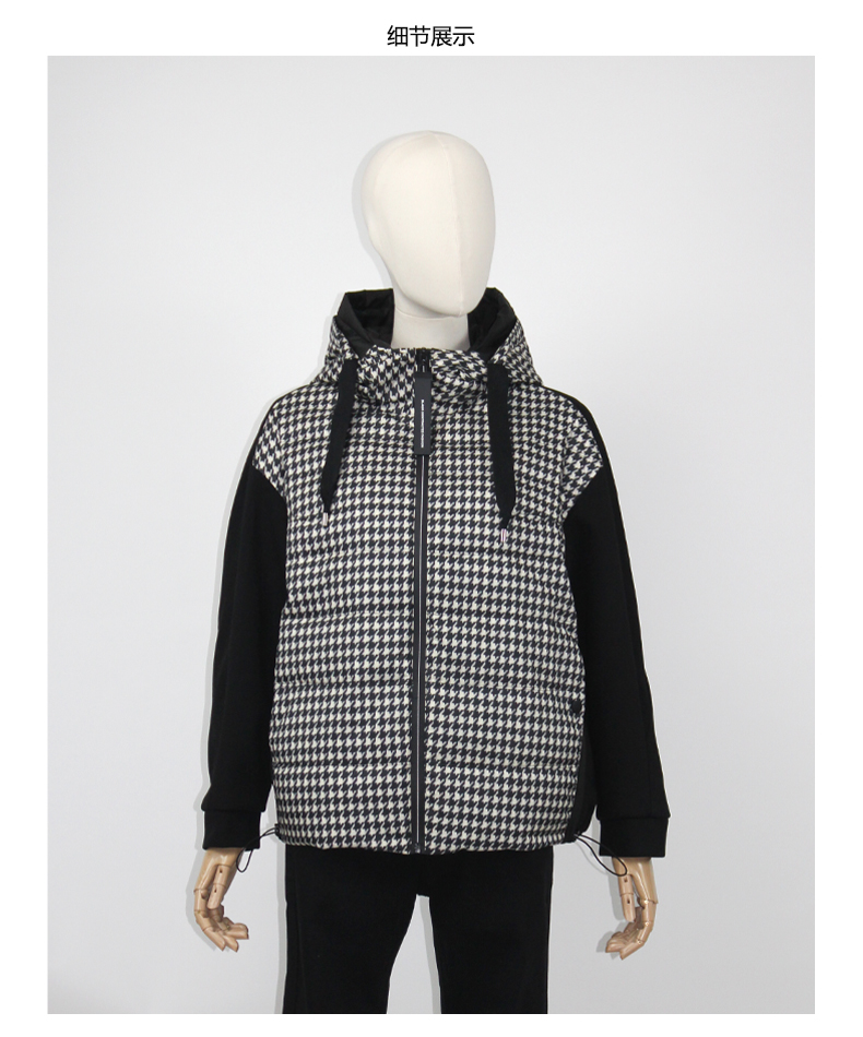 FOCALS福柯斯女装冬季新款印花休闲拼接连帽短款羽绒服F2Y3D523NW