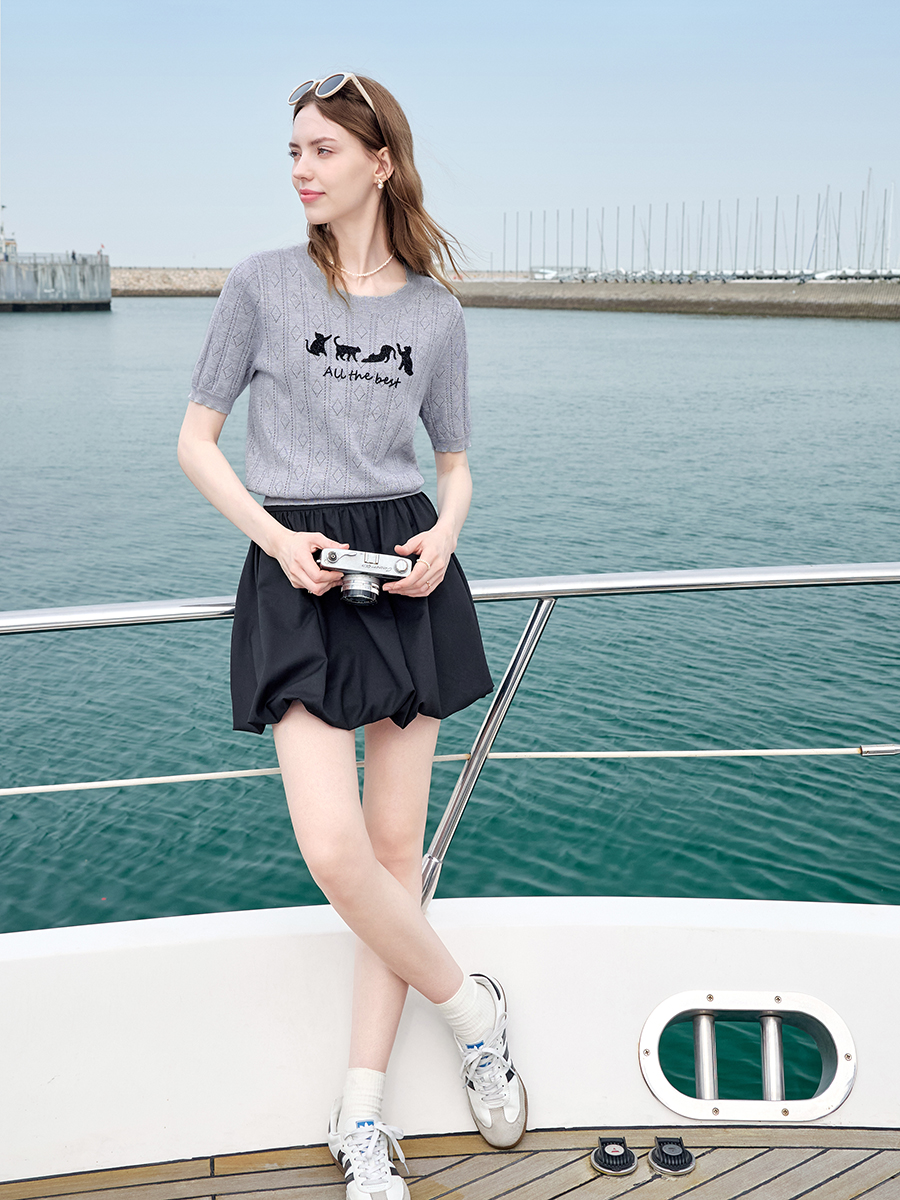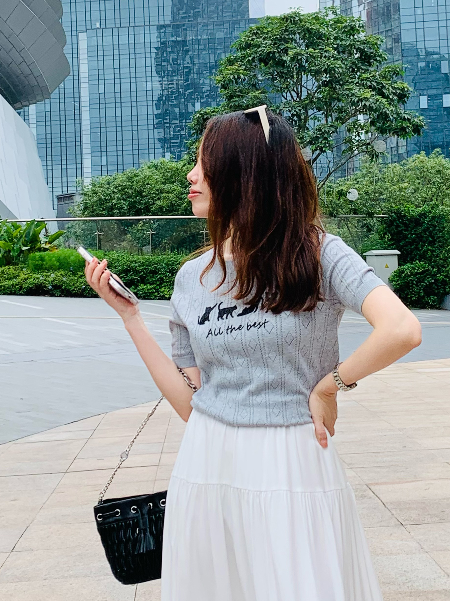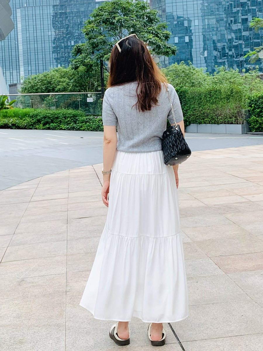 这款针织衫采用冰凉曲珠纱线编织,面料自带微微的肌理感,上身透气不闷汗,夏天穿也清爽舒适~ 纱线中穿插细金线,不是那种闪瞎眼的土豪金,而是若隐若现的低调细闪,像阳光洒在湖面上的碎光,日常穿不夸张,但一抬手一转身就能发现小心机。