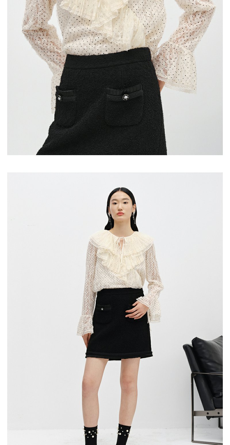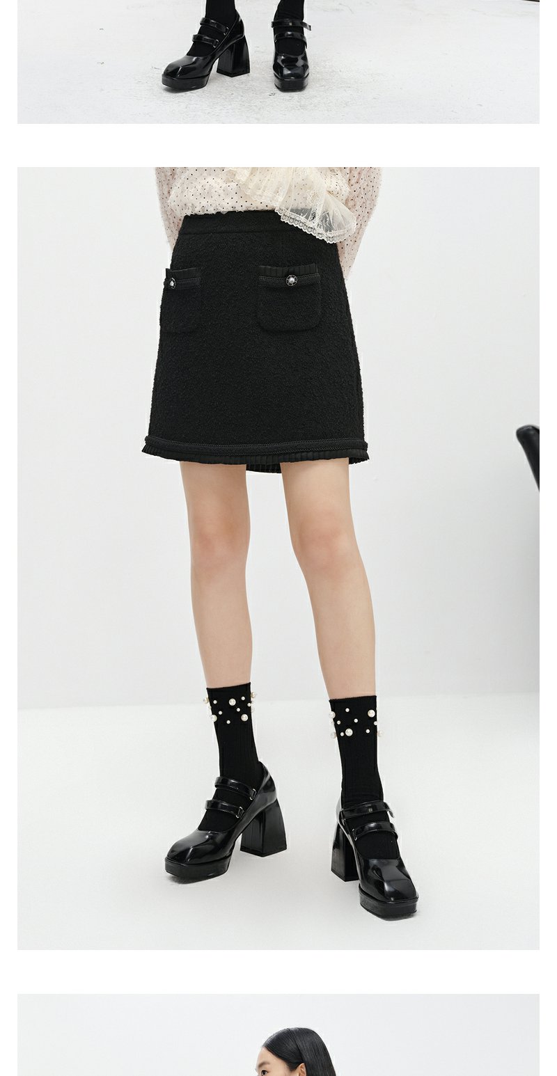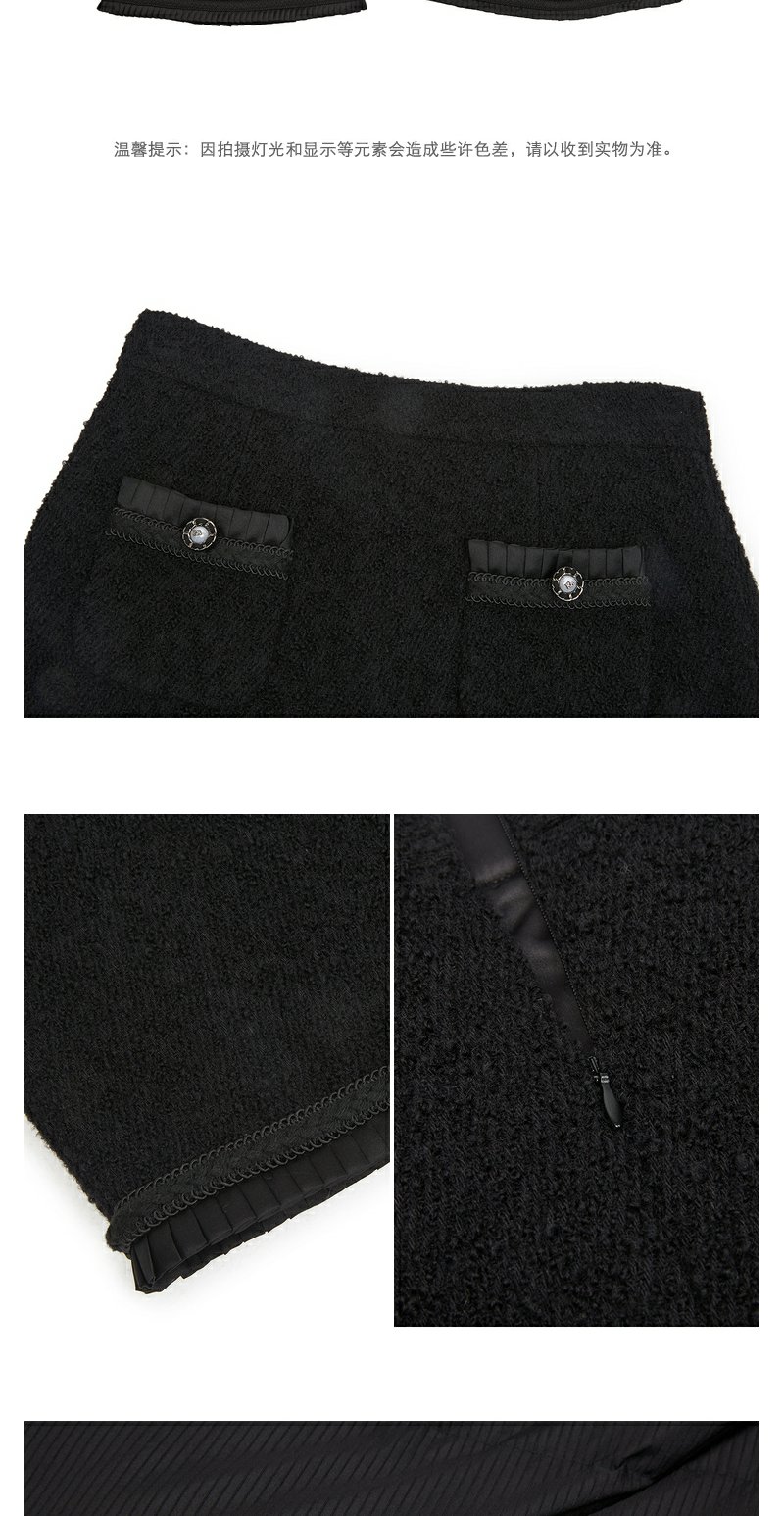 NEELLY纳俪商场同款小香风黑色半身裙女冬季新款高腰A字裙短裙N22122E01184