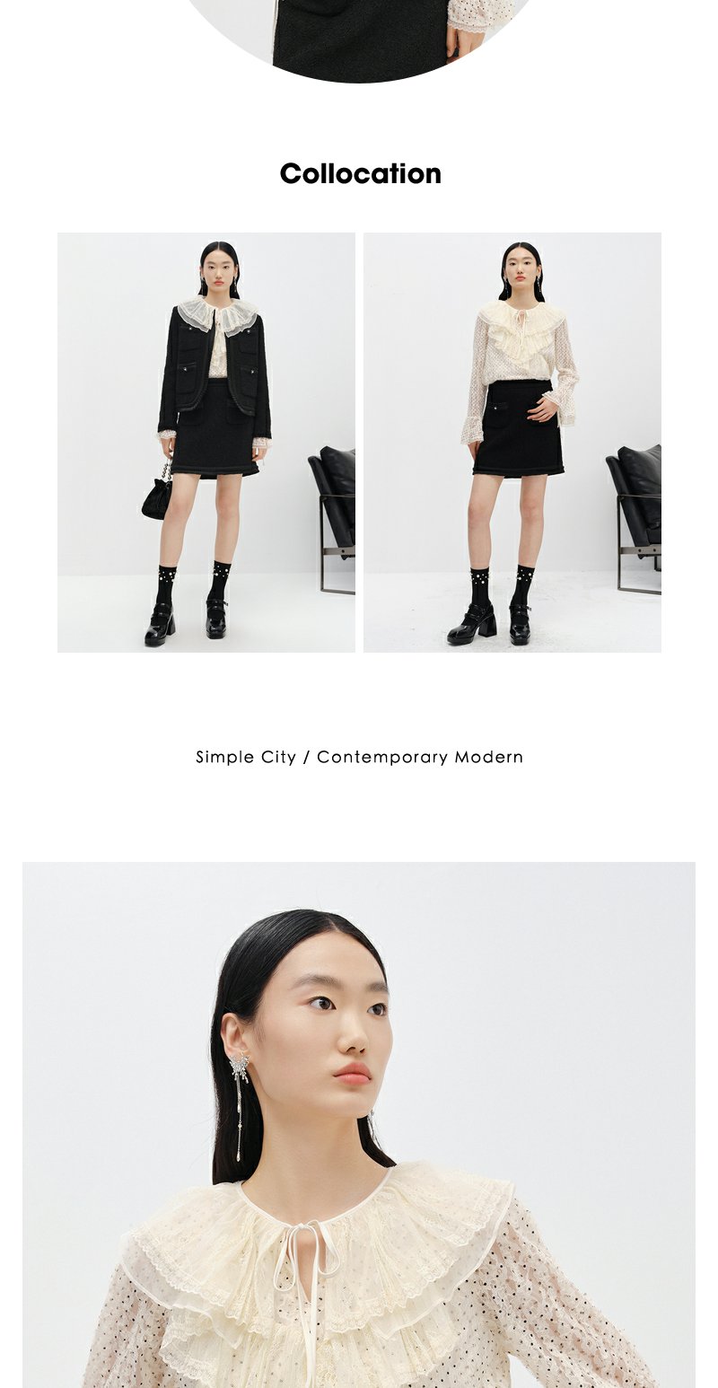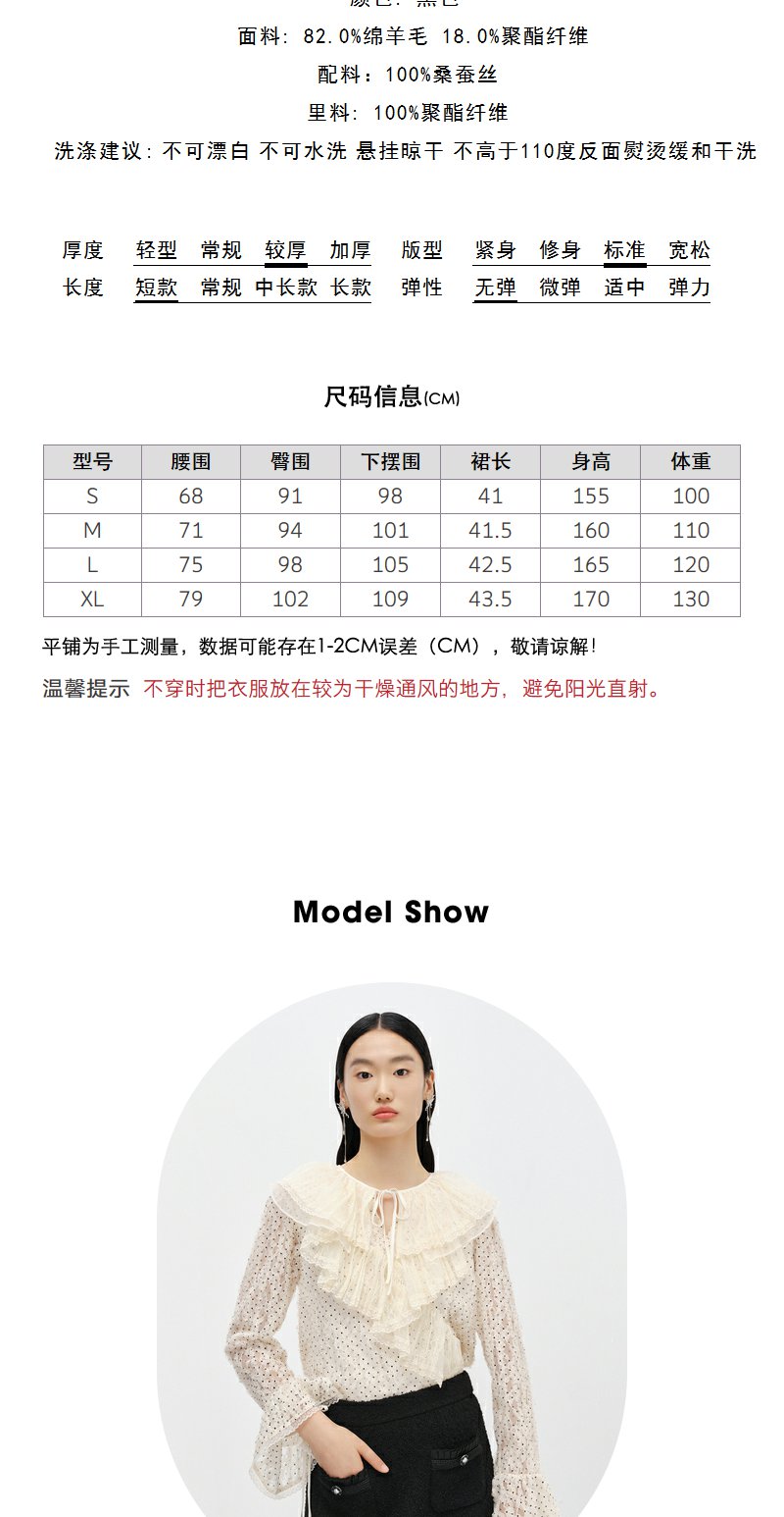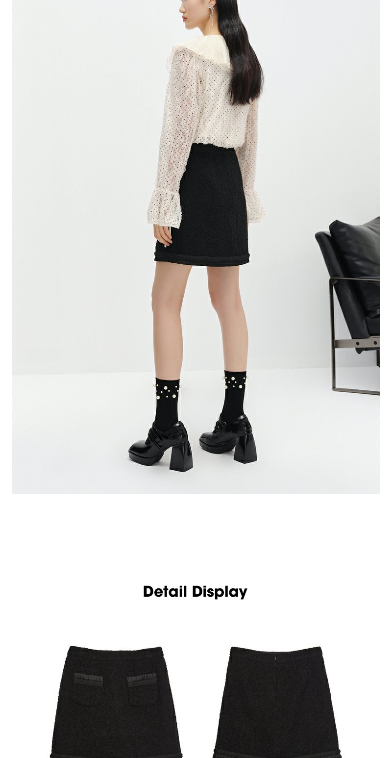 NEELLY纳俪商场同款小香风黑色半身裙女冬季新款高腰A字裙短裙N22122E01184