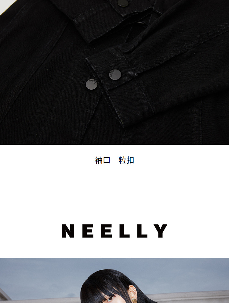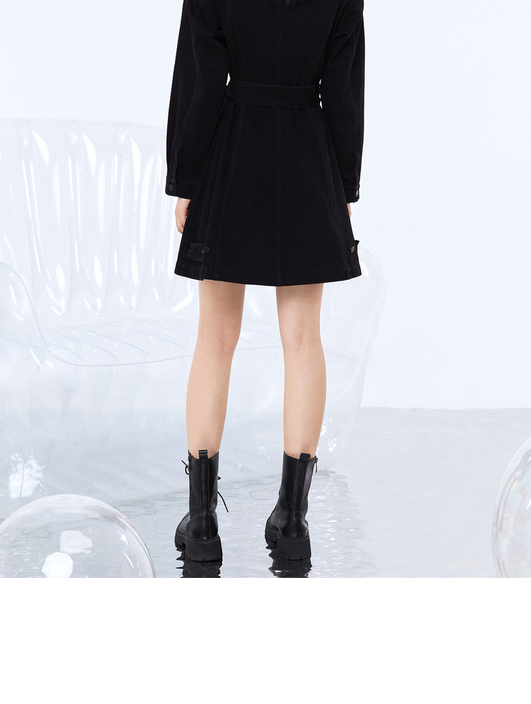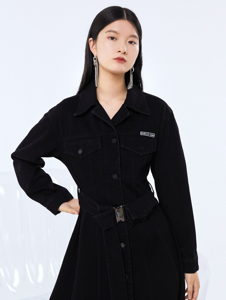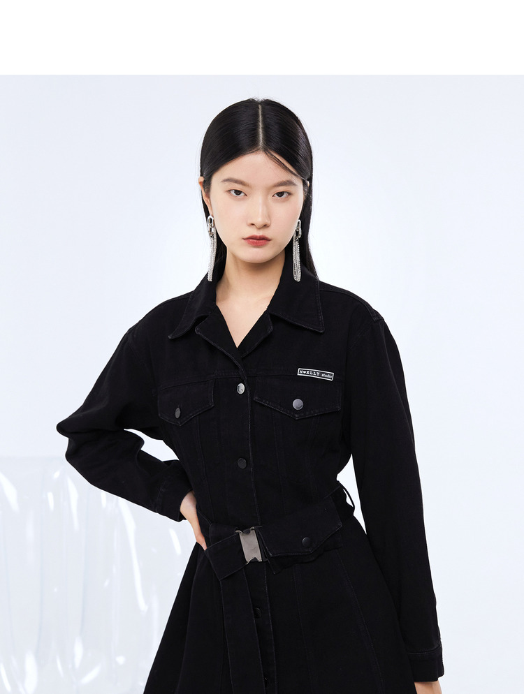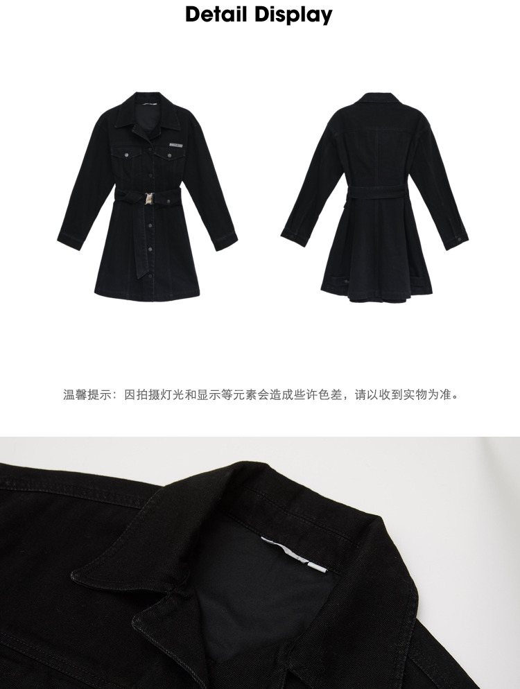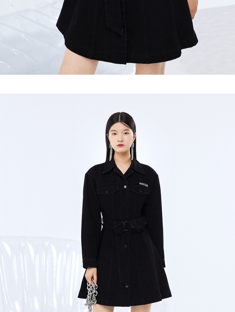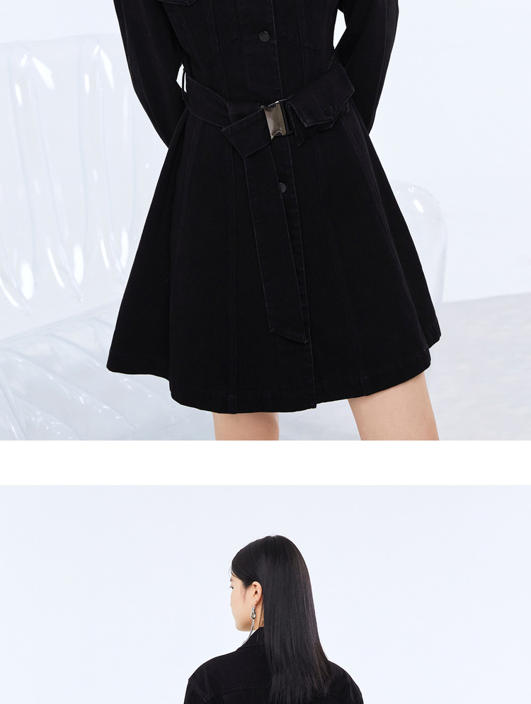 NEELLY纳俪气质翻领牛仔连衣裙女秋季单排扣可调节腰带A字中长款N21082Y01151