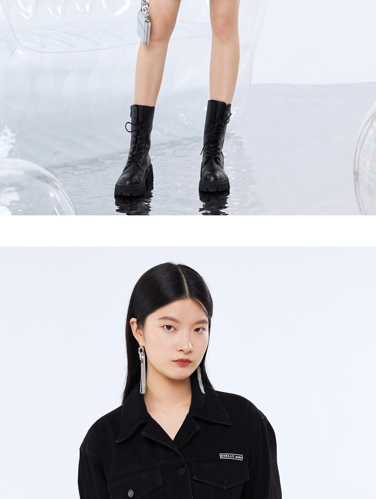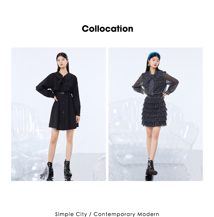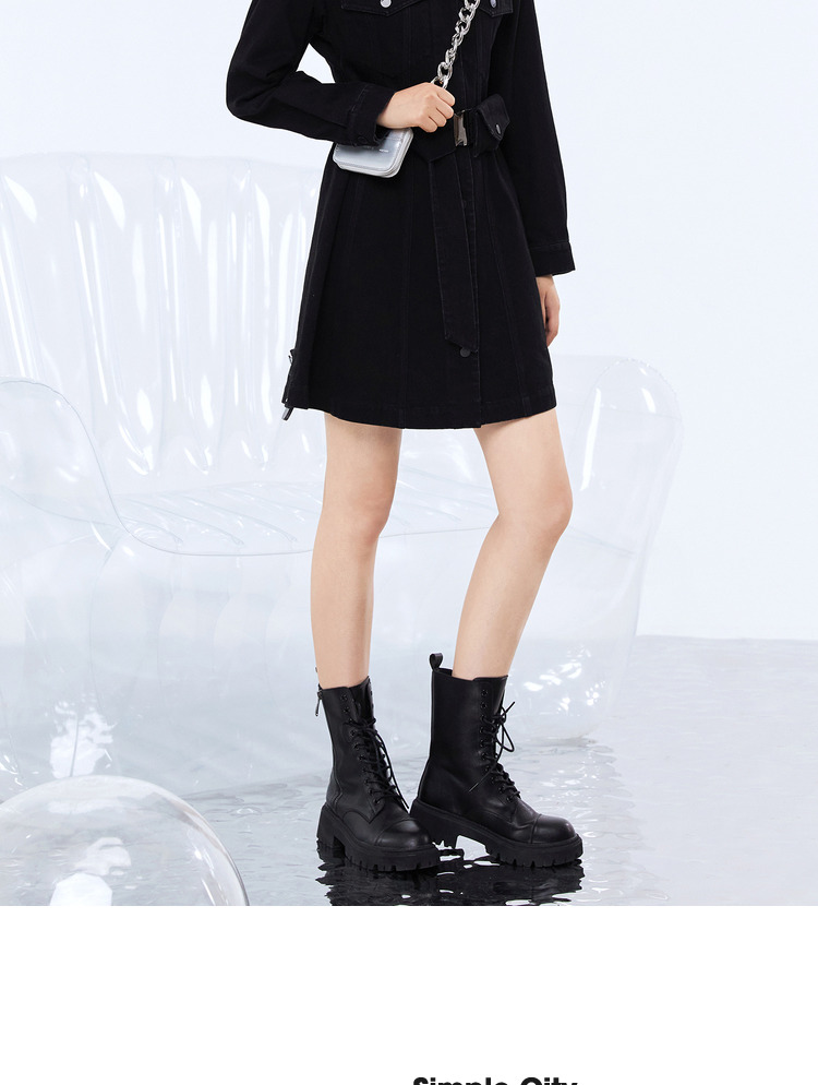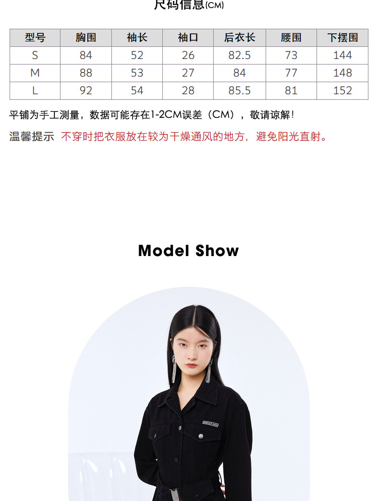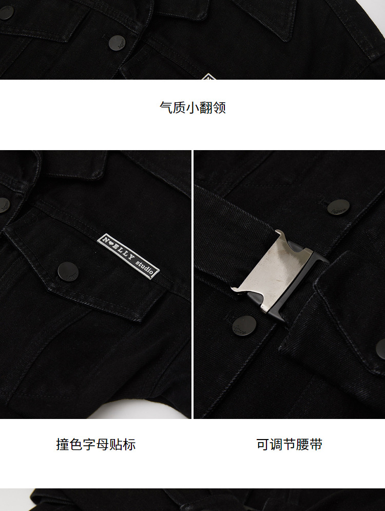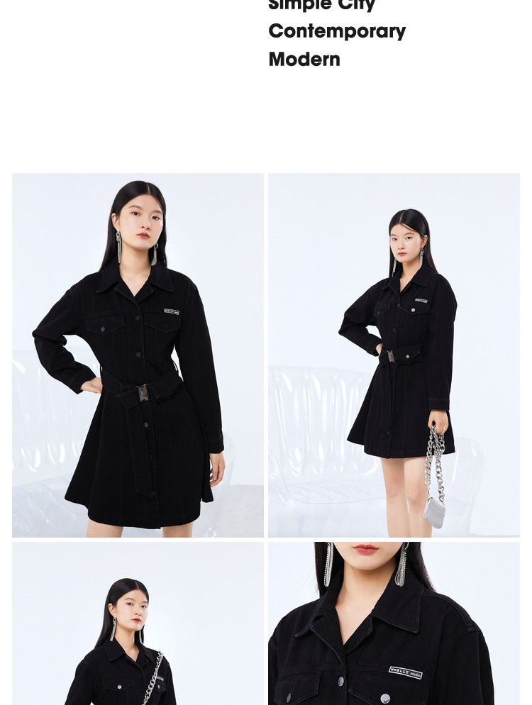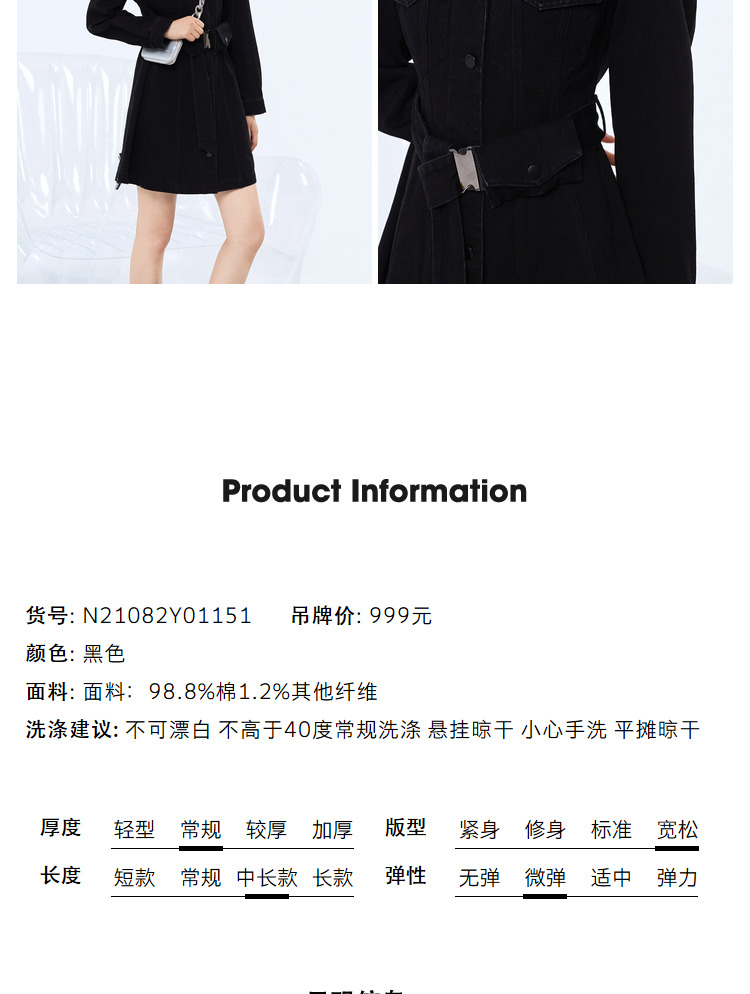 NEELLY纳俪气质翻领牛仔连衣裙女秋季单排扣可调节腰带A字中长款N21082Y01151