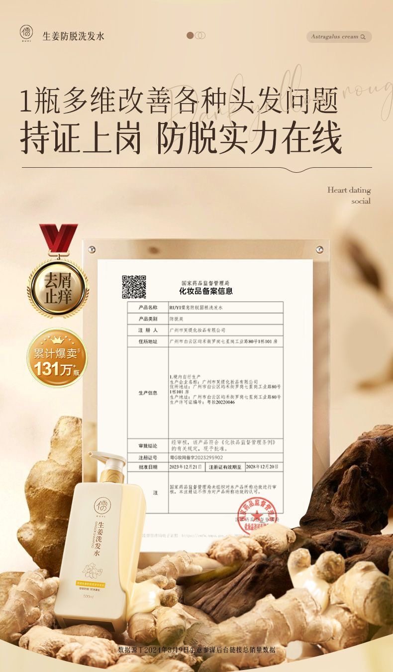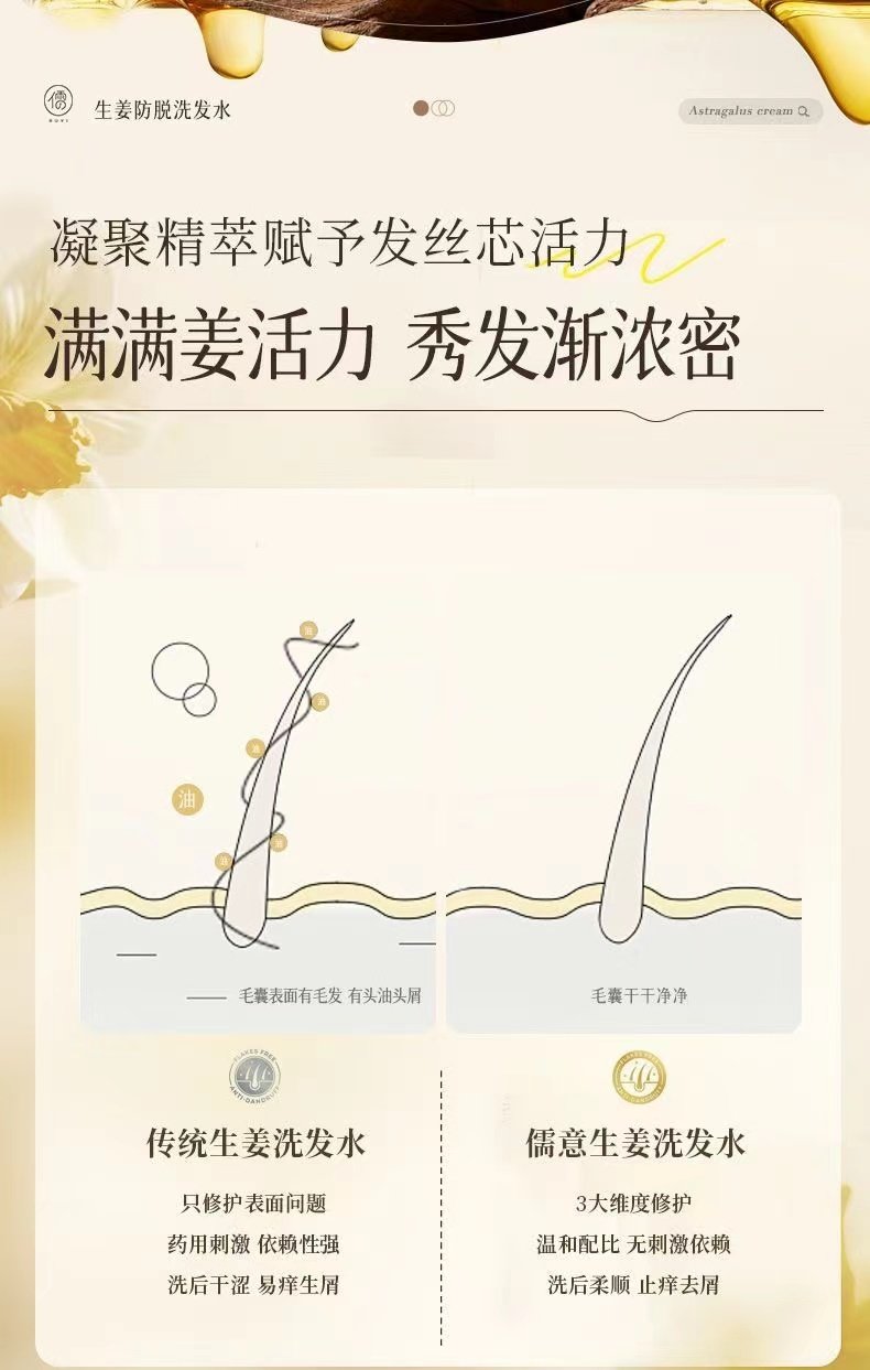 儒意生姜洗发水500ml 滋养发根护发控油蓬松去屑止痒洗头露 | 儒意官方商城