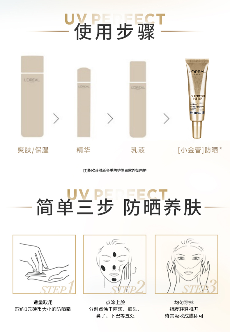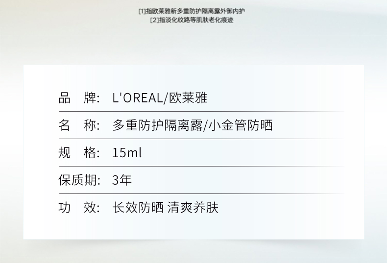 【镇店防晒】欧莱雅外御内护小金管防晒隔离霜SPF50+15ML*4