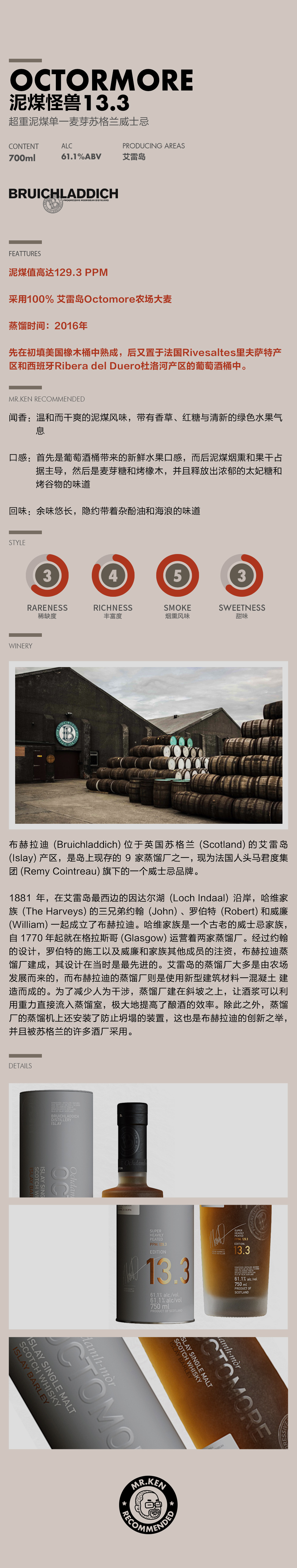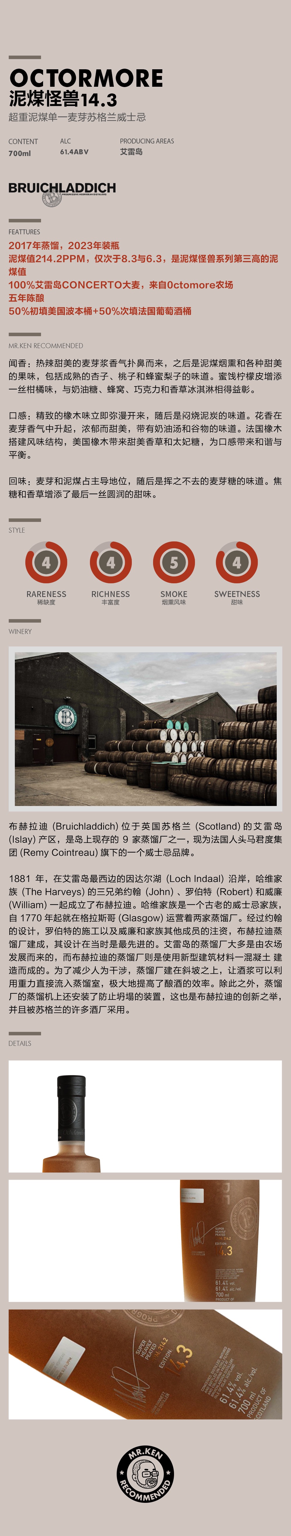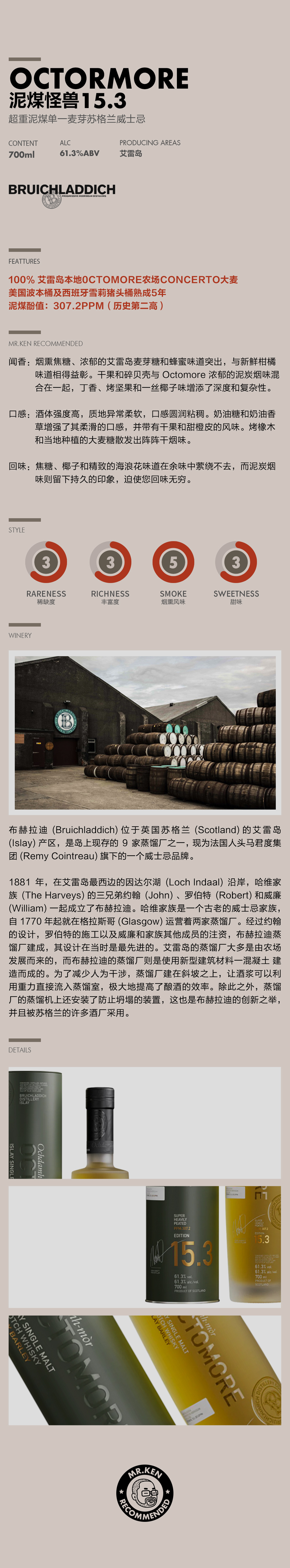 【.3套组】泥煤怪兽(Octomore) 13.3/14.3/15.3超重泥煤单一麦芽苏格兰威士忌