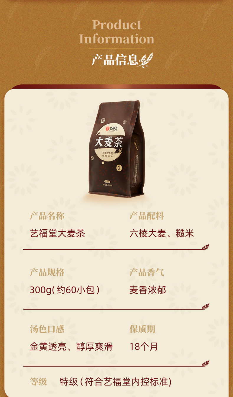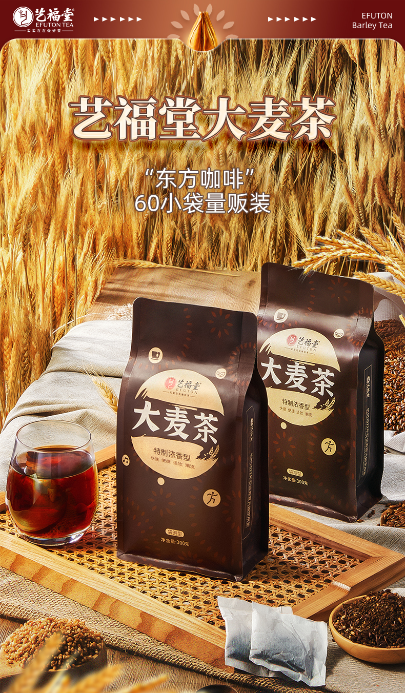 【买1送1】艺福堂 大麦茶 原味烘焙浓香型散装袋泡 300g