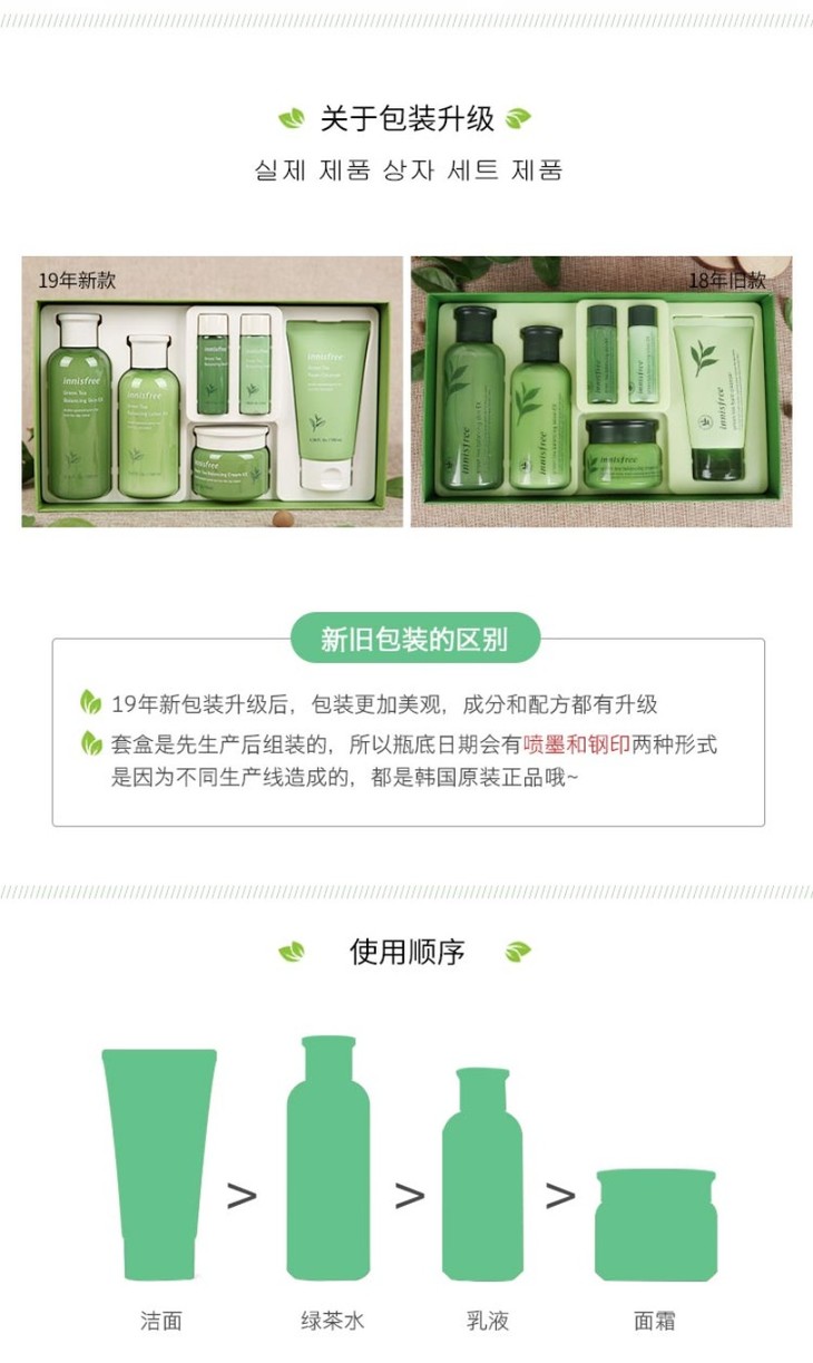 【香港直邮】innisfree/悦诗风吟绿茶平衡保湿水乳补水套装清爽六件套