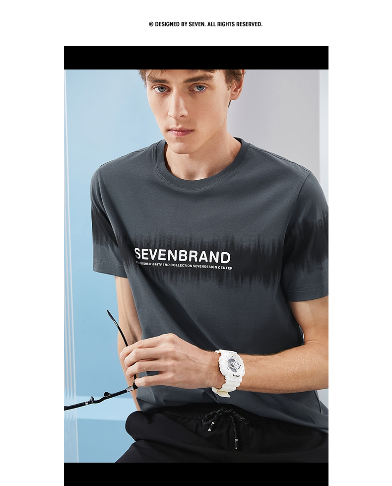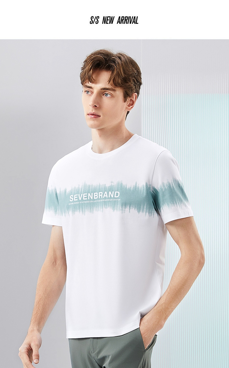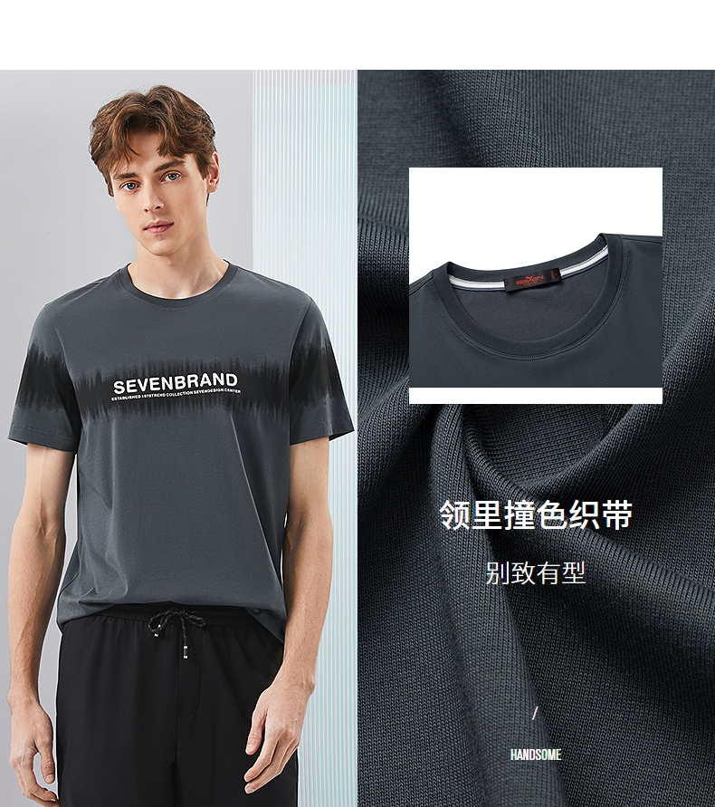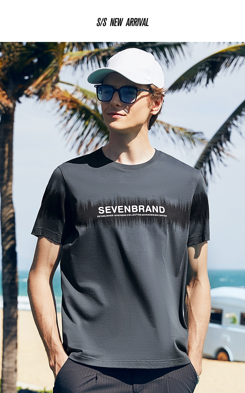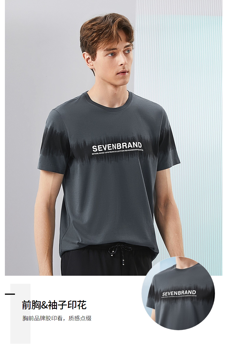 【特价】【冰藻泥】柒牌印花短袖T恤男2024夏季新品亲肤透气圆领休闲上衣 126T72260