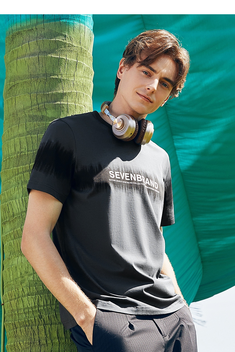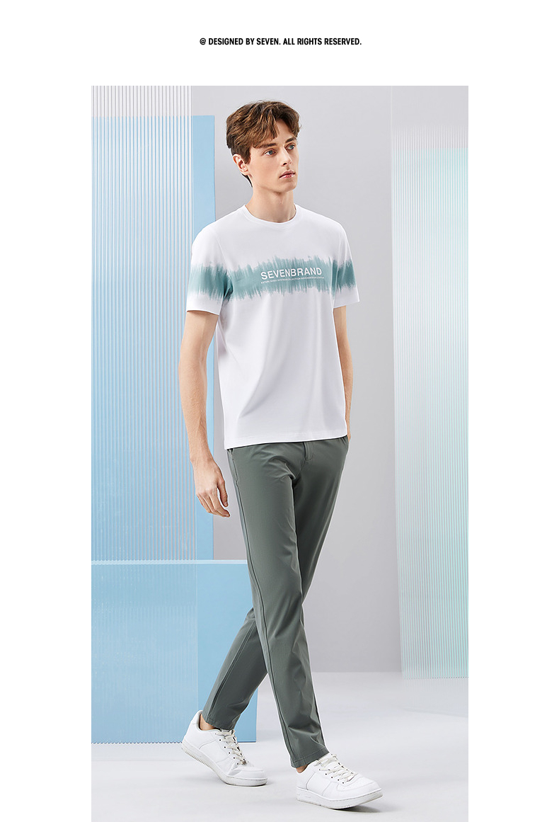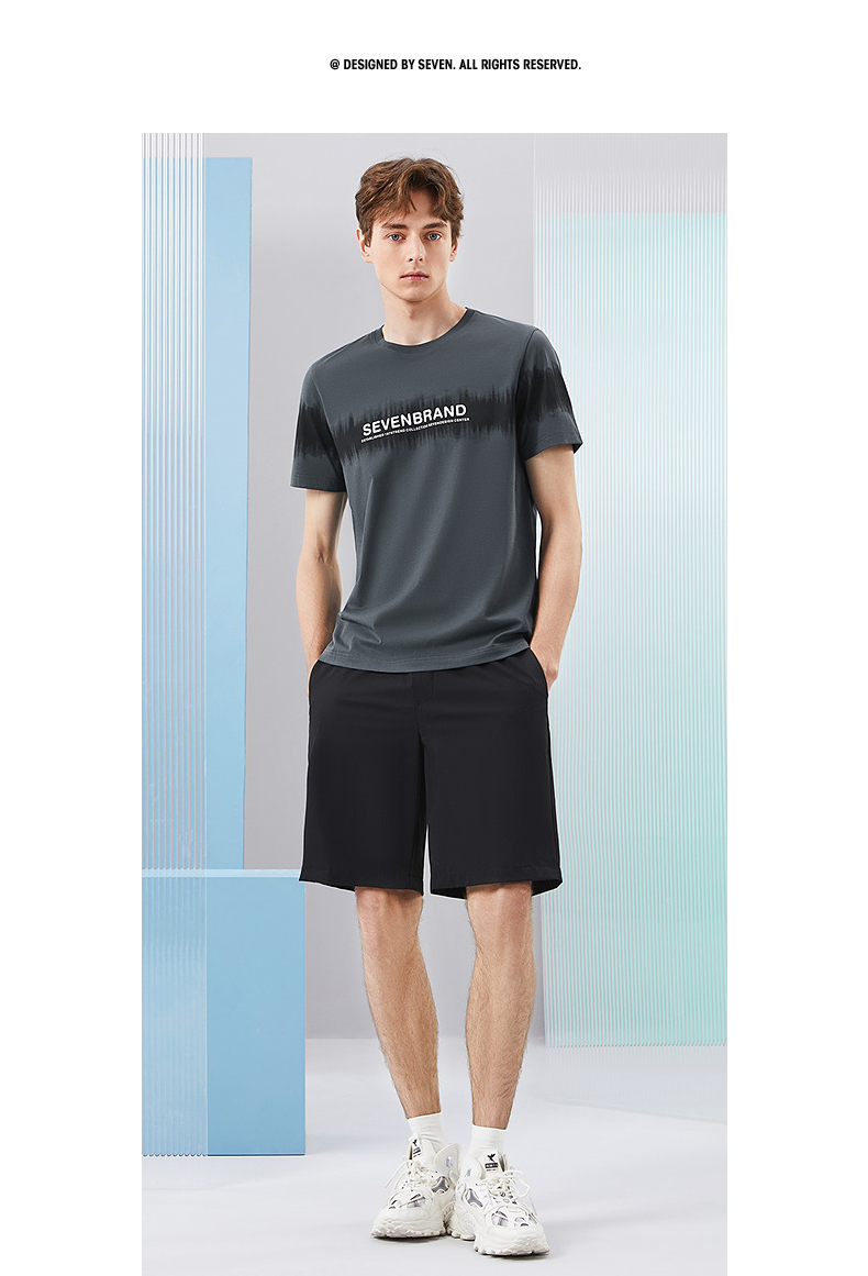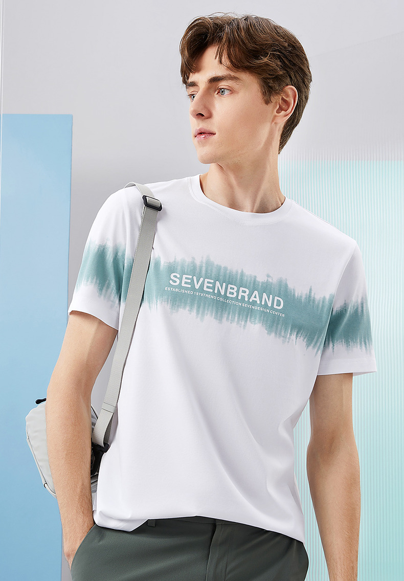 【特价】【冰藻泥】柒牌印花短袖T恤男2024夏季新品亲肤透气圆领休闲上衣 126T72260