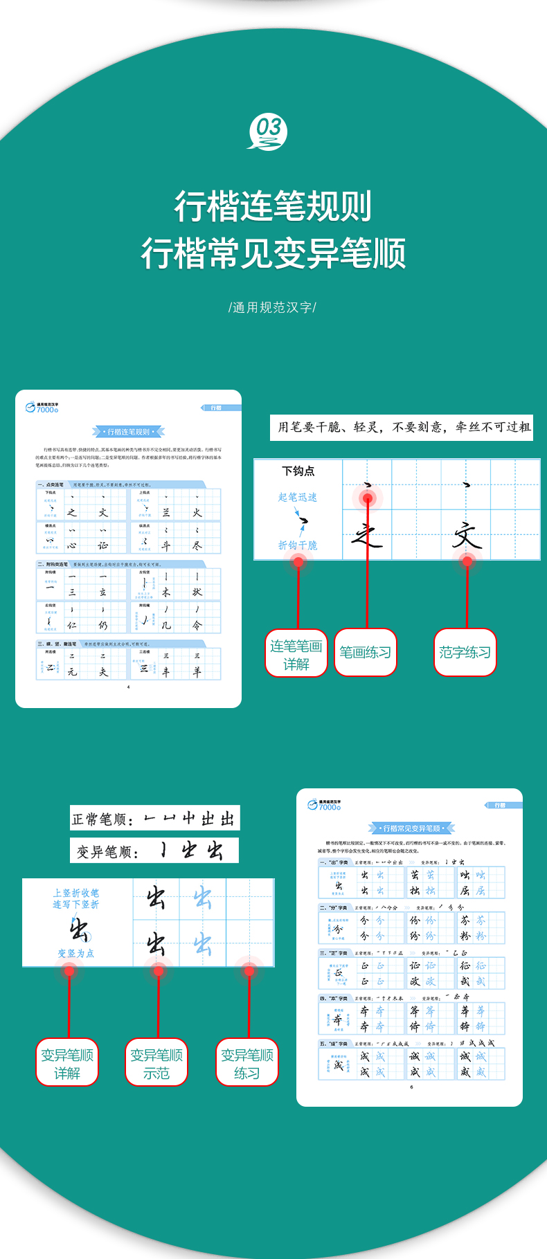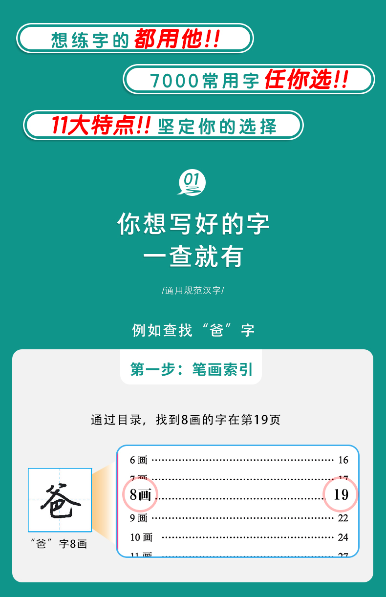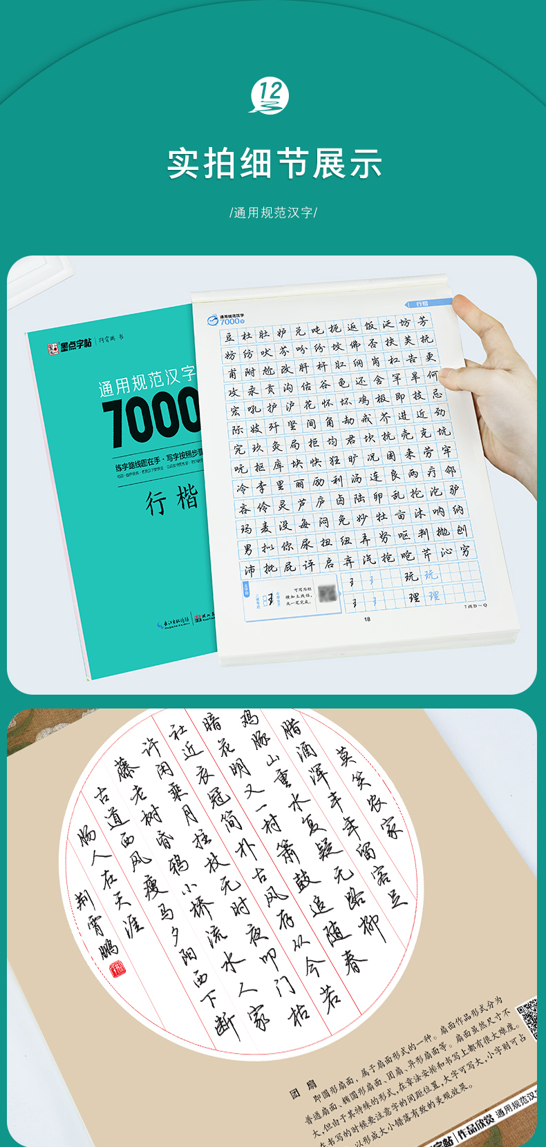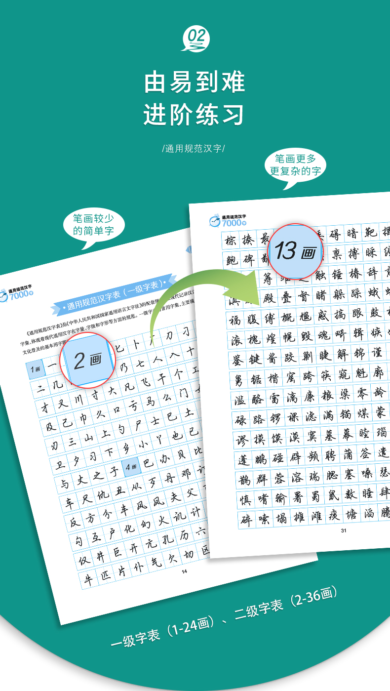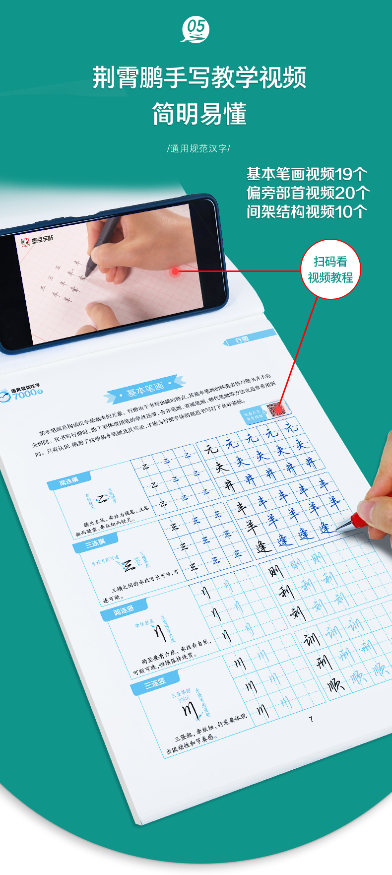 本书主要内容根据国家近期新《通用规范汉字表》《汉字应用水平测试字表》编写,其中7000字全录《通用规范汉字表》中的一级字表和二级字表,其中二级字表的使用频率低于一级字表。除此以外,打破枯燥单字练习模式,循序渐进,提供增值服务。增设“练字路线图”指引读者更好的使用本书,设有练字打卡功能。增设控笔训练,帮助读者提高控笔能力。设置基本笔画、偏旁部首、间架结构名师讲解视频,内容对应,帮助读者打好基础。增设笔画+音序检索功能,读者找字更快捷。设置笔迹检测和彩色作品页,让读者会写更会用。