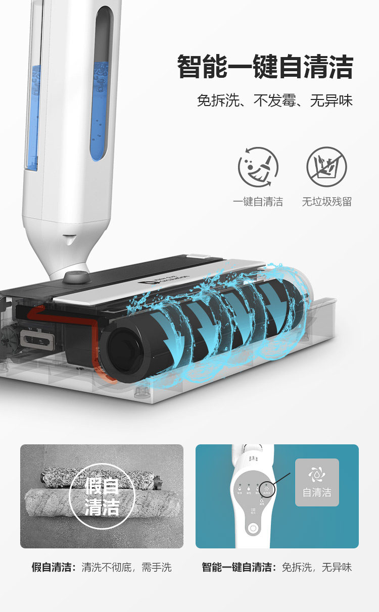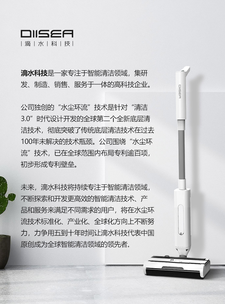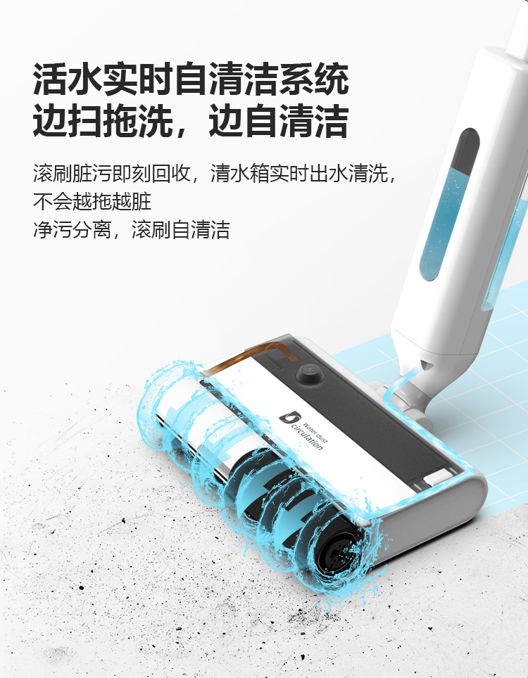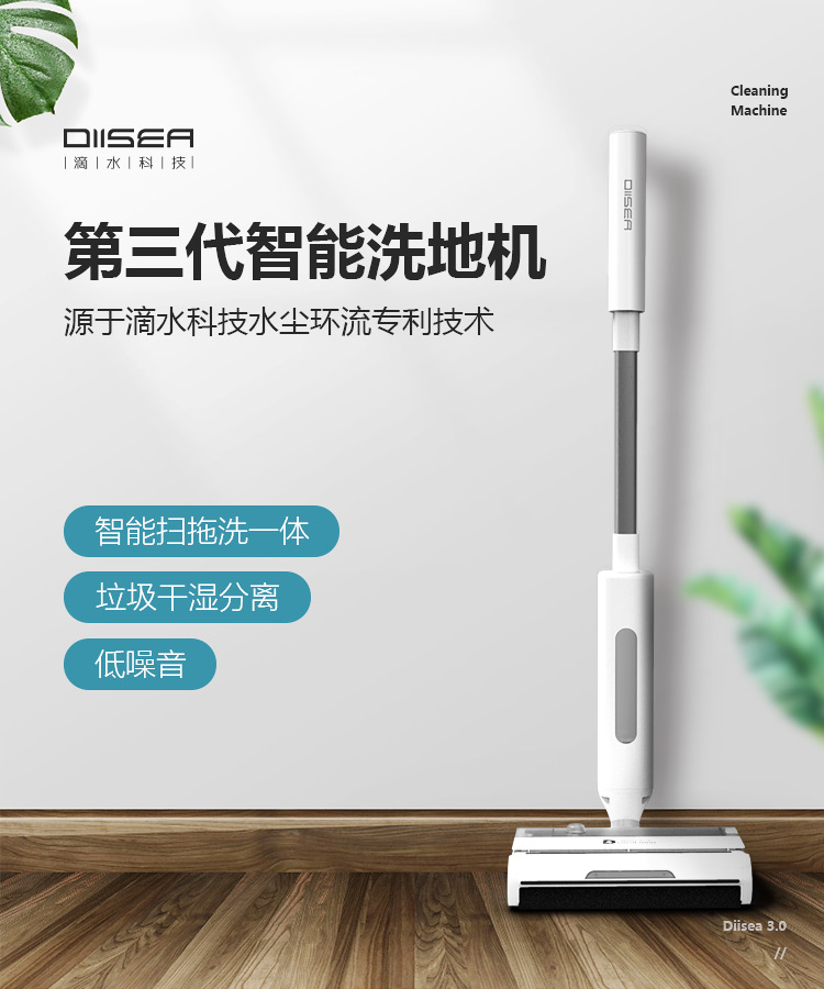 滴水科技(DIISEA)无线智能洗地机家用扫拖洗地一体机手推式拖地机自清洁擦地机 矿石白