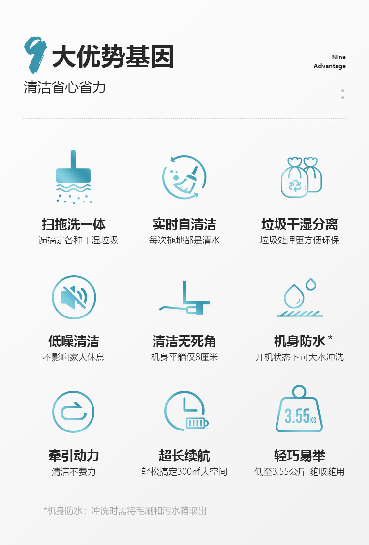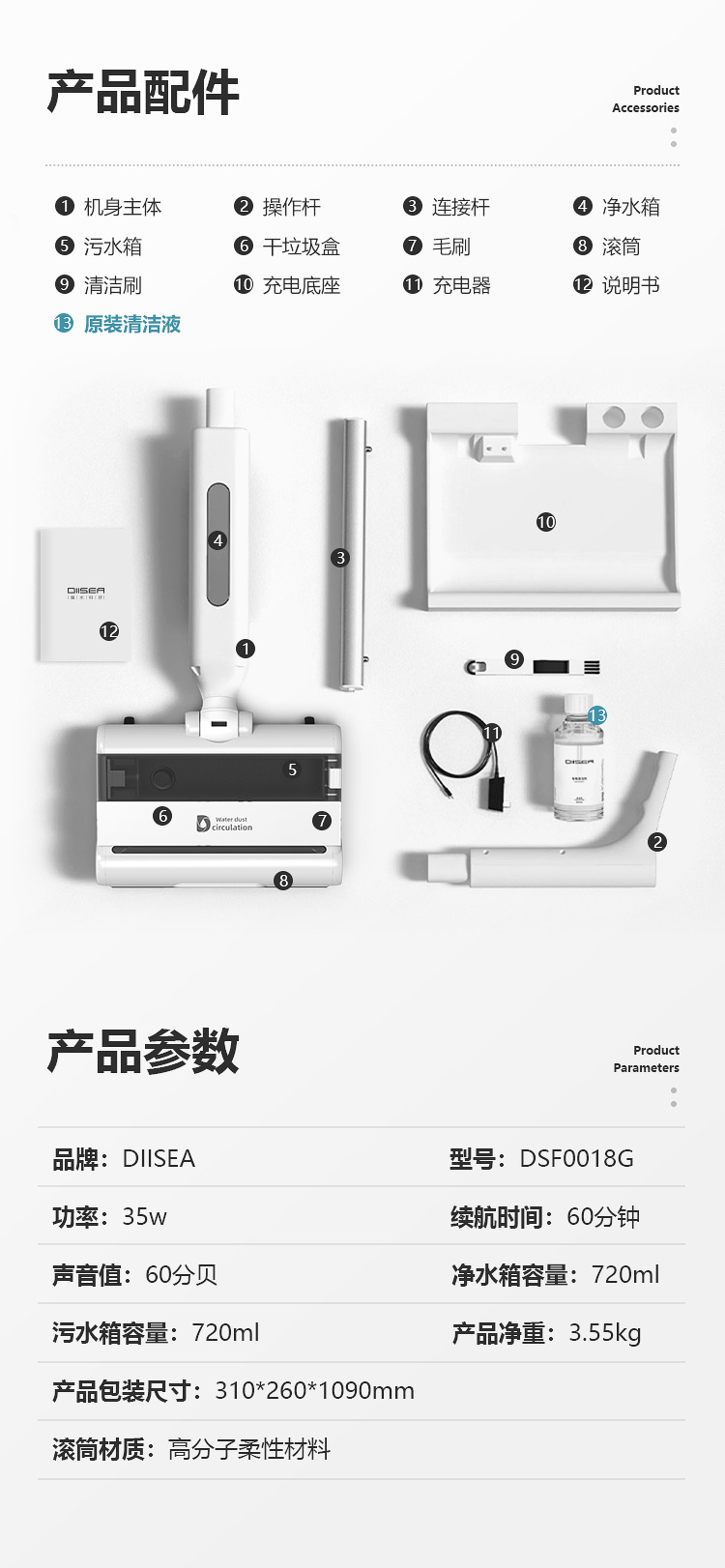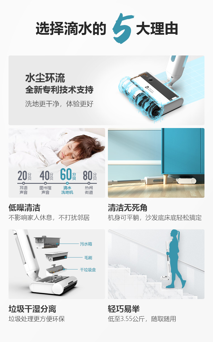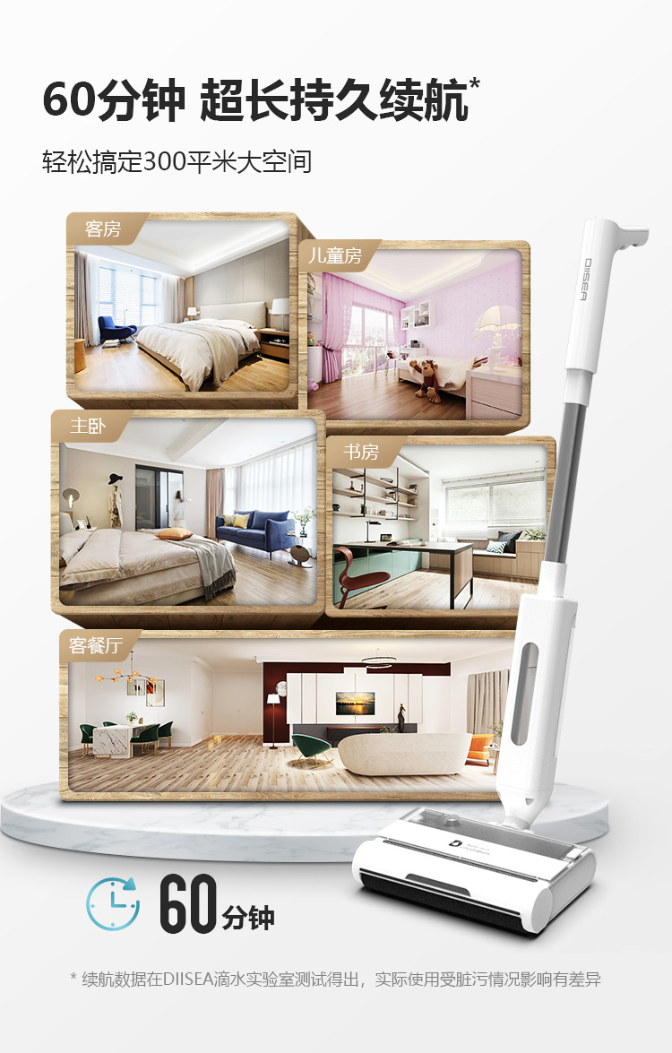 滴水科技(DIISEA)无线智能洗地机家用扫拖洗地一体机手推式拖地机自清洁擦地机 矿石白