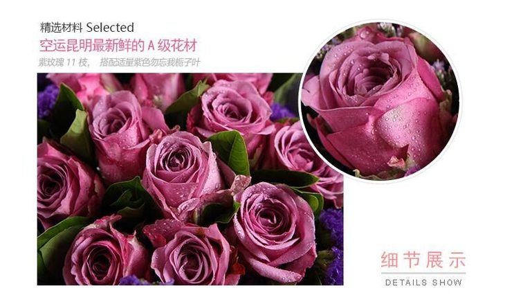紫玫瑰11枝,搭配适量紫色勿忘我+栀子叶