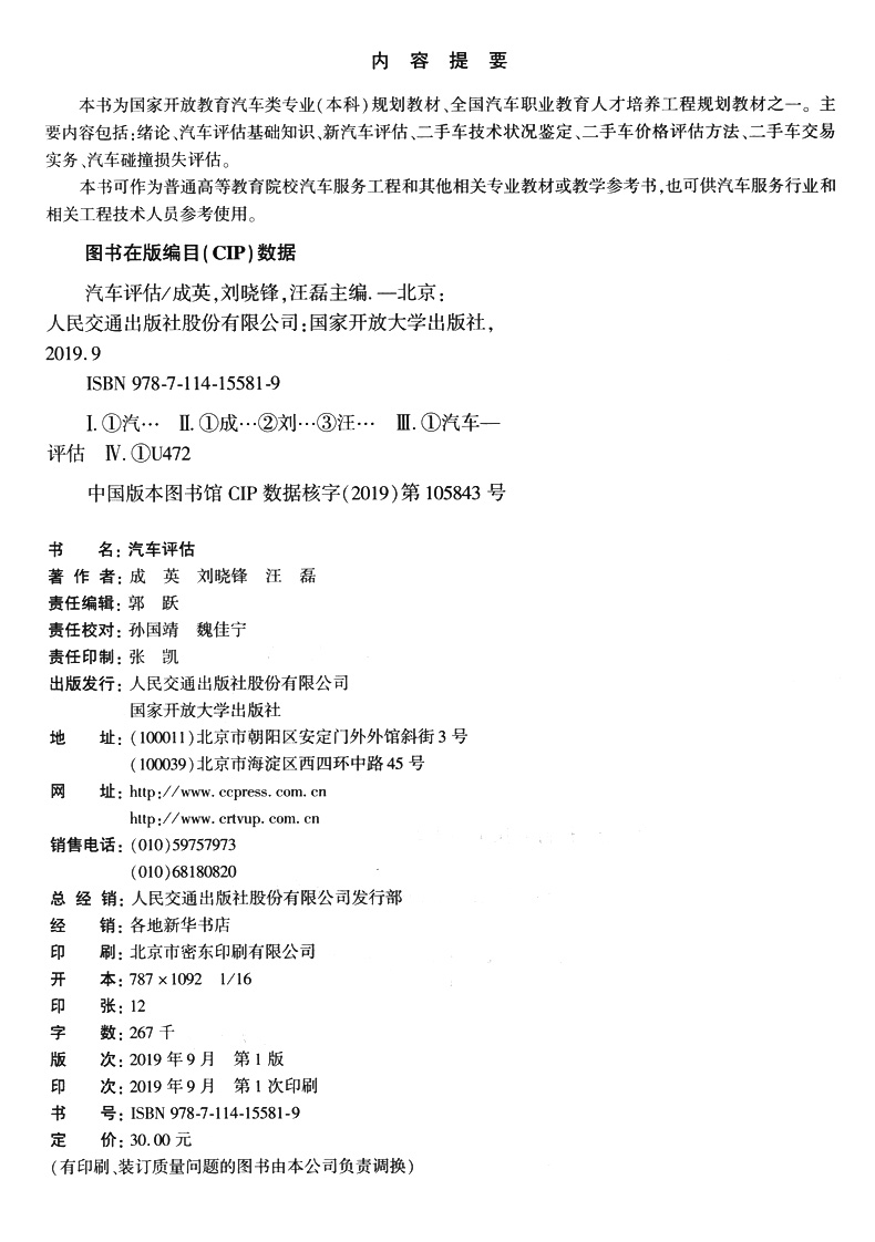 汽车评估人民交通出版社股份有限公司