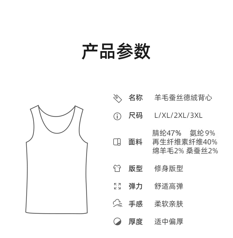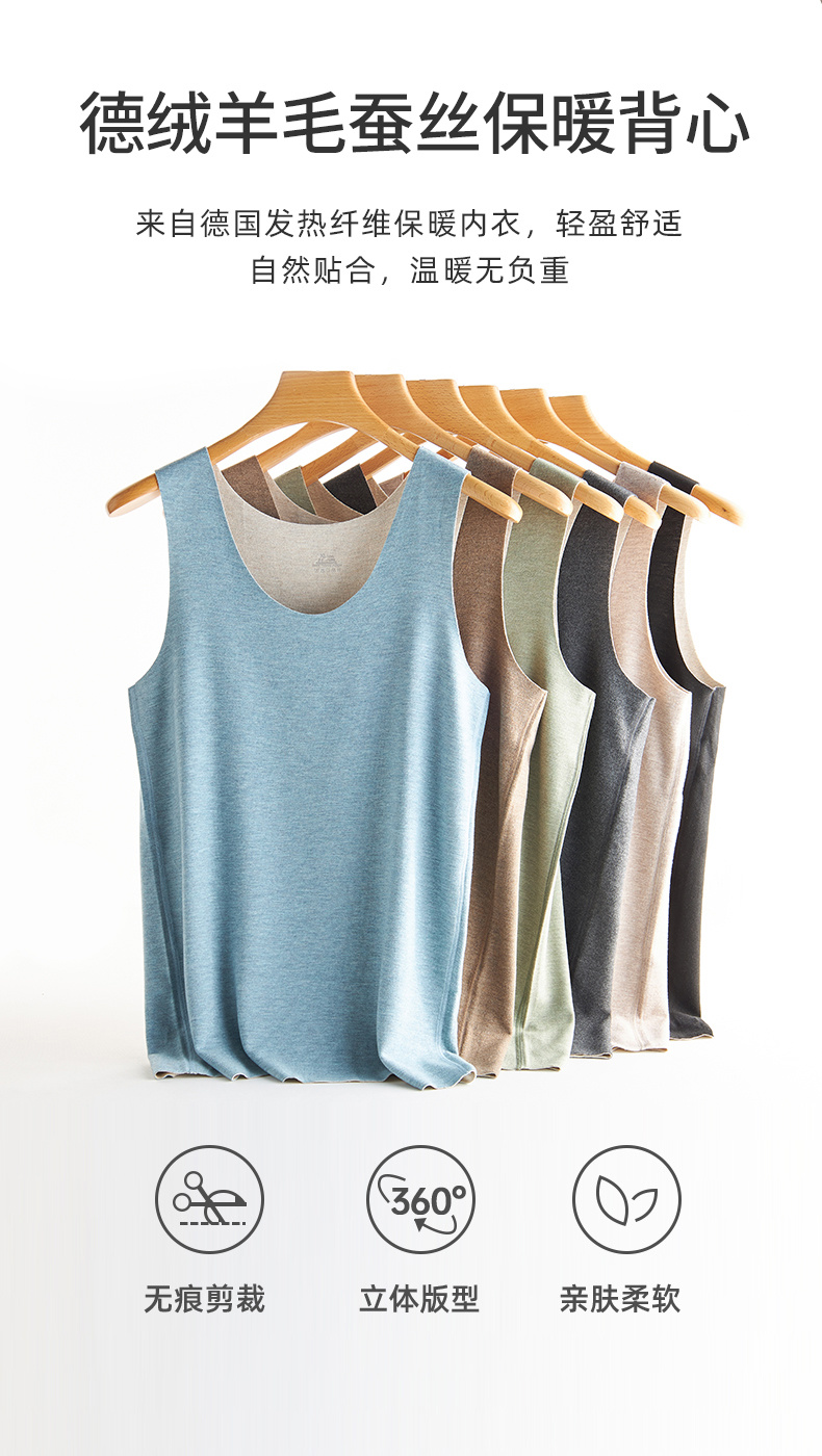 【品名】男羊毛蚕丝德绒无痕圆领背心