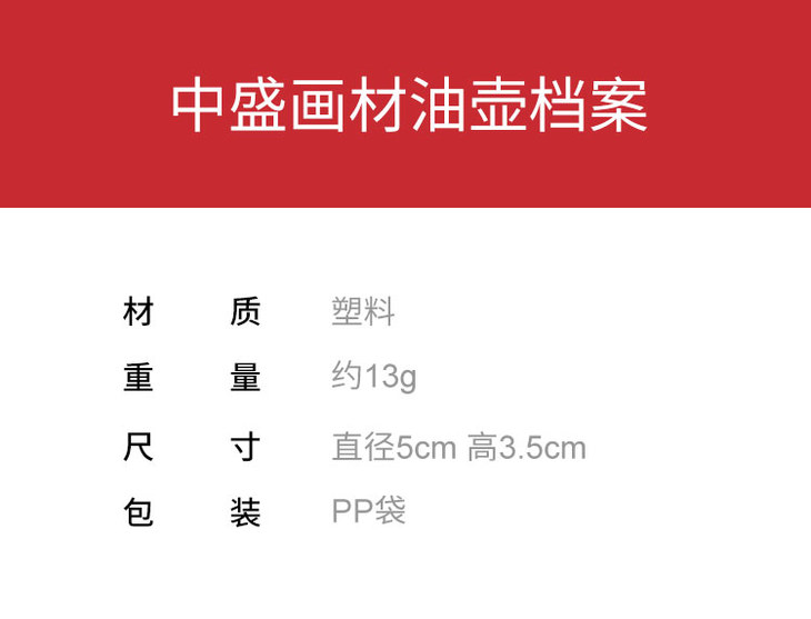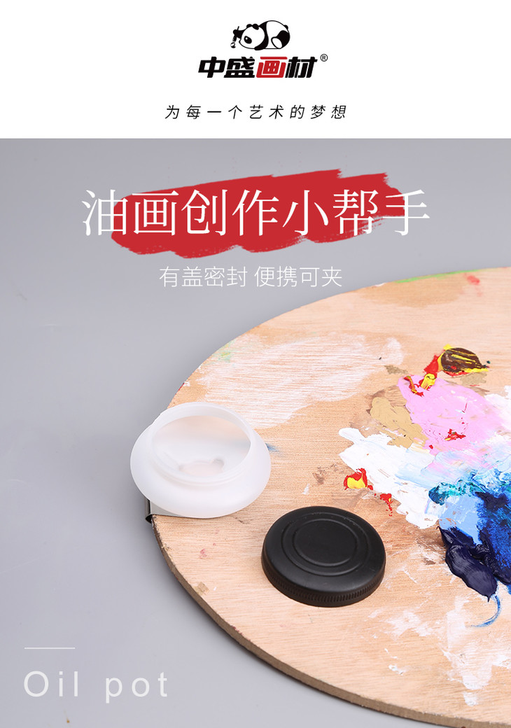 中盛画材 F301单鼓大号有盖塑料油画油壶 绘画单口调色油壶