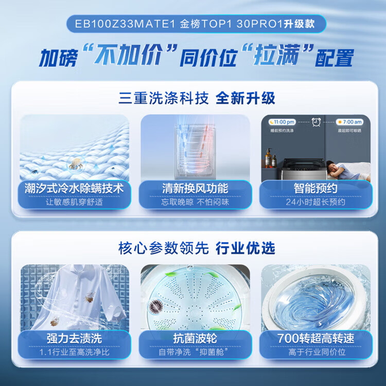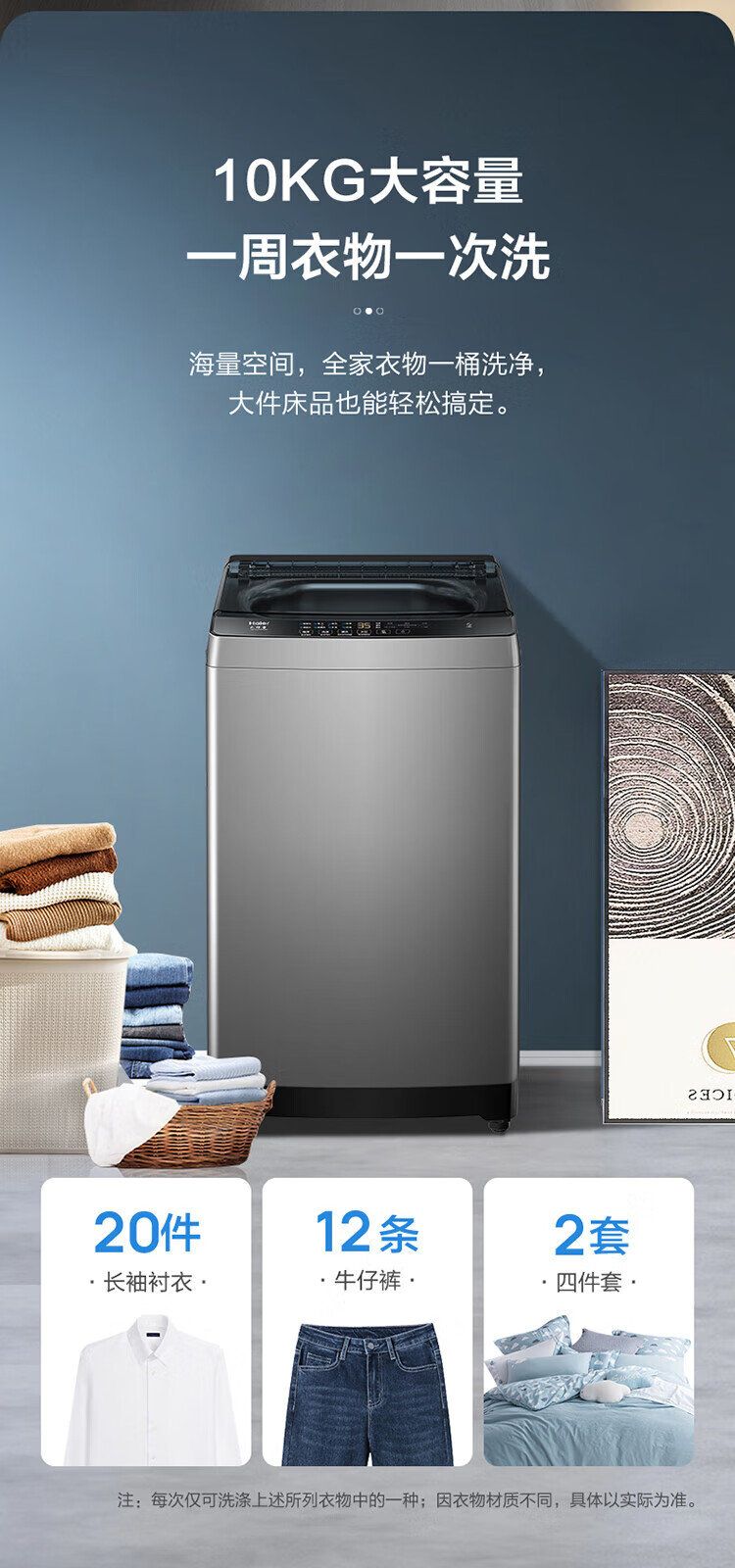 海尔波轮洗衣机全自动小型家用10公斤大容量懒人去渍洗自编程一体上盖租房 家电补贴 以旧换新Z33Mate1 一体上盖旗舰上新-强力洗
