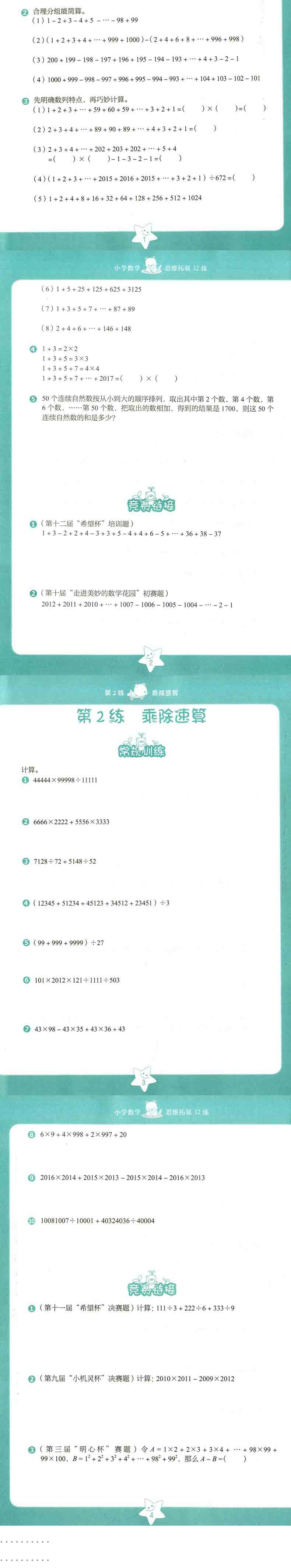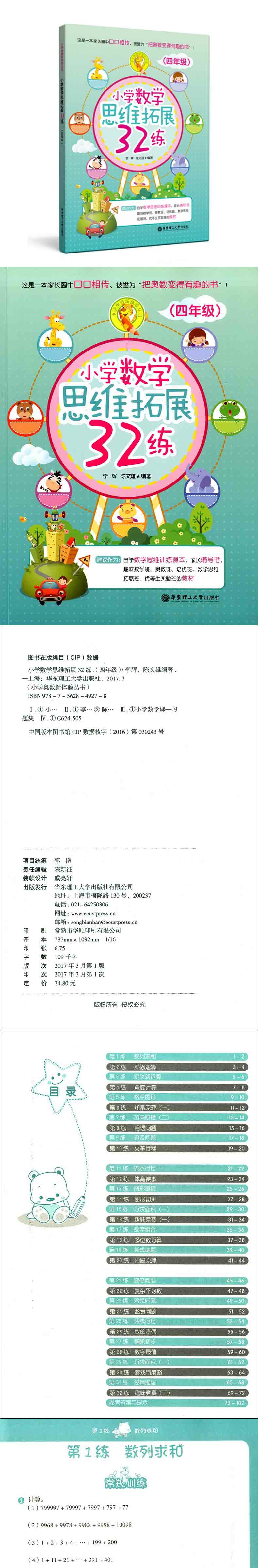 正版现货 小学数学思维拓展32练 四年级/4年级 趣味数学班奥数班培优班优等生实验班教材练习册 小学生数学思维训练课本辅导书籍