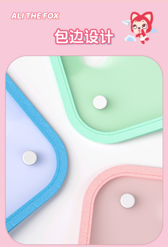 相对于其他的竞品 这款产品不仅仅是竖型的设计 同时做了包边带、加厚提手处理 避免刮到手和提高使用的舒适感 安全pp材质、环保无异味 防水防污,耐磨耐折,防止资料破损