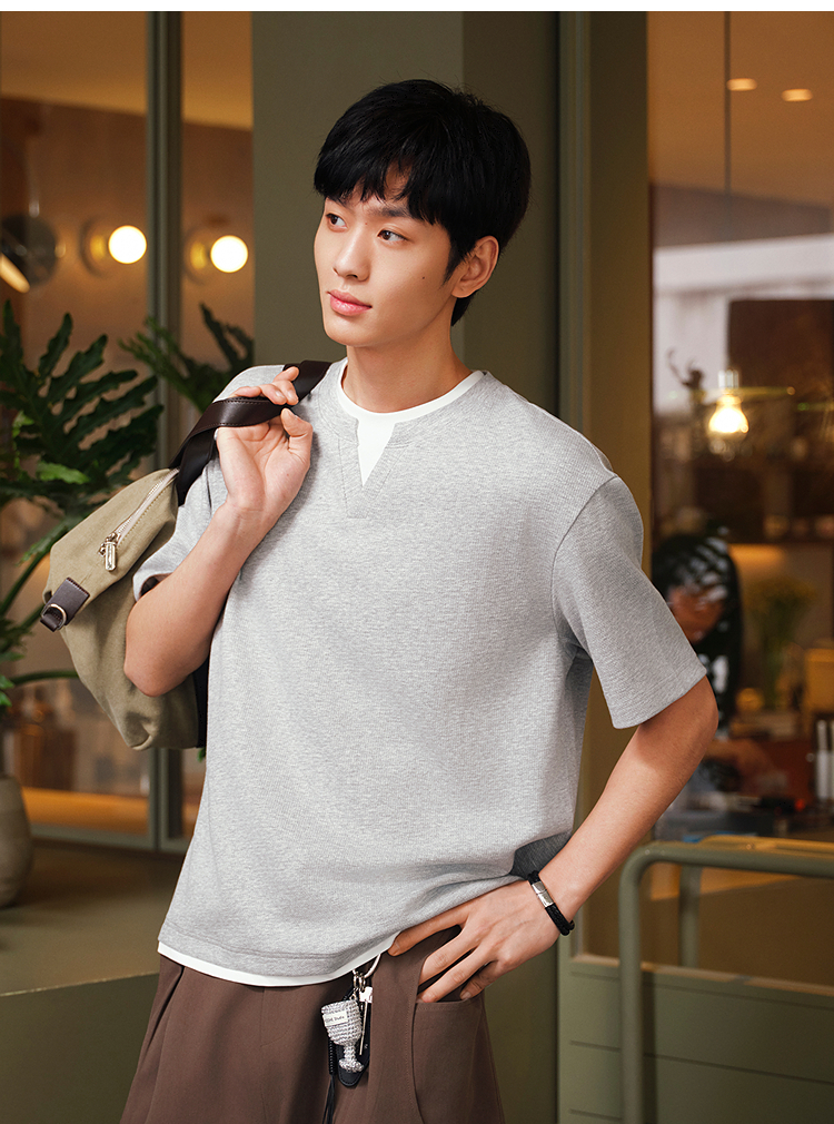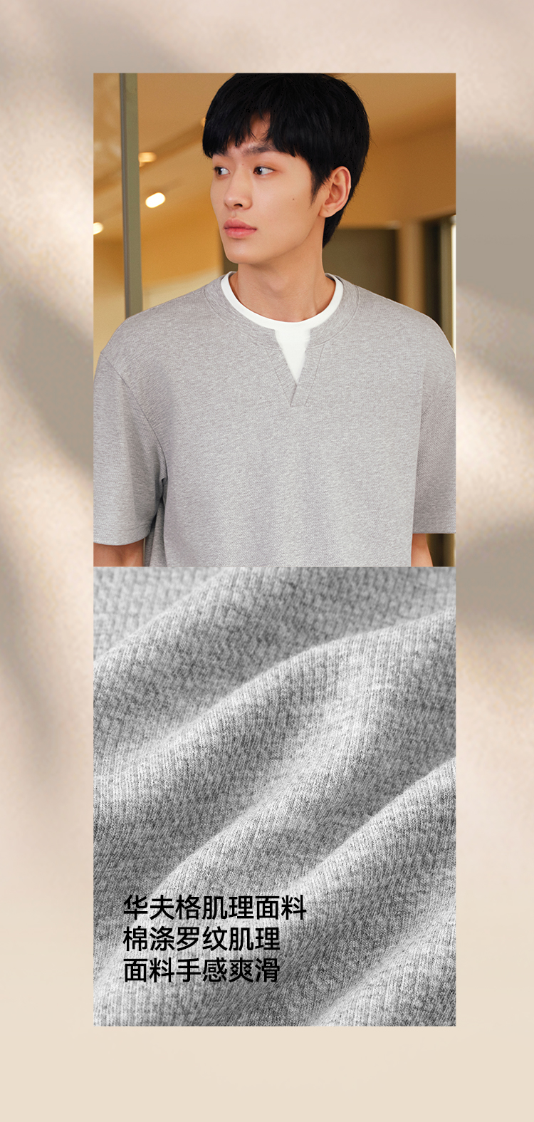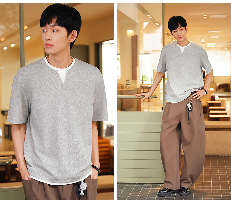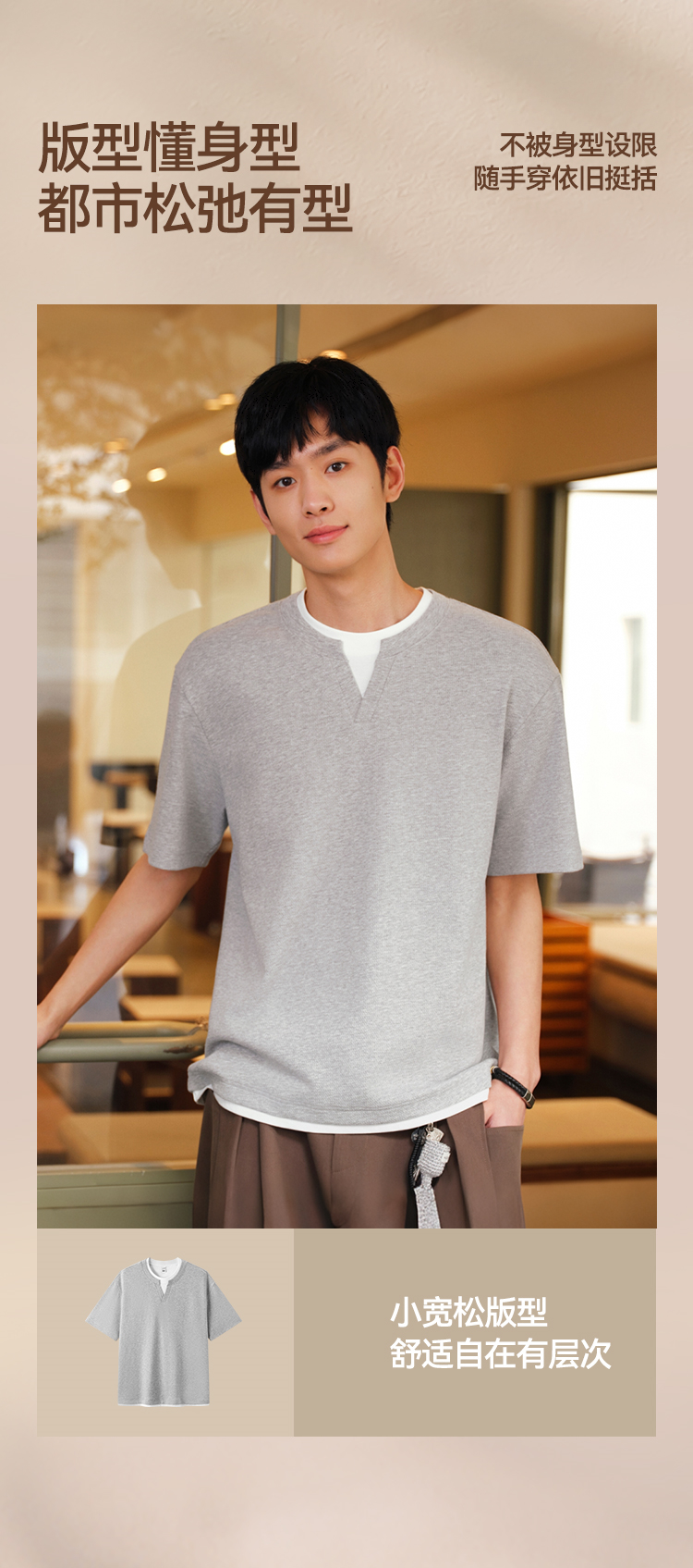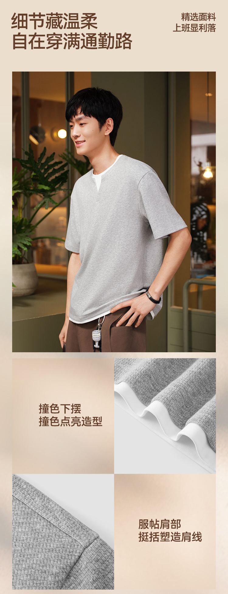 森马短袖T恤男夏季假两件拼接套头领口2026新款肌理舒适百搭上衣