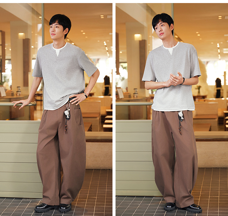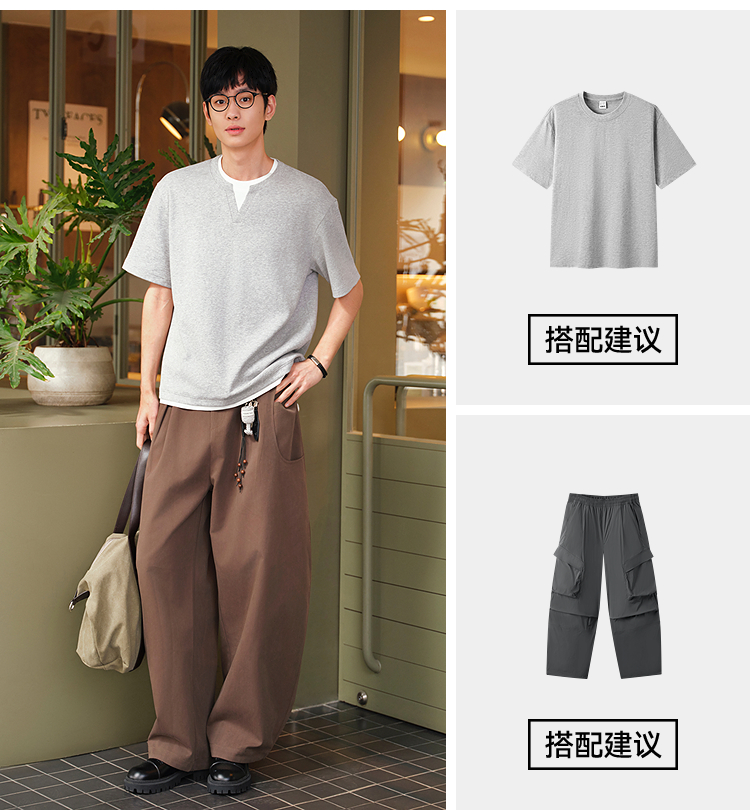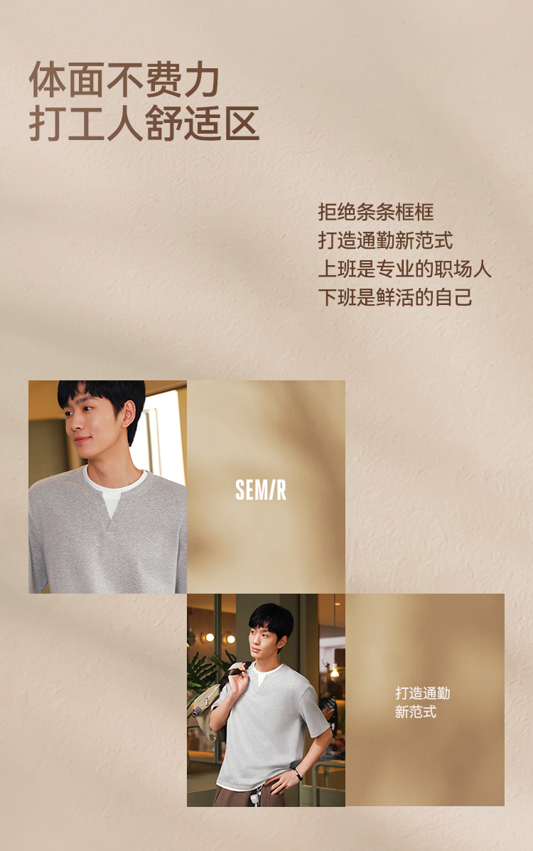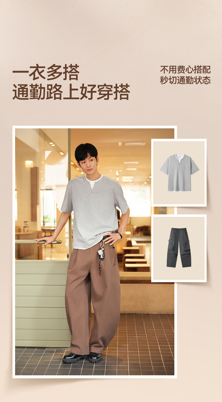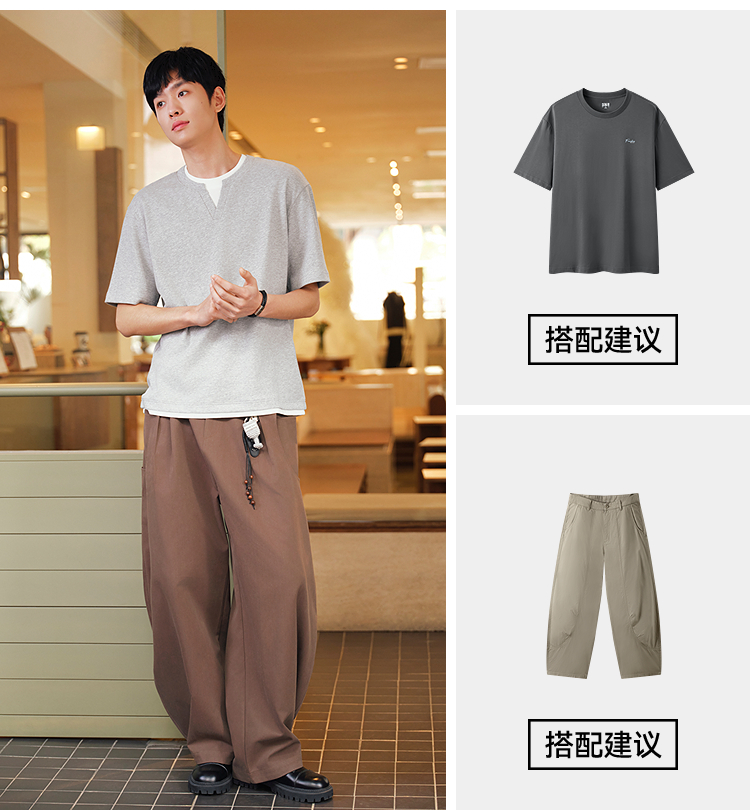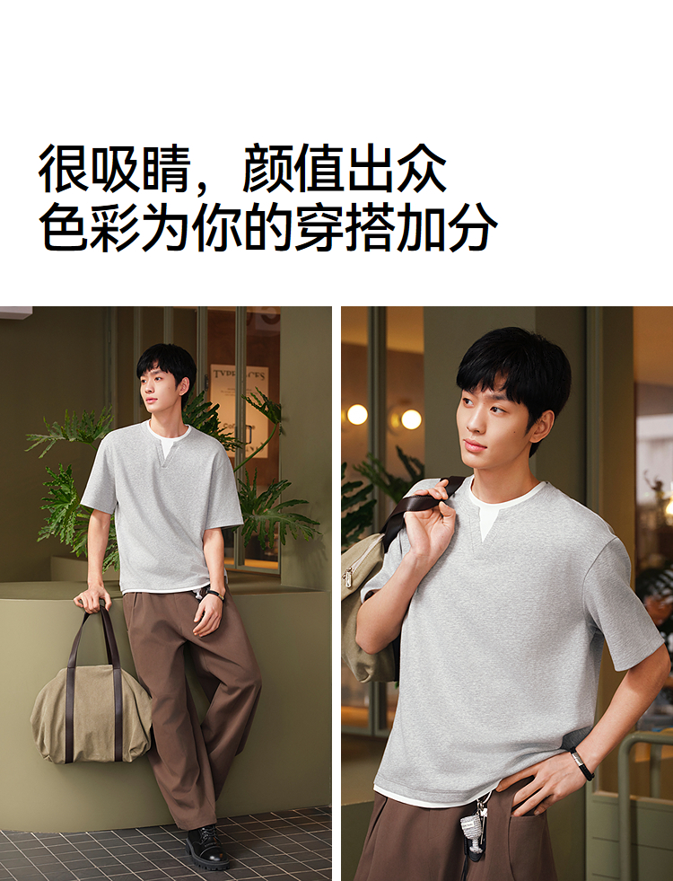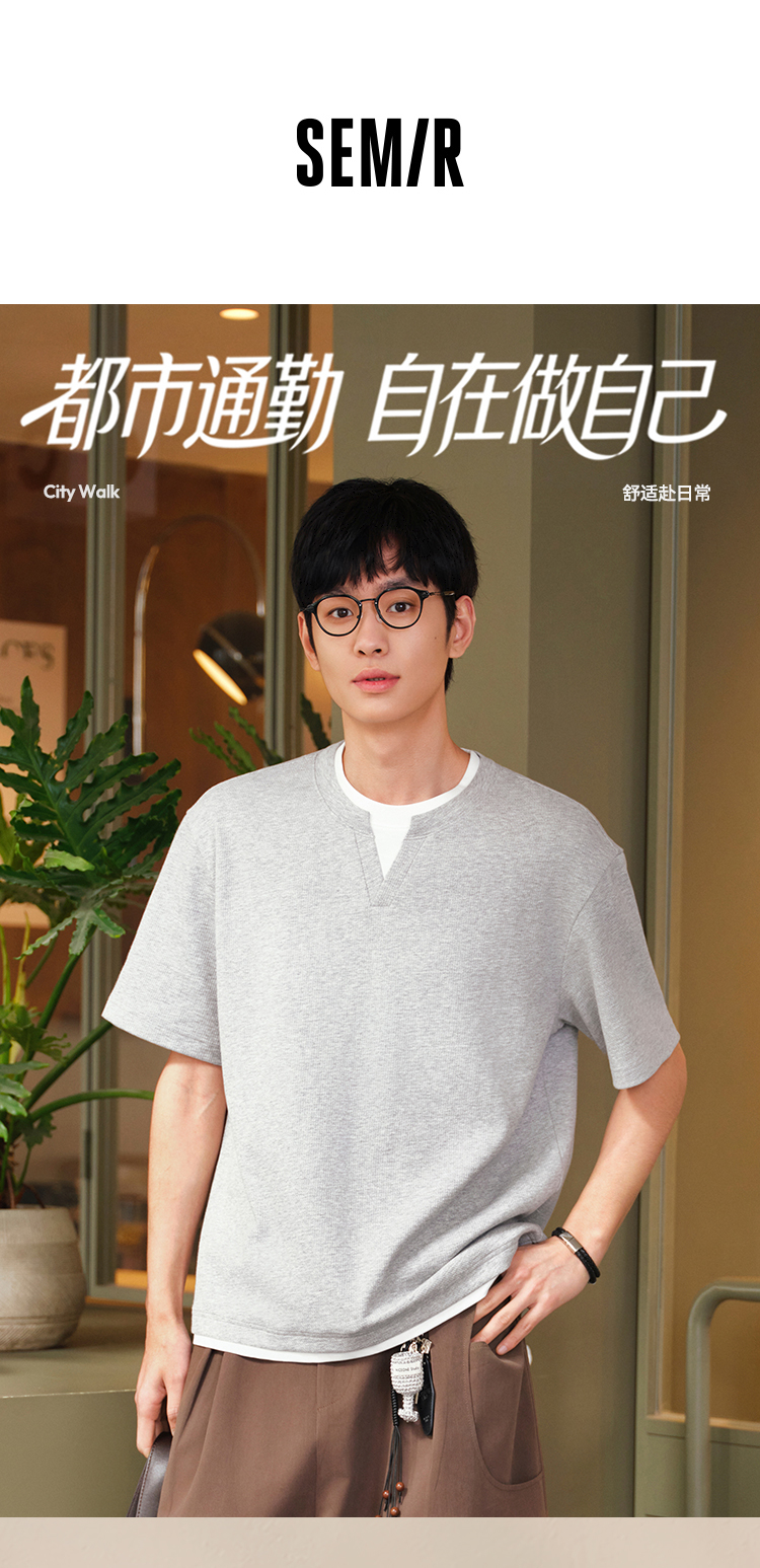 森马短袖T恤男夏季假两件拼接套头领口2026新款肌理舒适百搭上衣