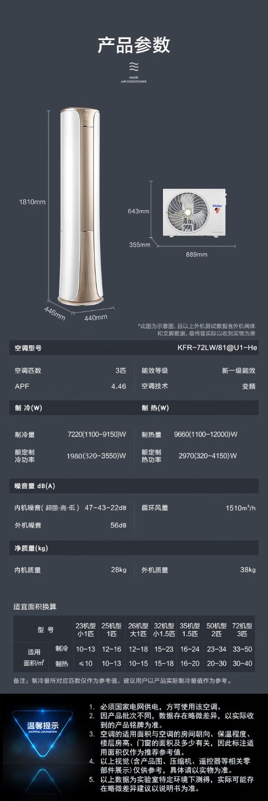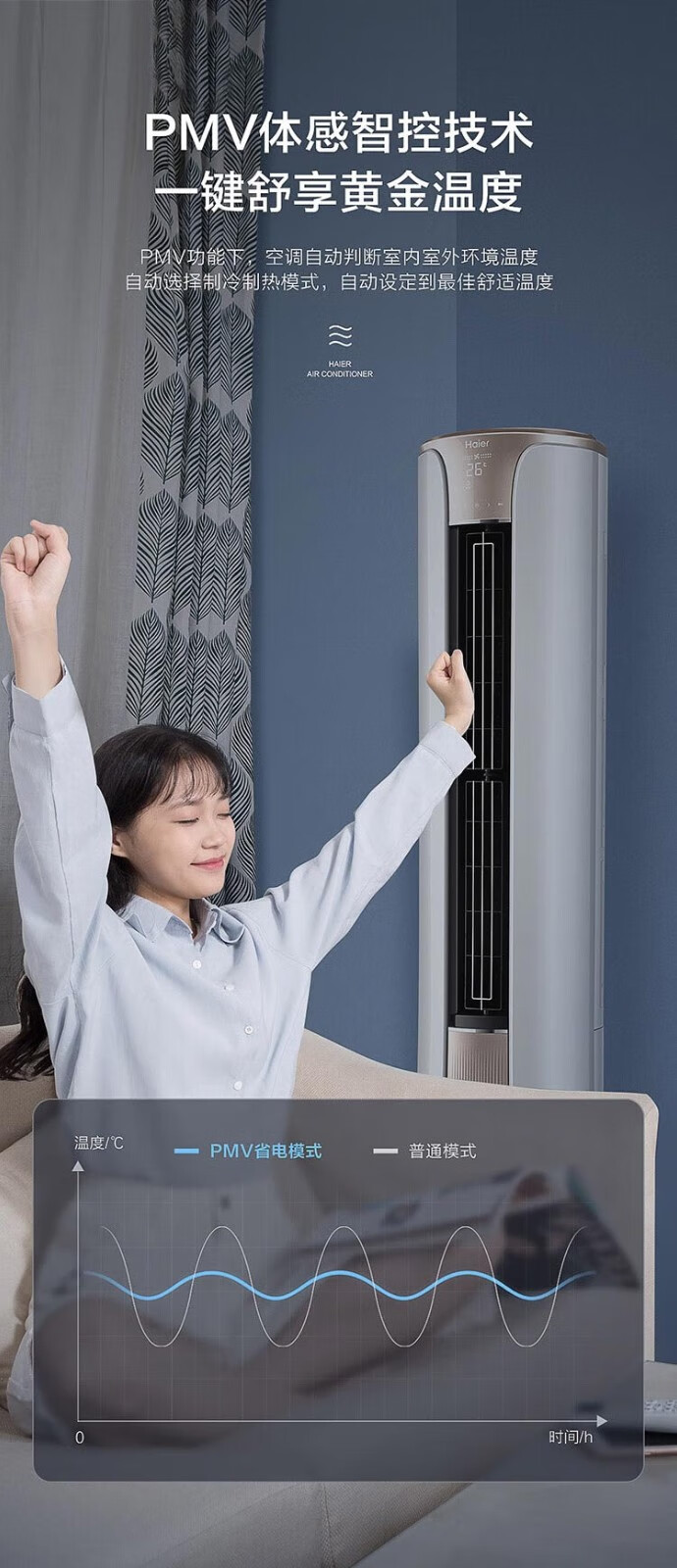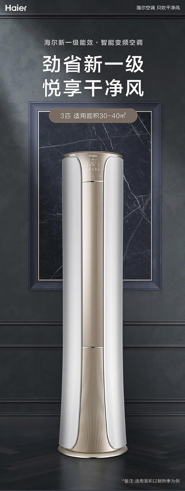 海尔3匹新一级零冷风柜机冷暖落地式空调客厅自清洁KFR-72LW 81_U1-He 白金色 立体风 智联网
