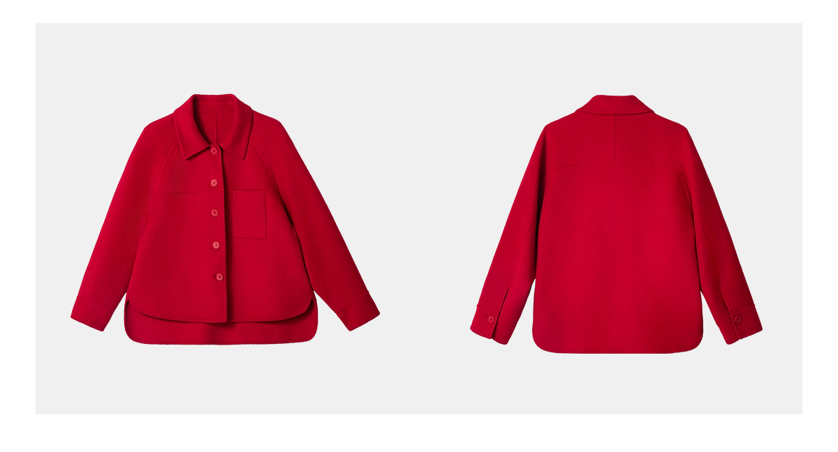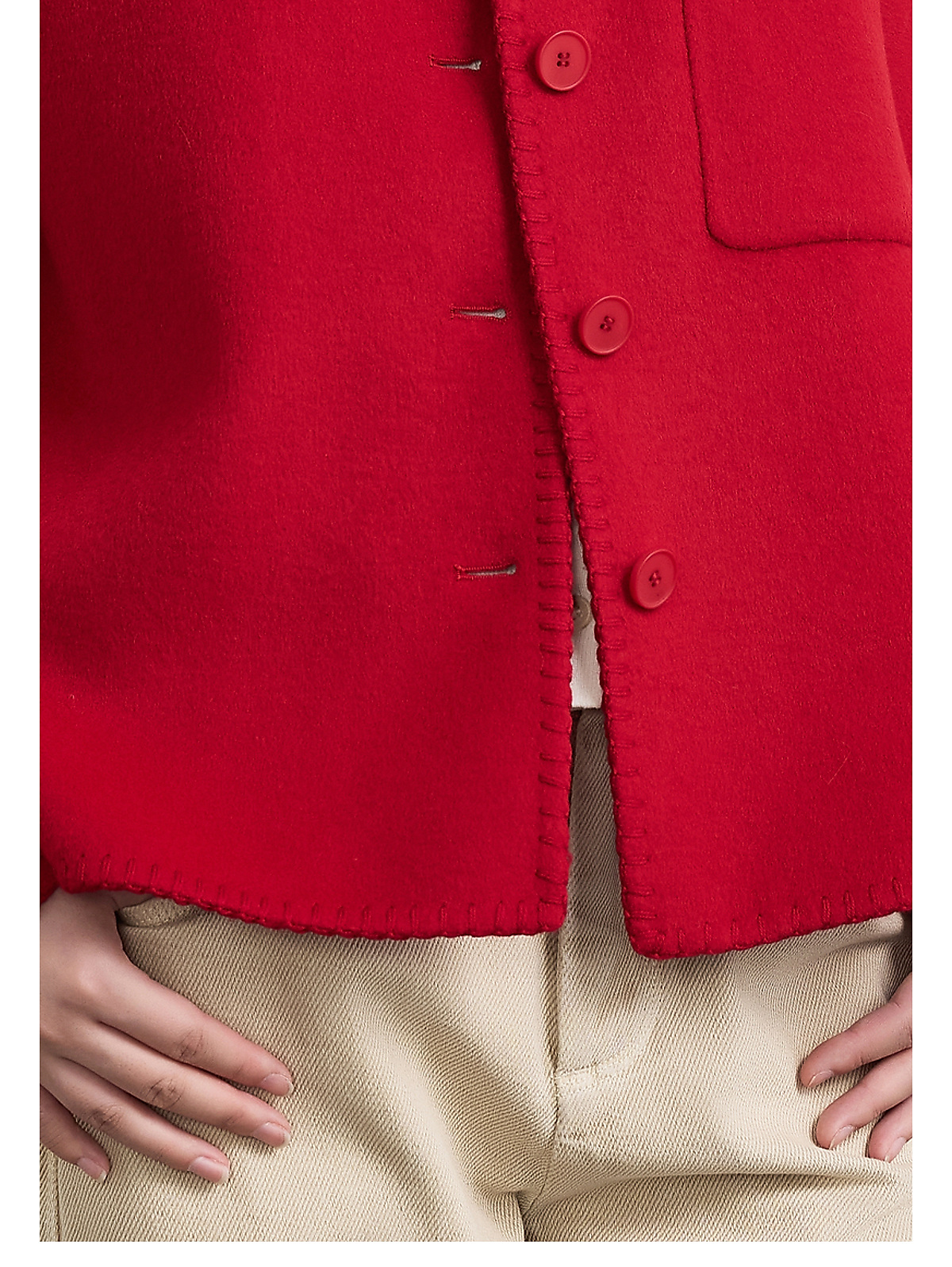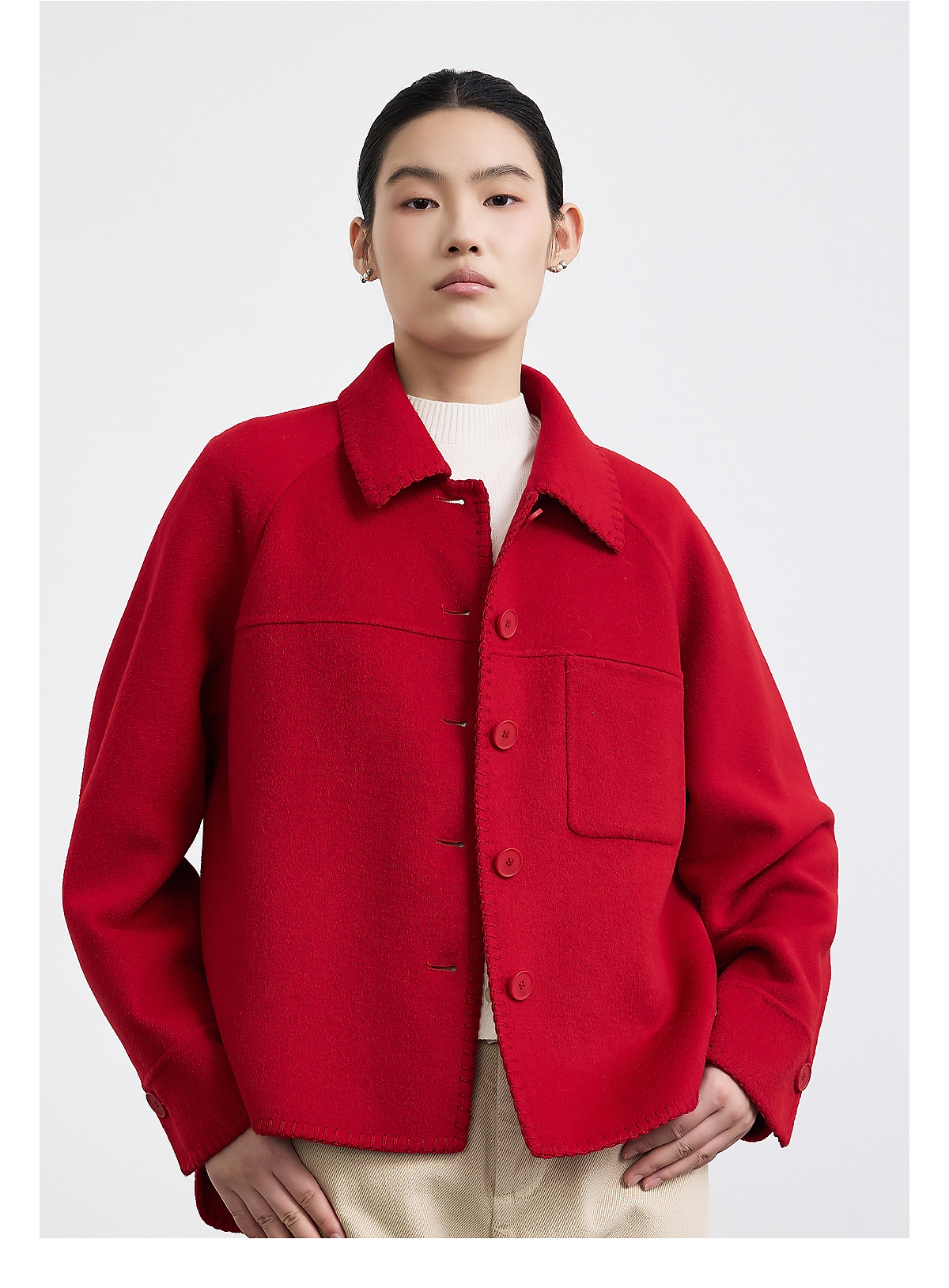 PURE TOUCH女装25秋冬新款红色毛呢短外套翻领毛呢夹克新年红外套