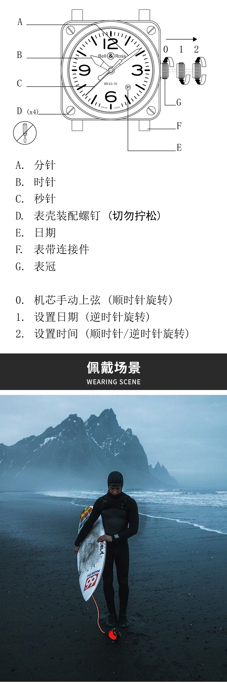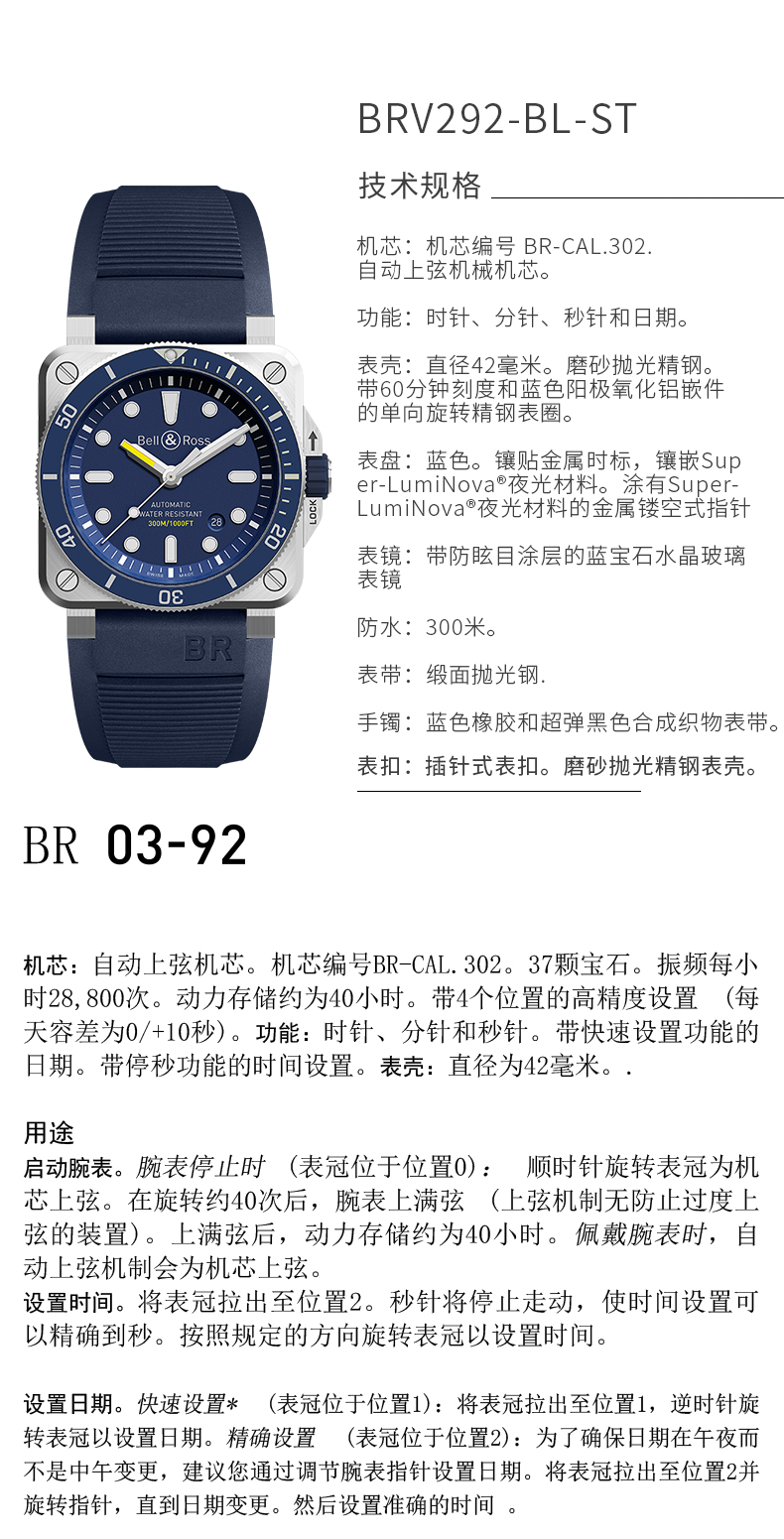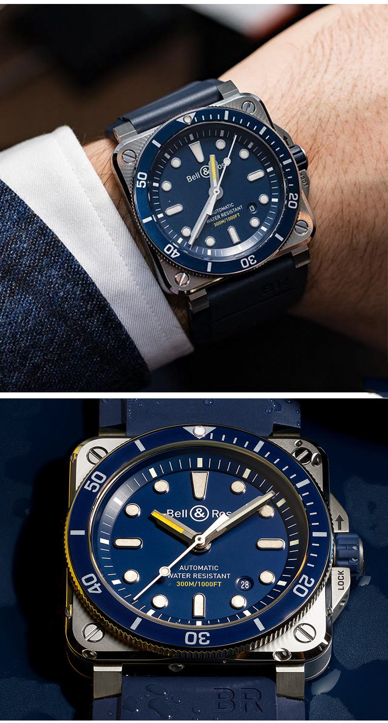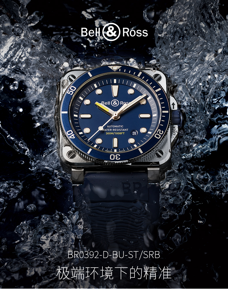 Bell & Ross 柏莱士 瑞士进口深潜水表全自动机械手表男士蓝方 BR0392-D-BU-ST/SRB