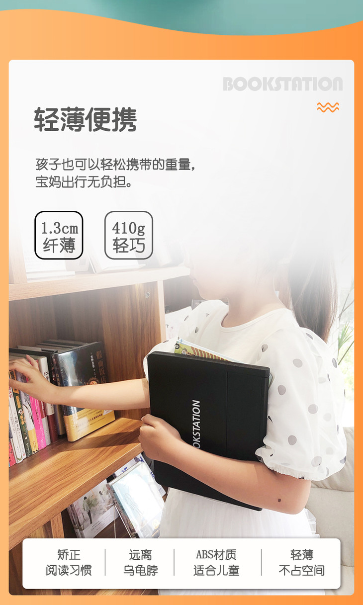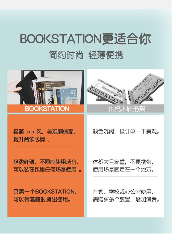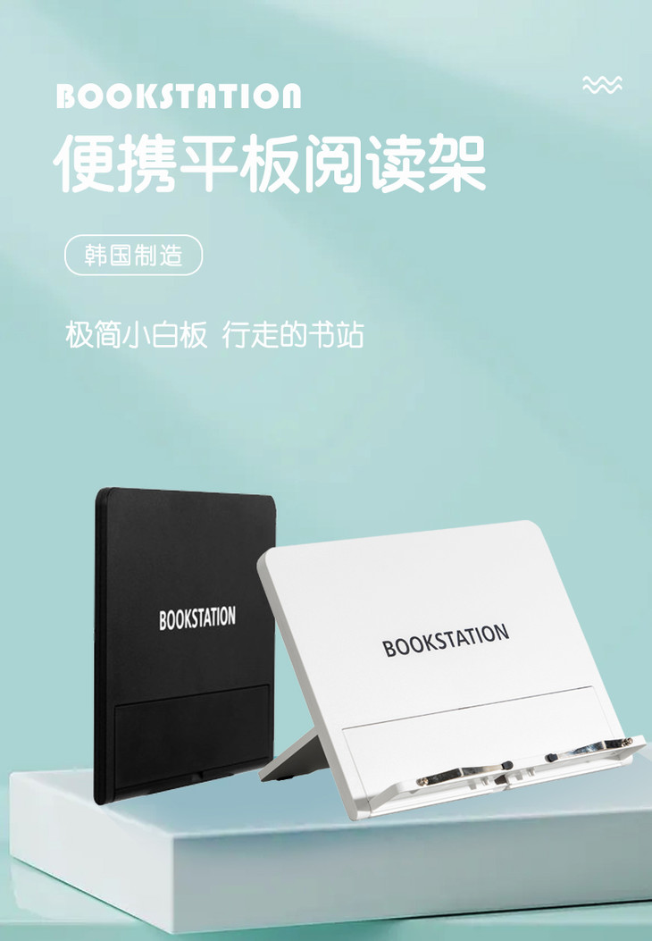 韩国BOOKSTATION平板式便携阅读架,黑白双色可选,隐藏式收纳