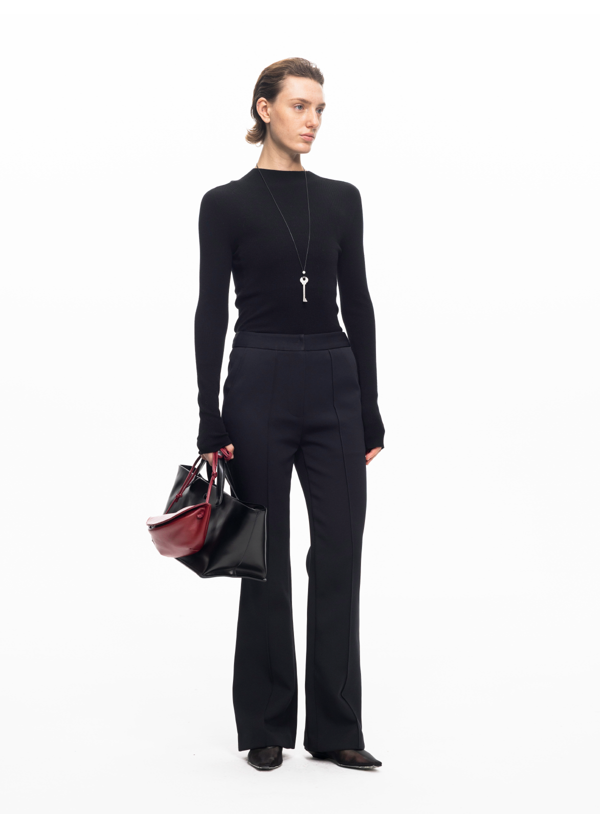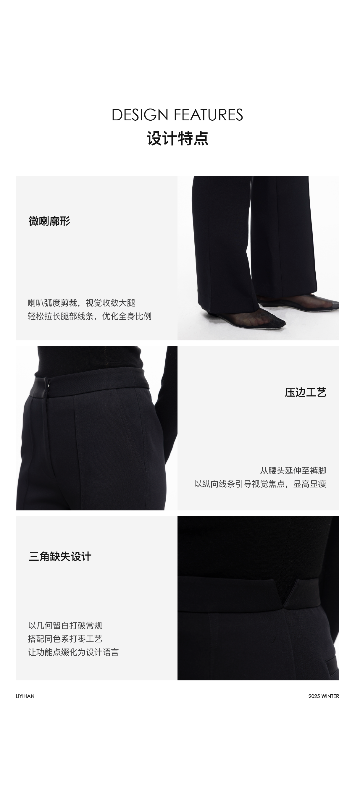 LIYIHAN 2025秋冬新款法式通勤喇叭裤黑色女显瘦休闲裤小众设计感