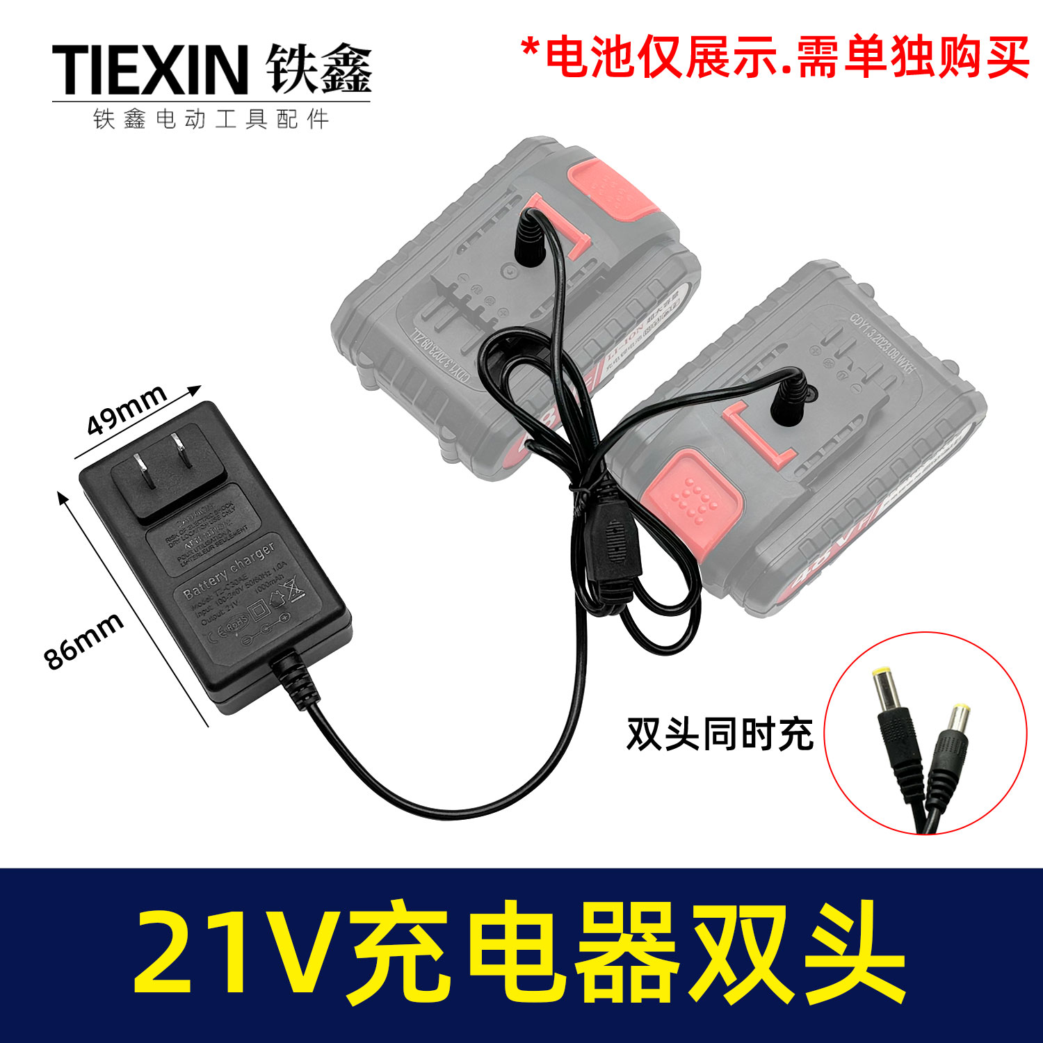 【货号08167】新款21V充电器双头线充一拖二电池充电器锂电钻充电器