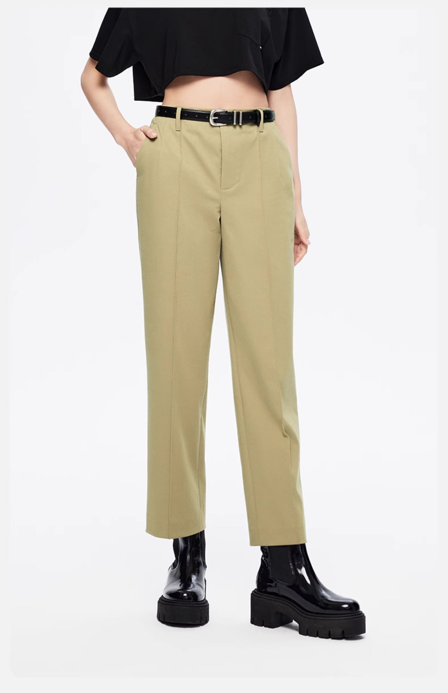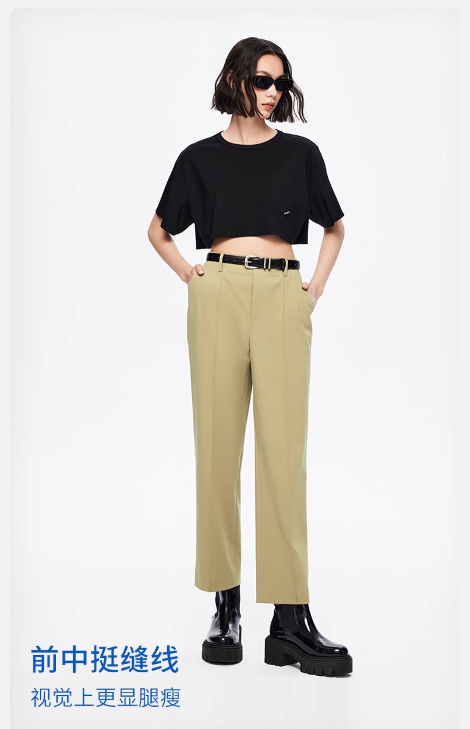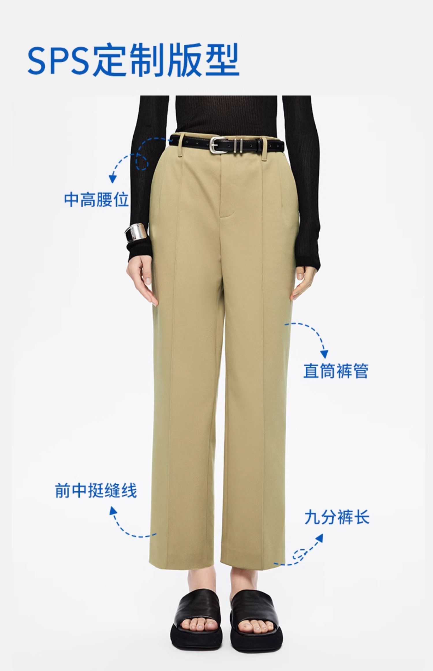 simplepieces春秋款SPS休闲裤中高腰显瘦九分直筒裤梨形友好女装