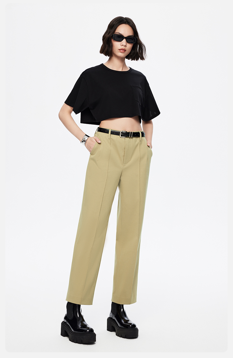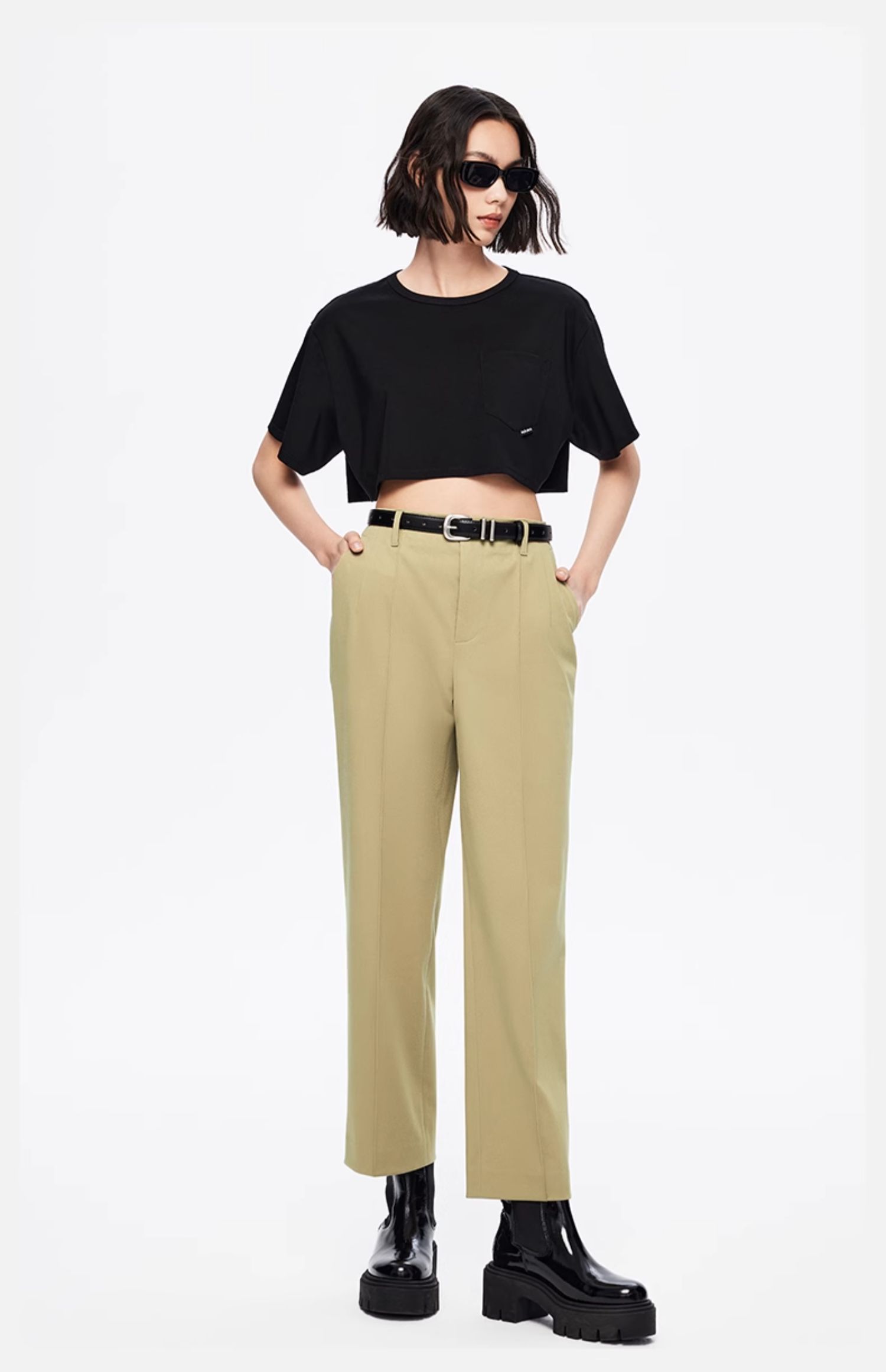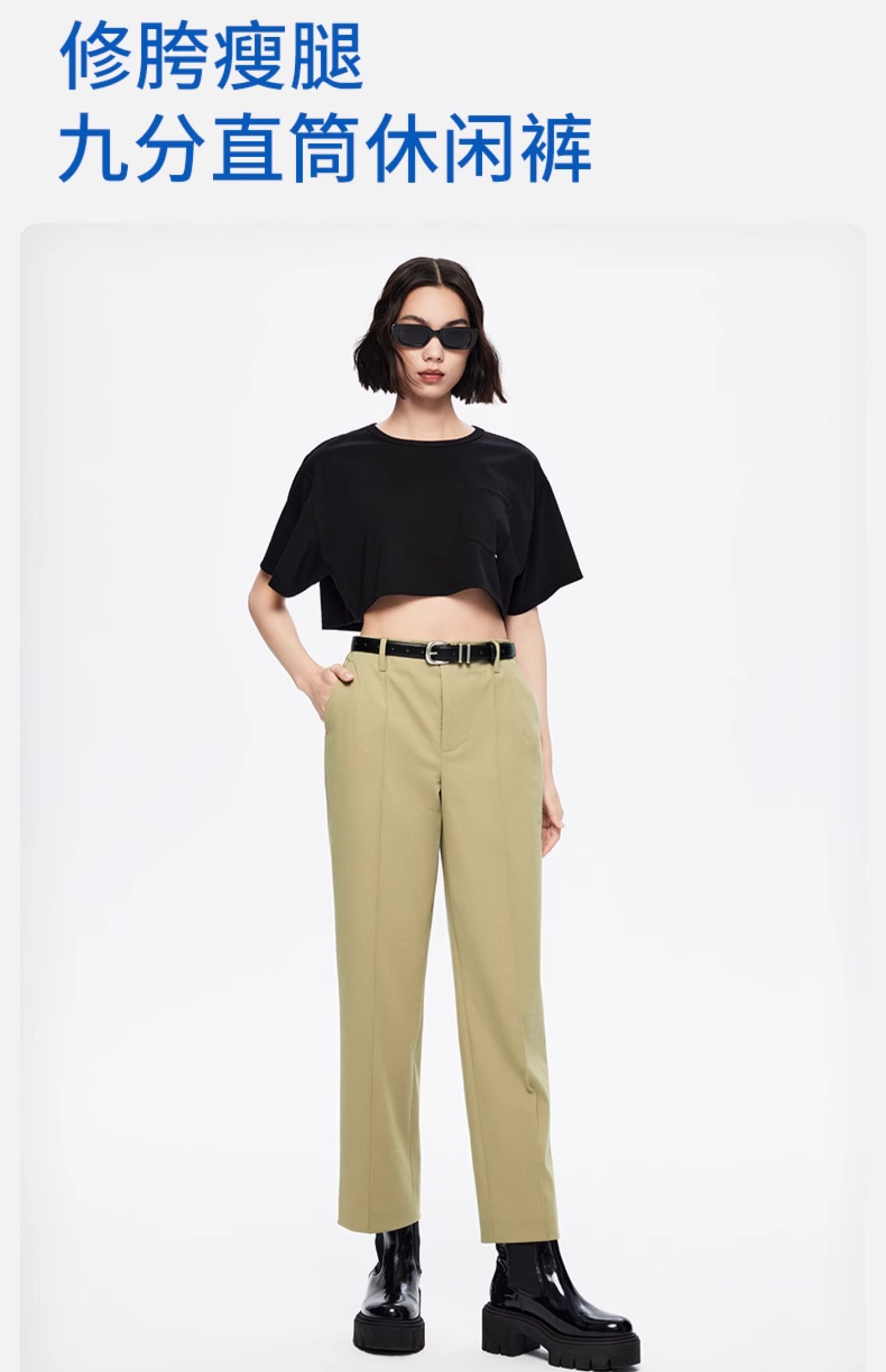 simplepieces春秋款SPS休闲裤中高腰显瘦九分直筒裤梨形友好女装