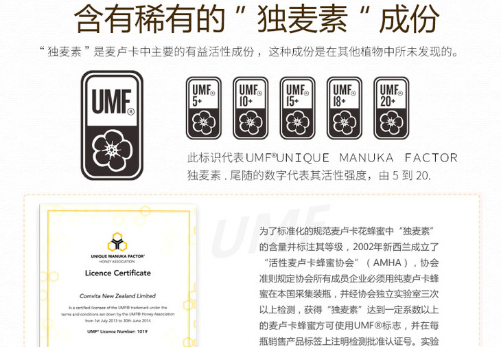 【跨境】Comvita 康维他麦卢卡蜂蜜Umf15+ 250g