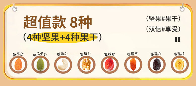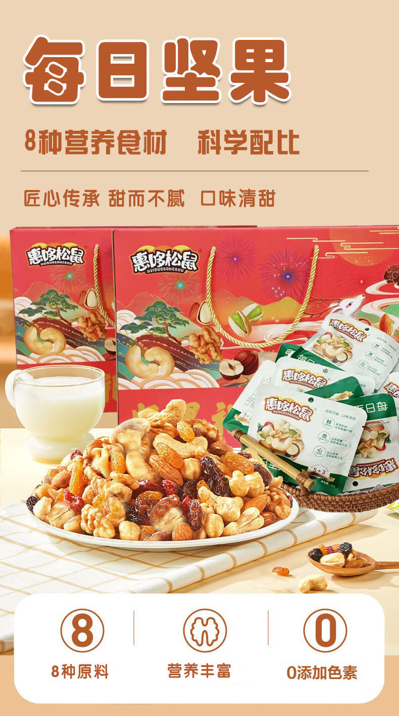 每日坚果(礼盒装),2箱组合,混合坚果健康零食,精选8种优质果仁及果干,科学配比,多重营养,口味清甜不腻,独立小包装,健康好味道M