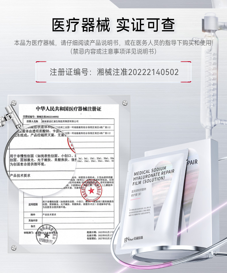 【官方直发】京润珍珠 医用透明质酸钠修护面膜 5片/盒