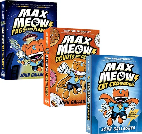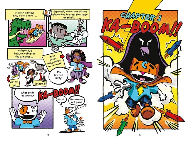 Sometimes being a HERO means knowing when to ask for help, and it will take a whole universe of good guys working together to stop these space dogs! Luckily Max and Mindy have backup. Meet Rex Rocket, Intergalactic Space Guard, and get ready for Kittyopolis's Bad Guys to become Good (at least temporarily!) to join the adventure! Packed with twists and turns, puns and fun, put your paws together for the latest action packed adventure in the laugh out loud series kids (and cats!) love! Bonus:
