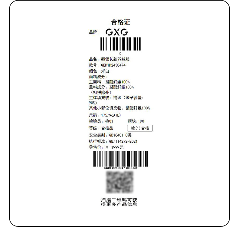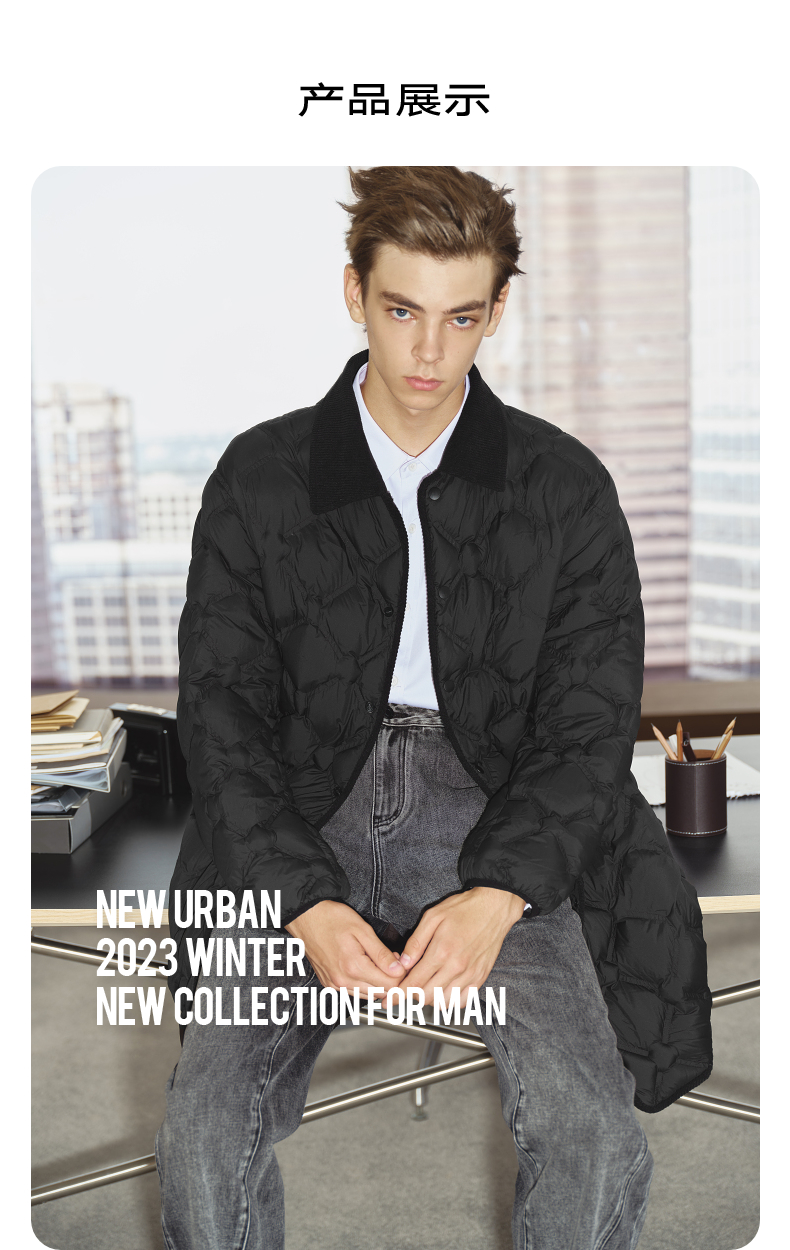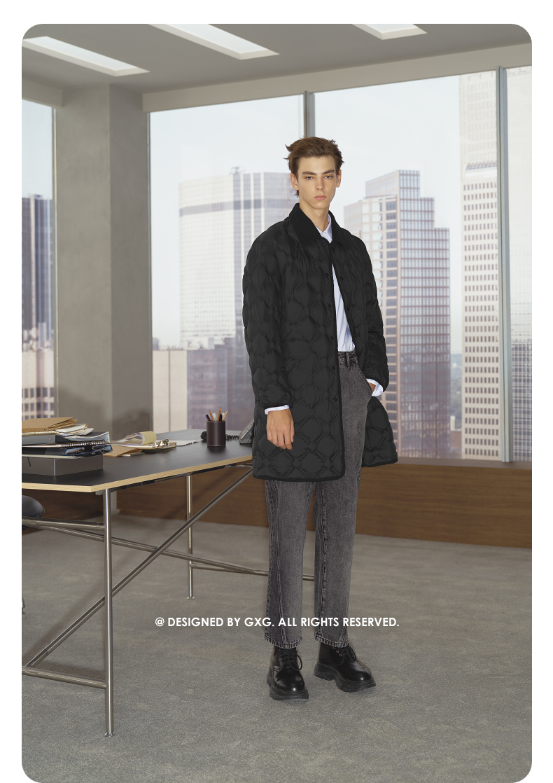 GXG男装 零压多色三防格形轻柔长款翻领羽绒服 冬季热卖羽绒服