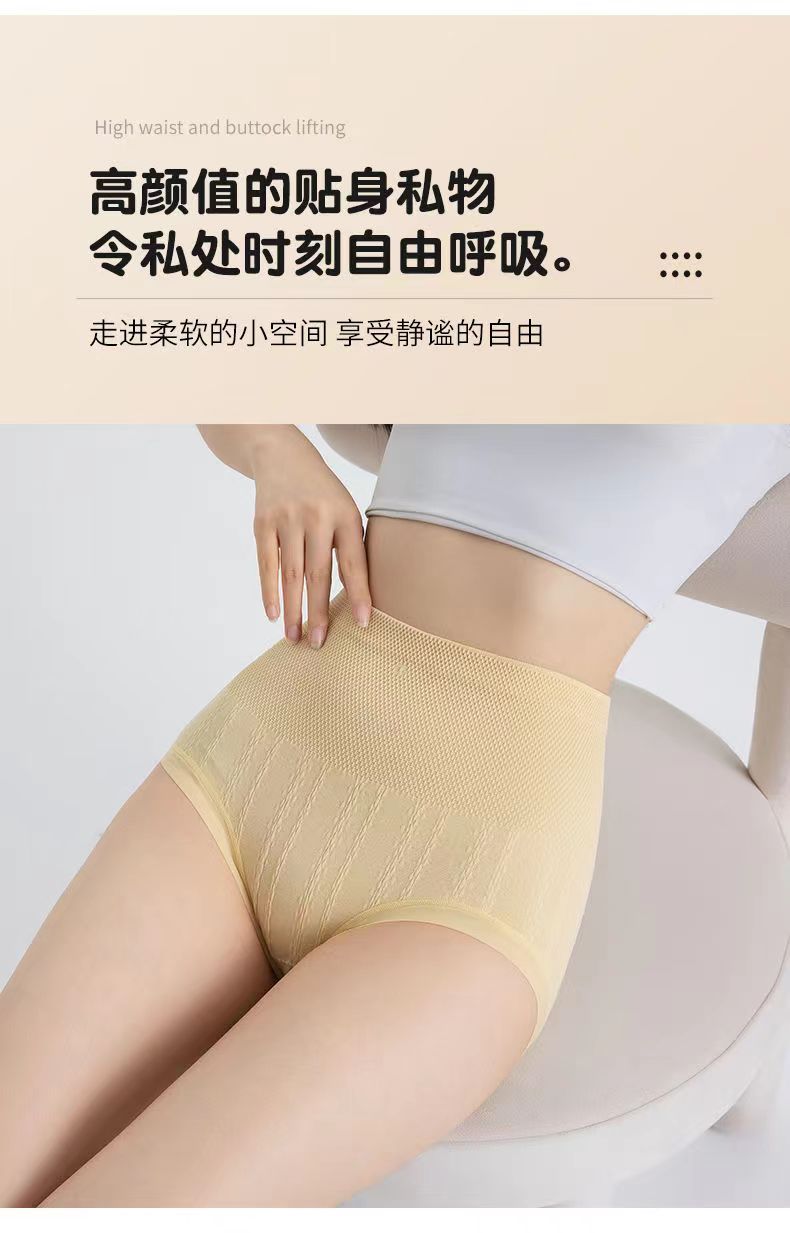 「7条装!糖果色高腰收腹内裤」新款内裤高腰收腹提臀无痕艾叶底档女士三角裤内衣