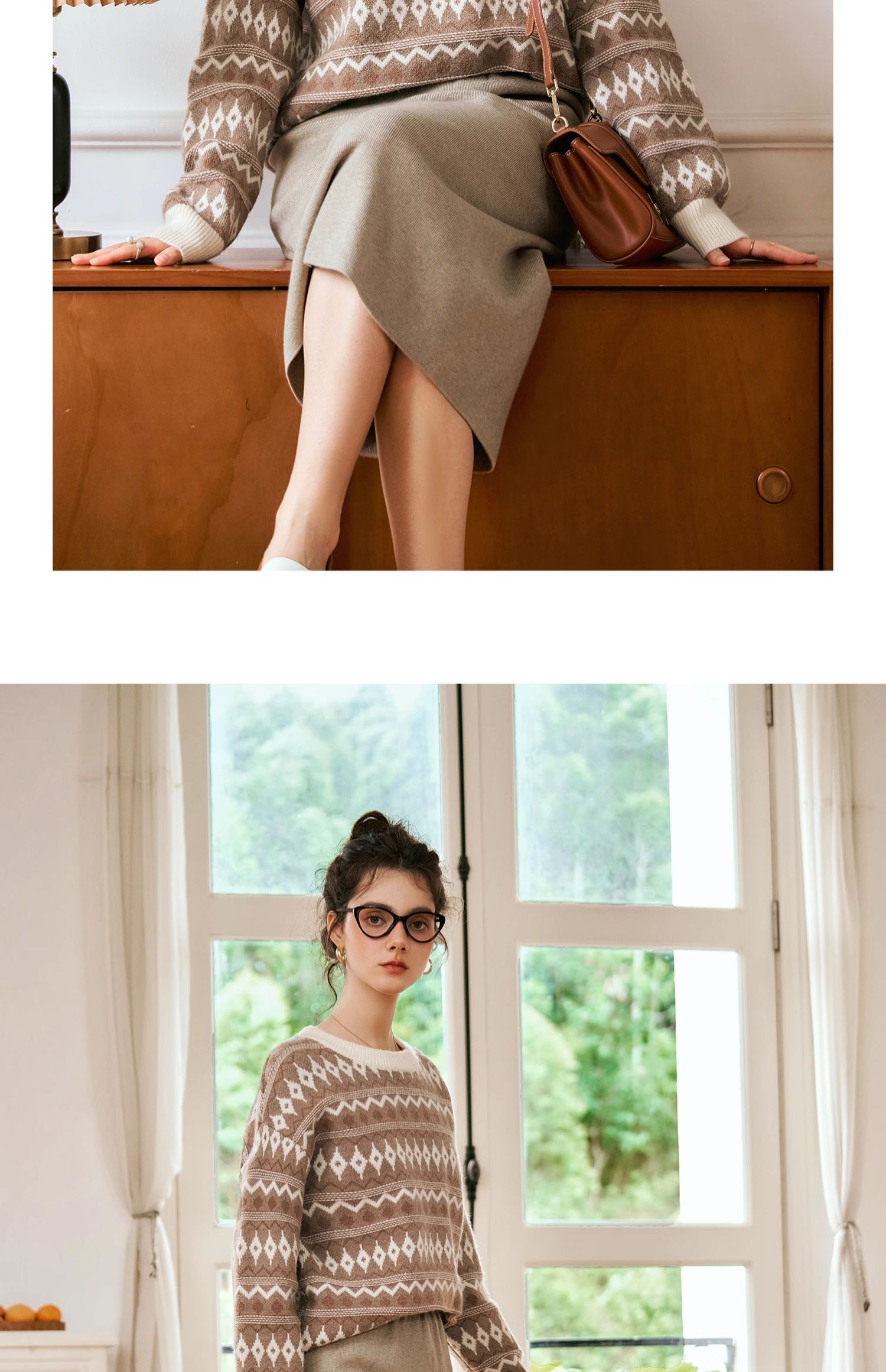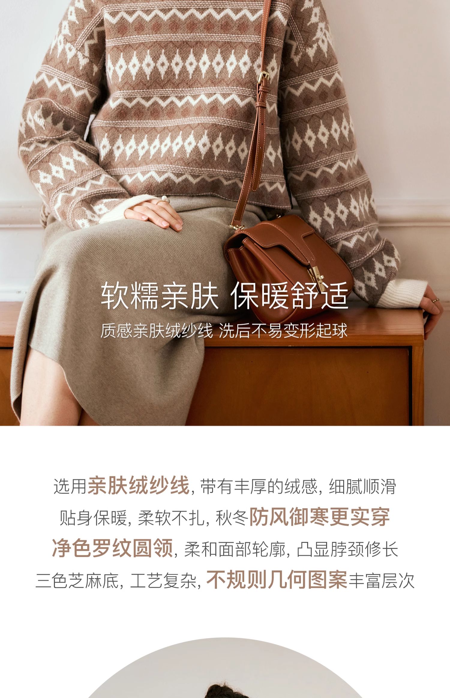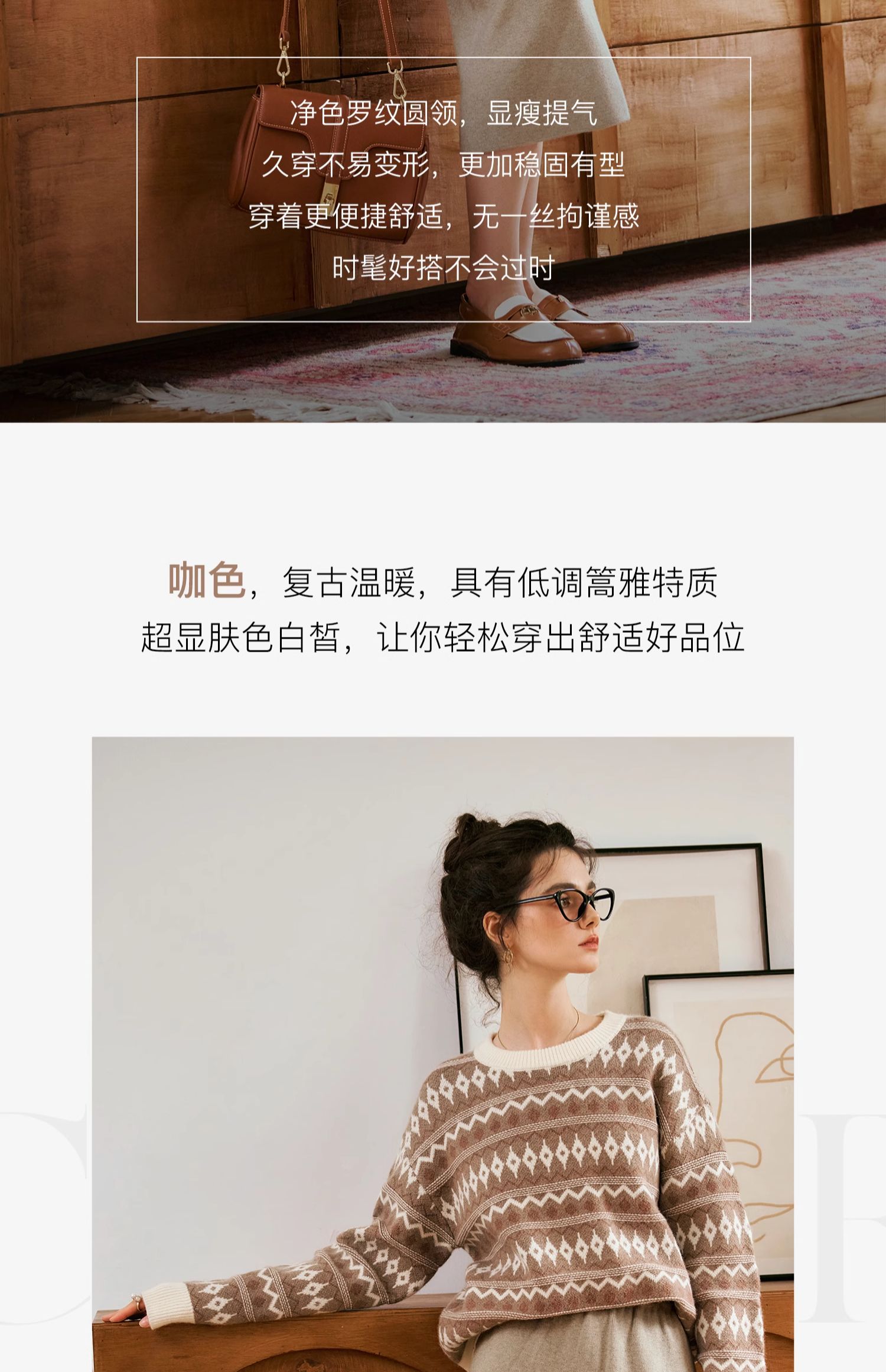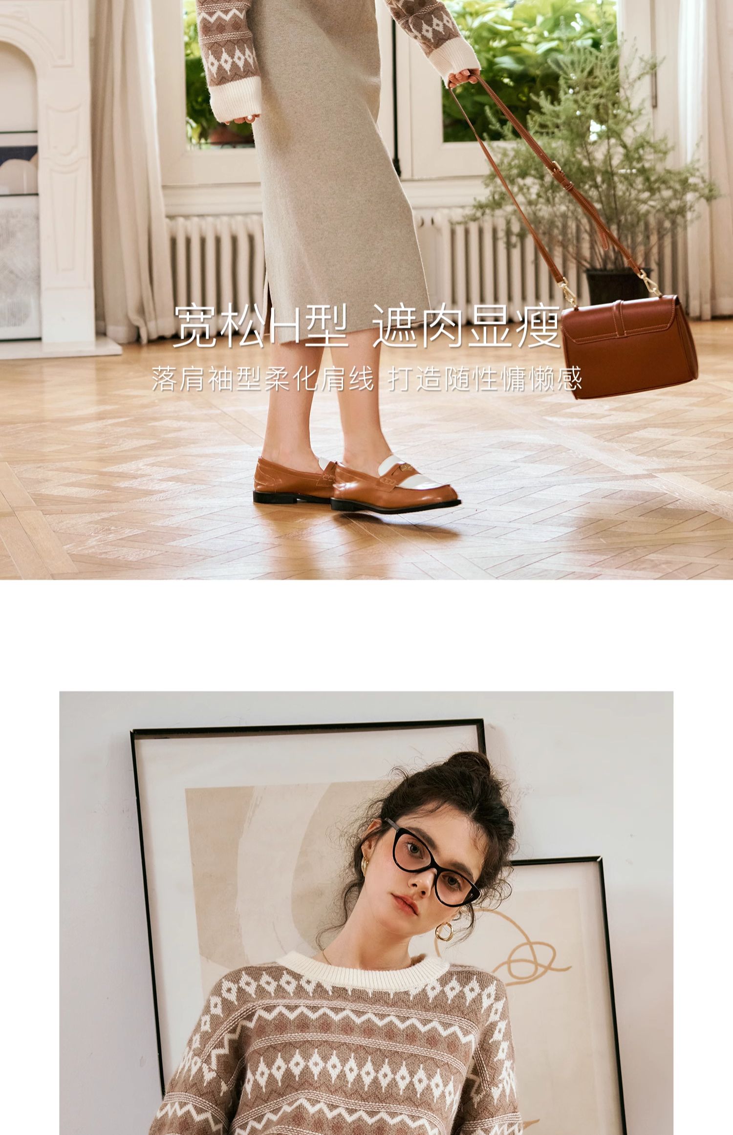 OLrain欧芮儿咖色休闲毛衣女秋季2024年新款慵懒宽松显瘦套头上衣
