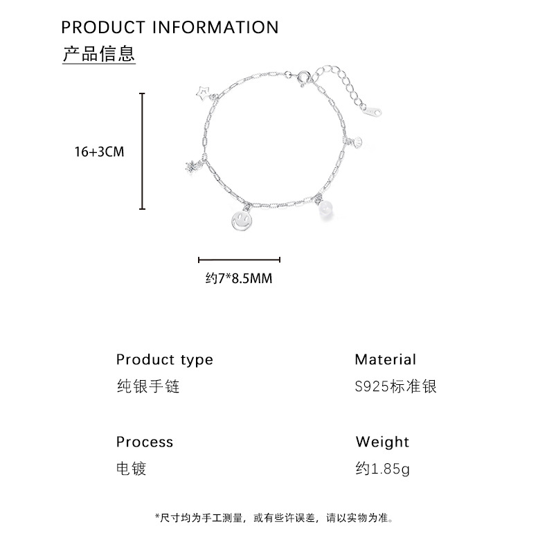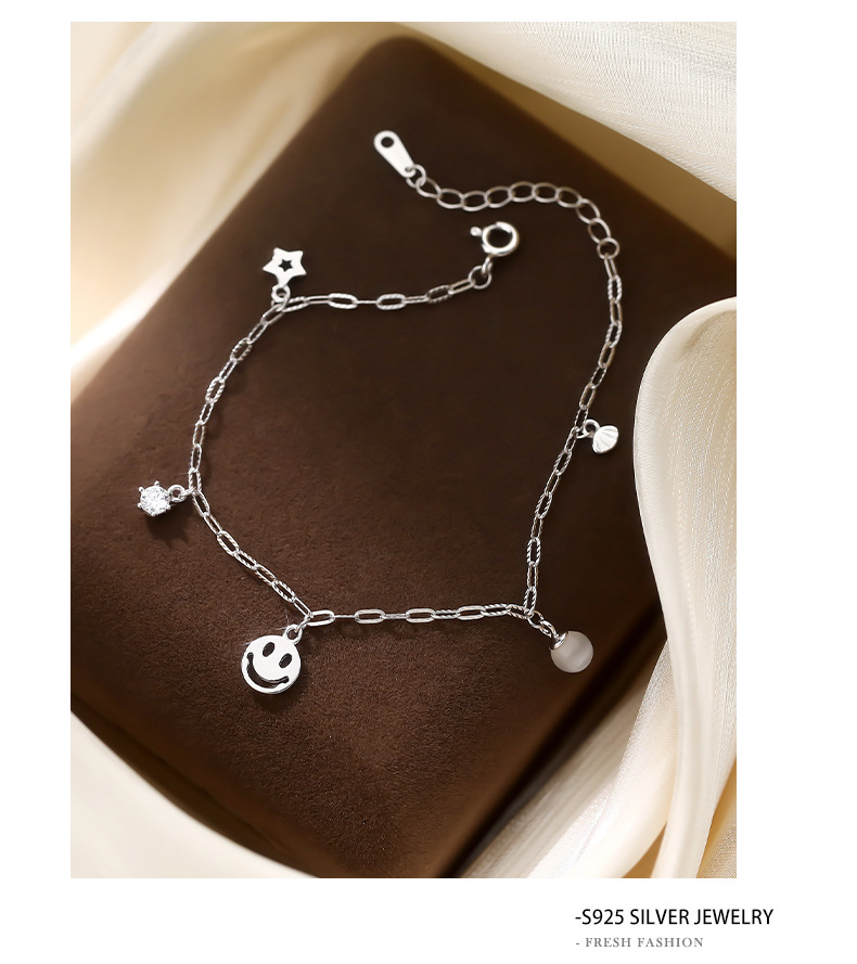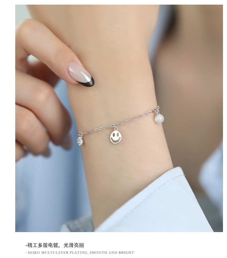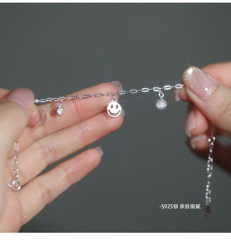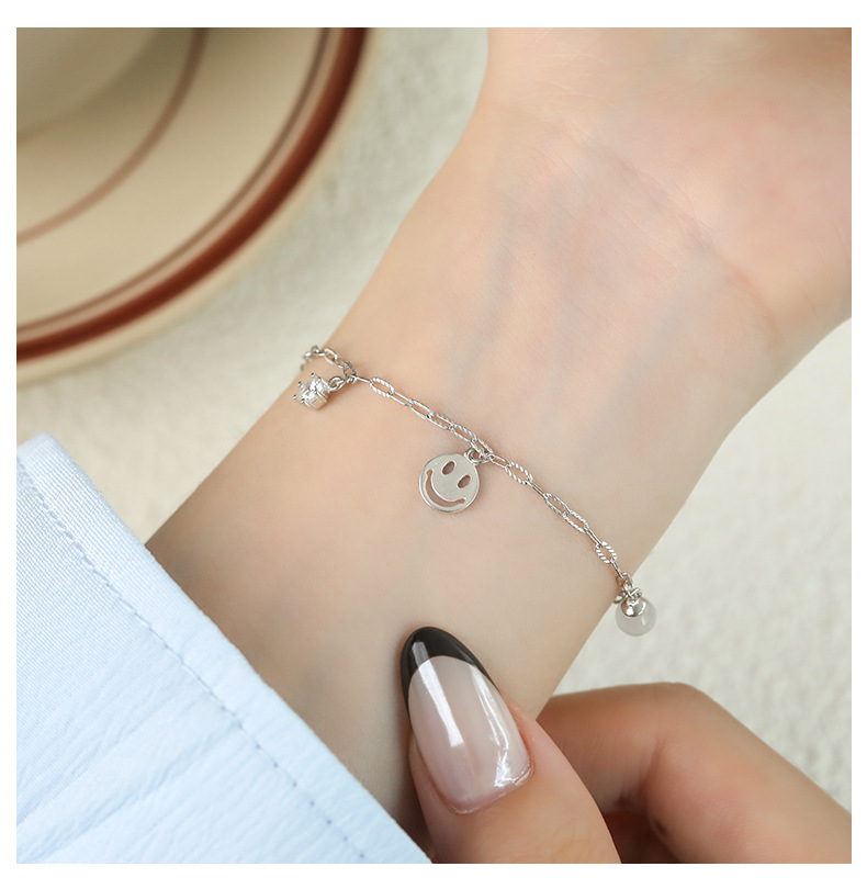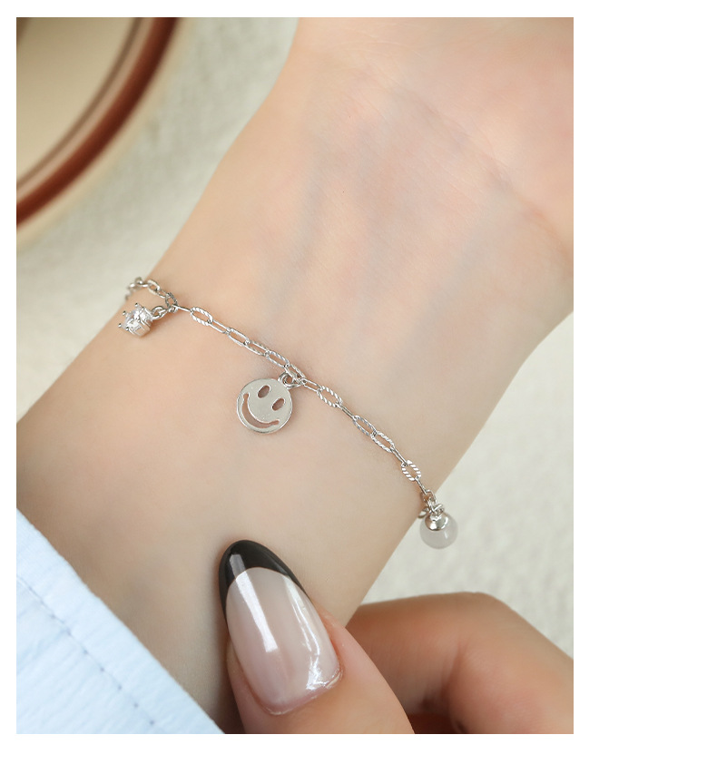 【完美心情】S925纯银创意微笑脸猫眼石手链【YXS-L1080】