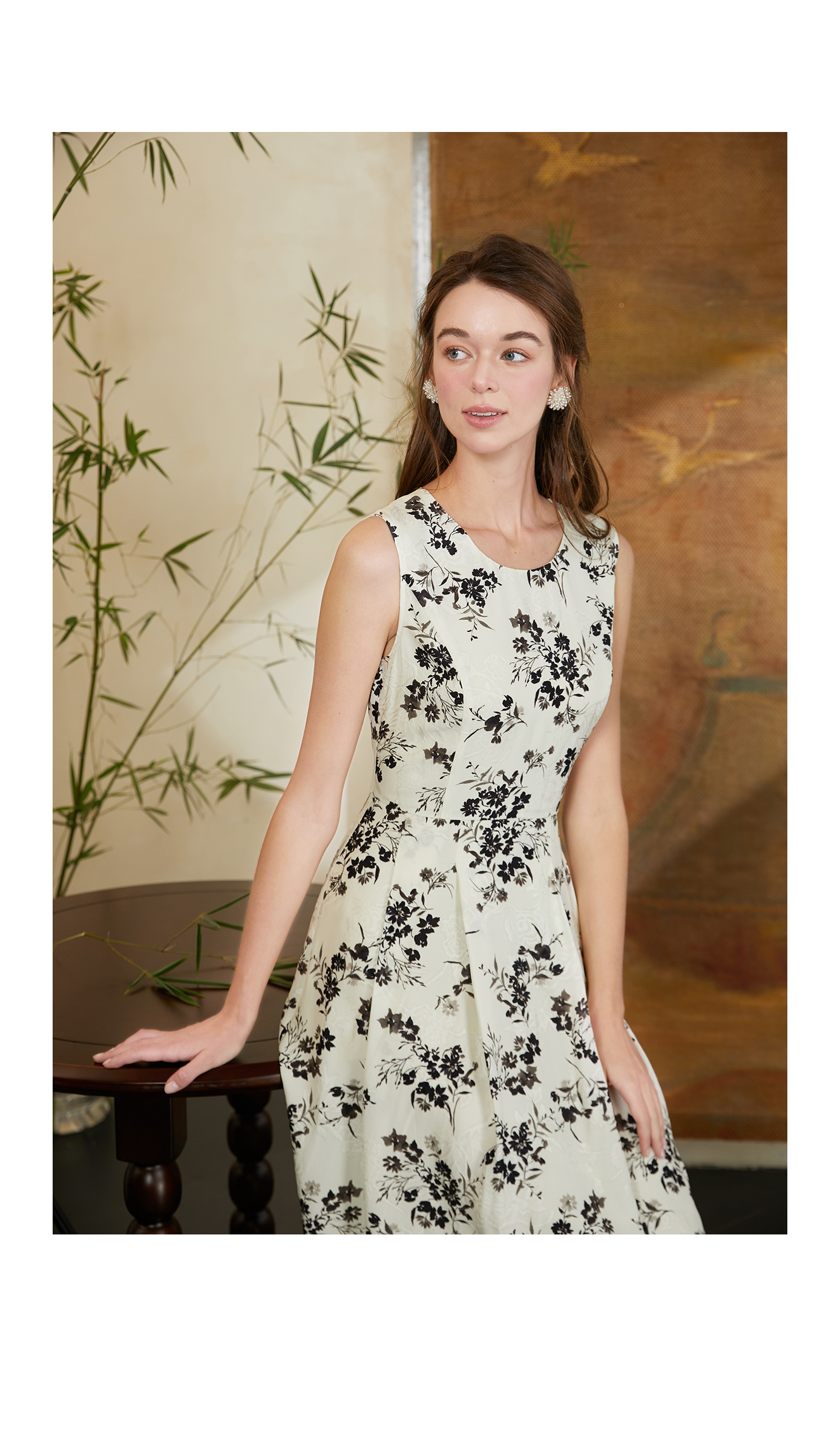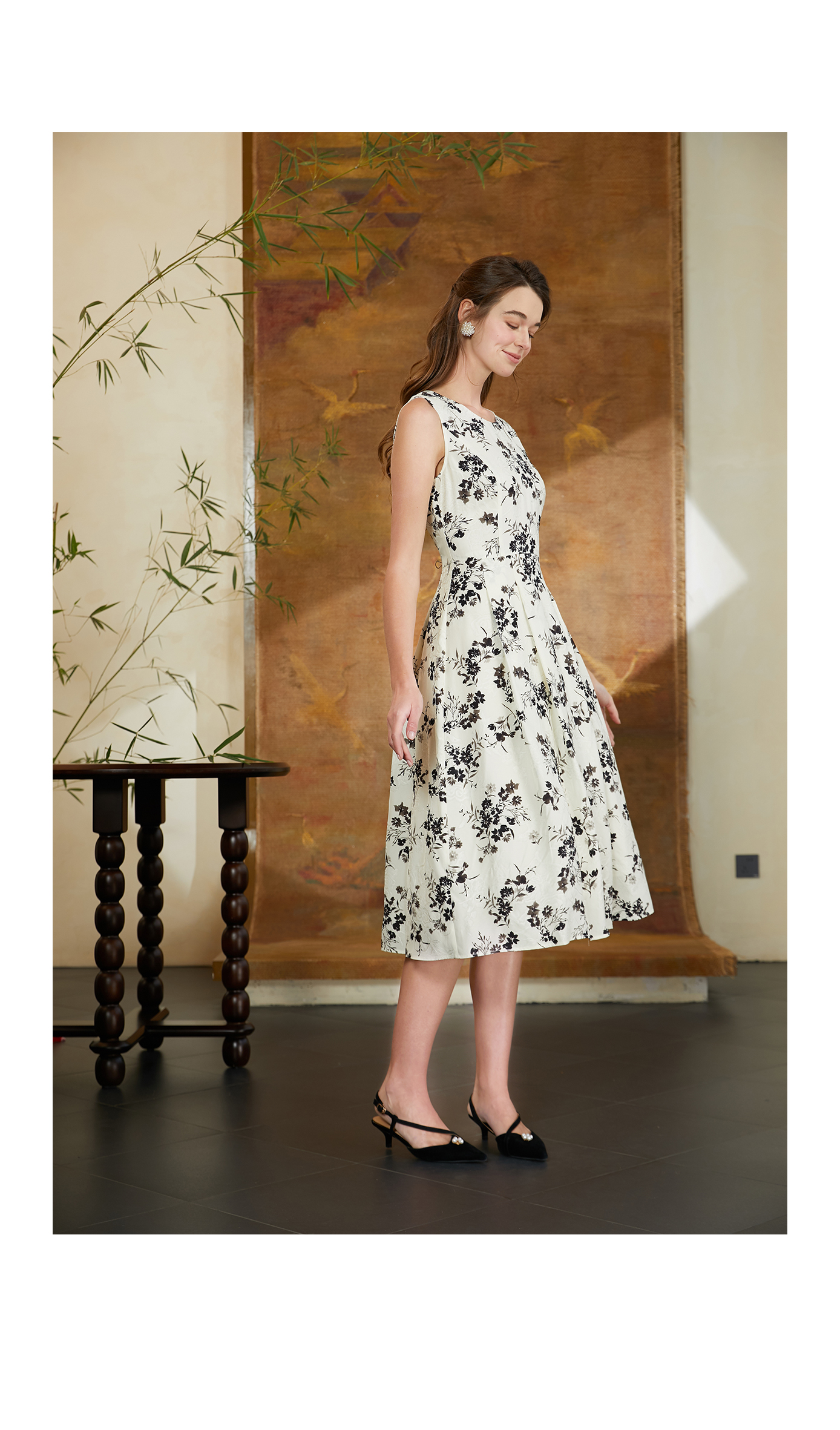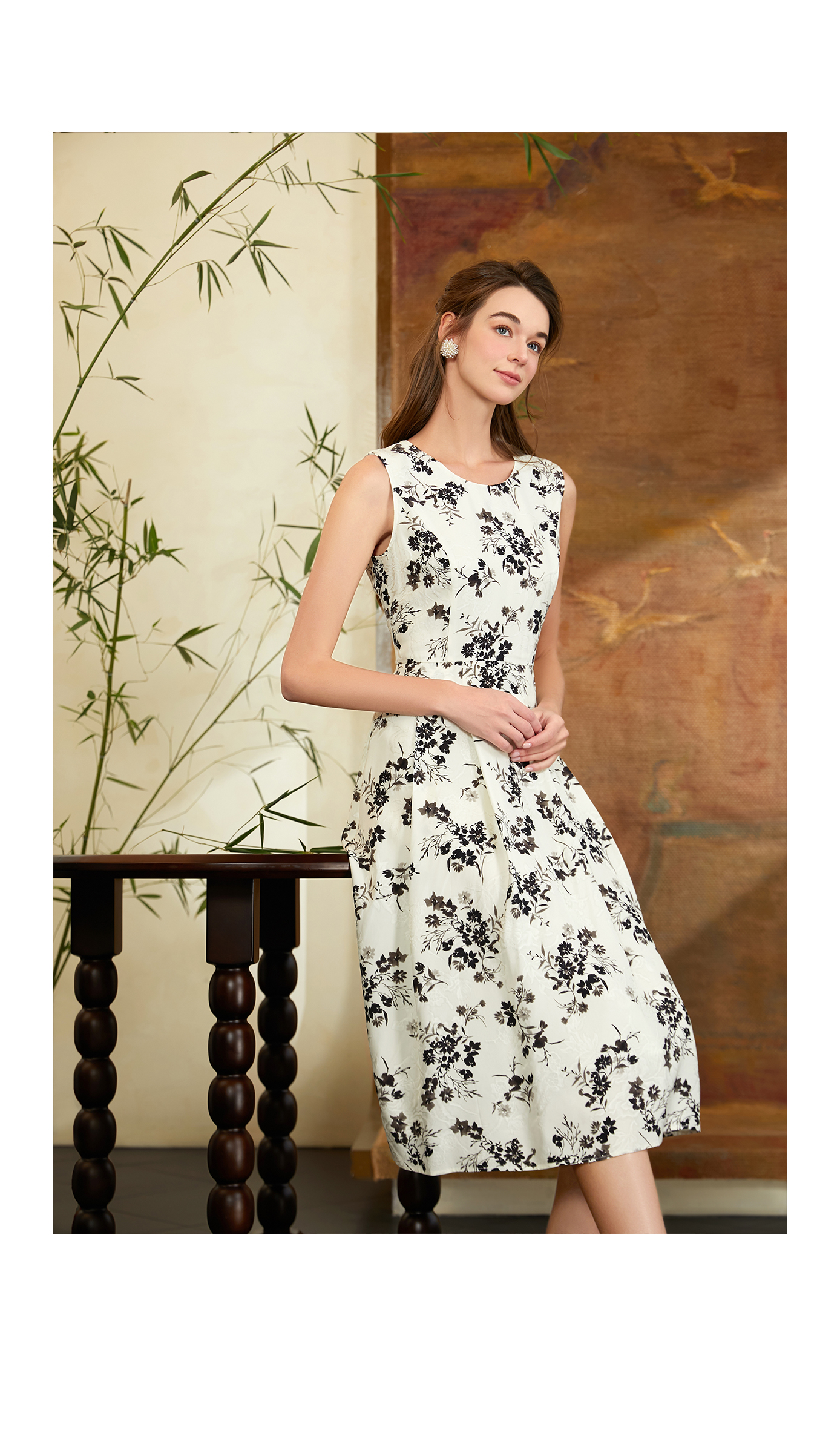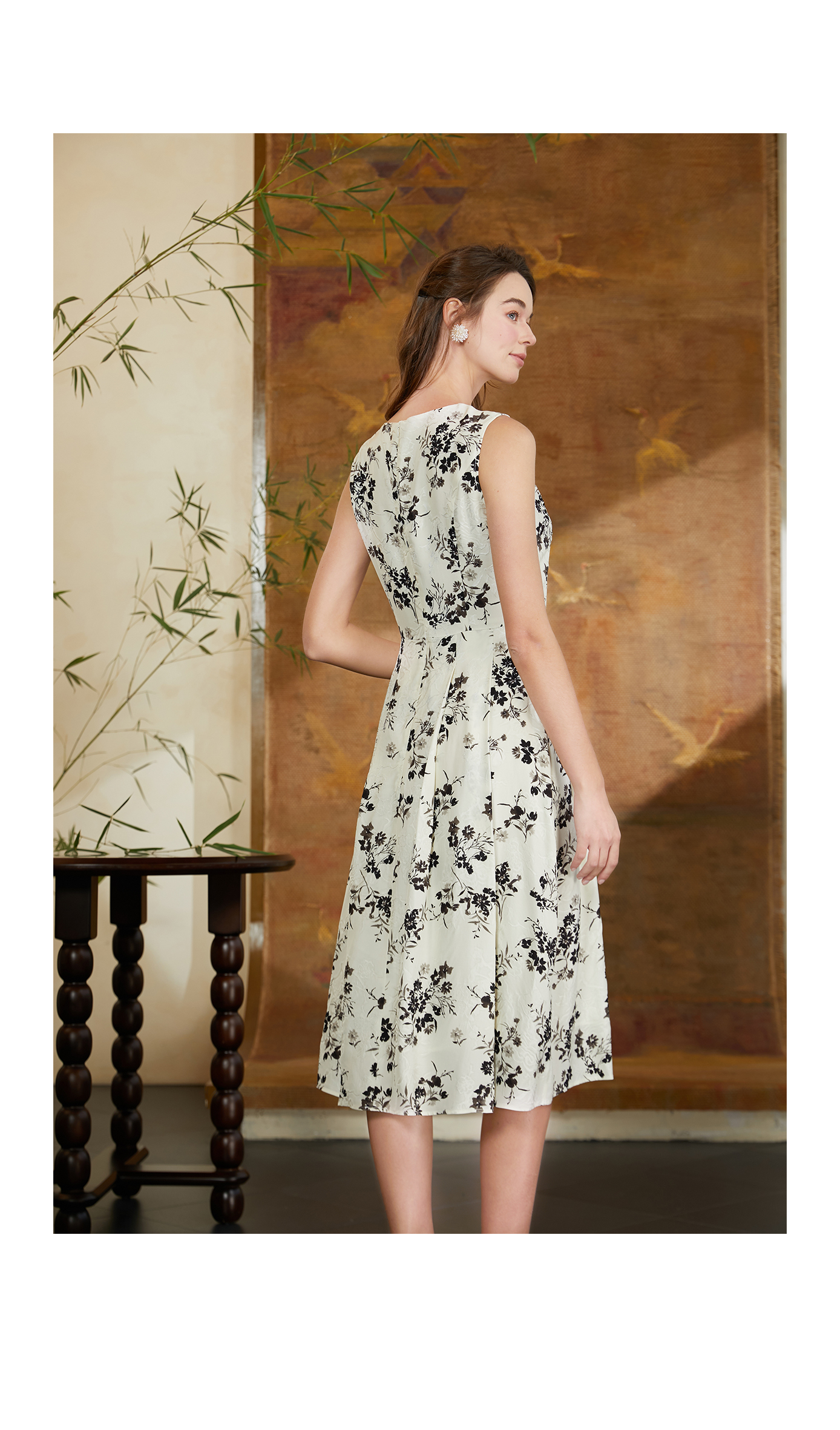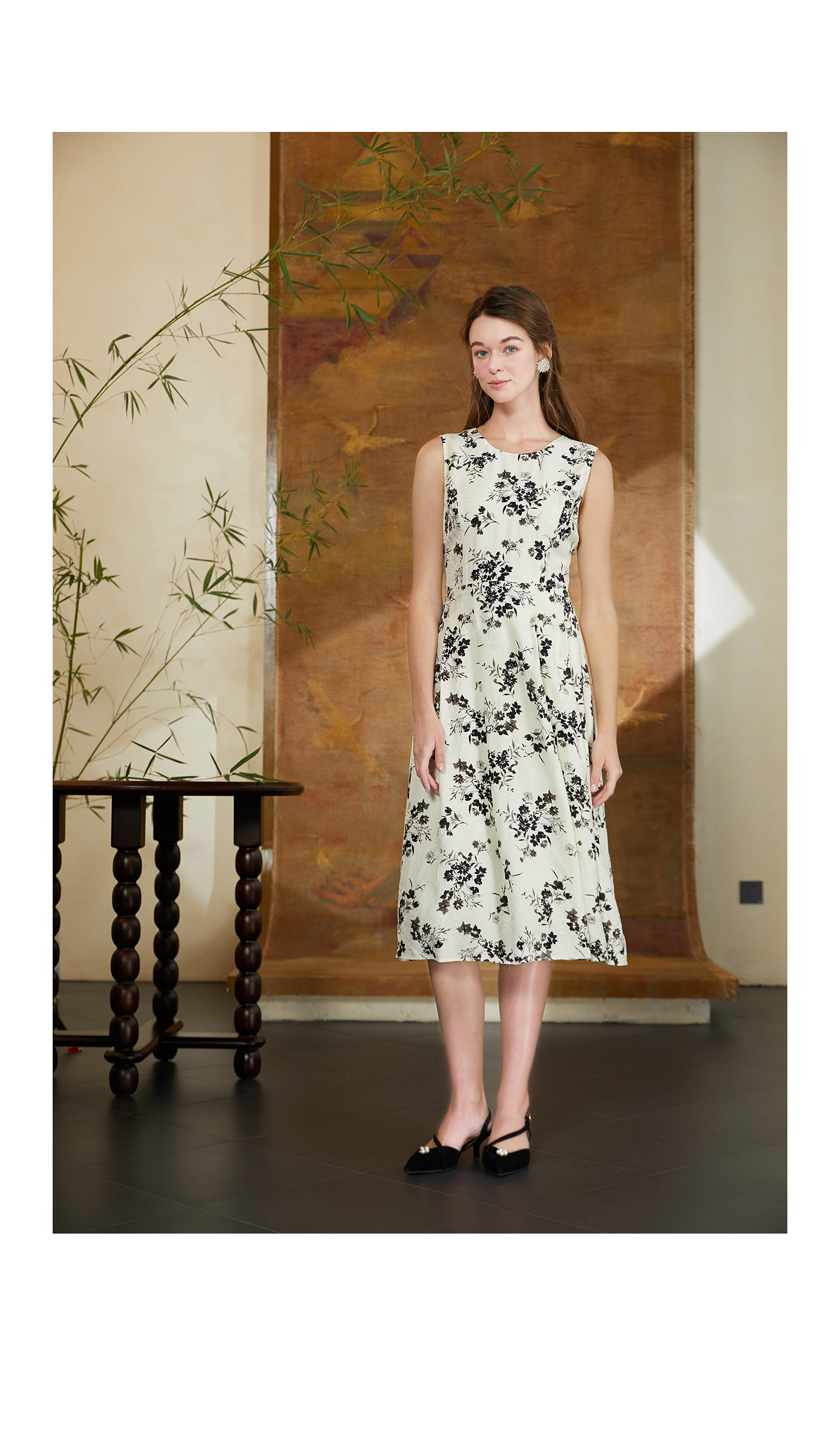司歌水墨花无袖背心收腰连衣裙A911278X
