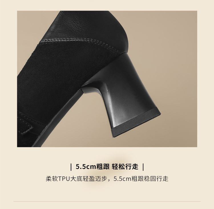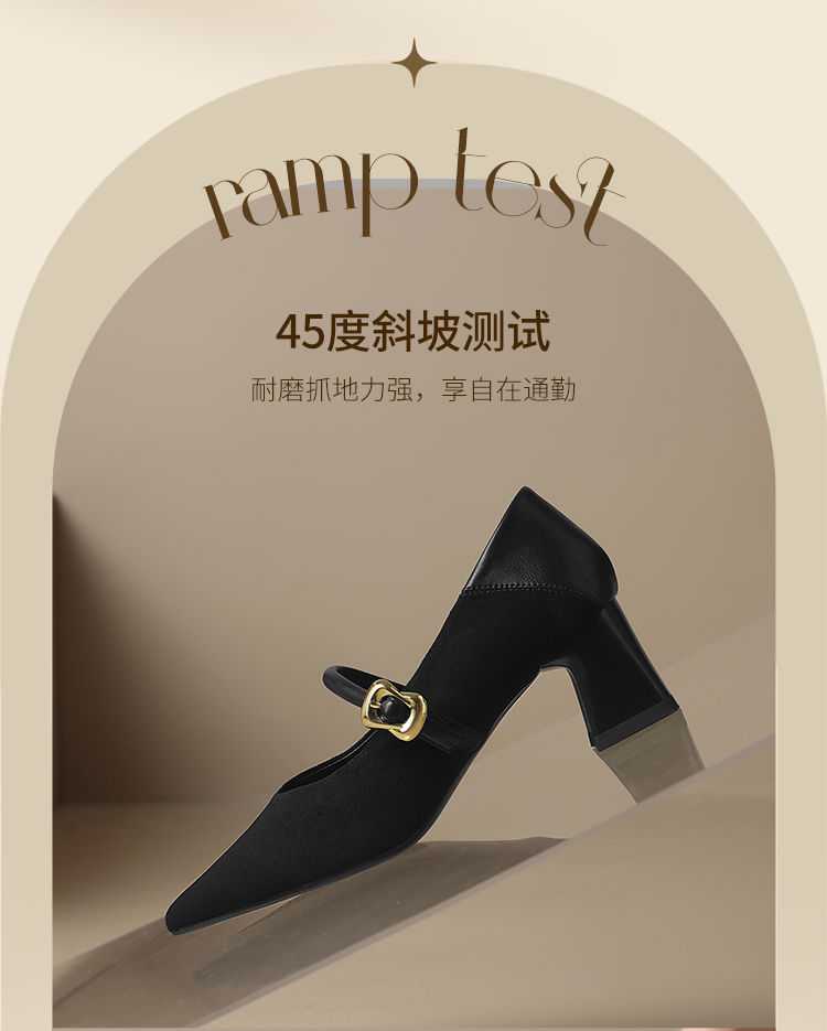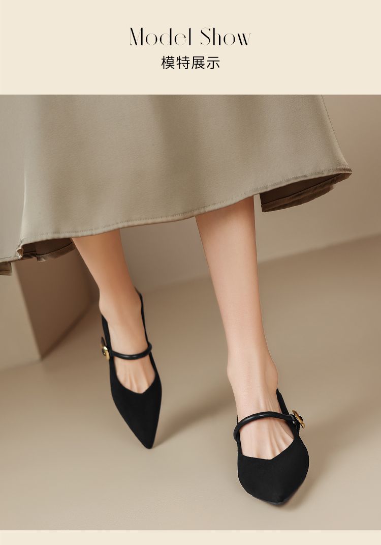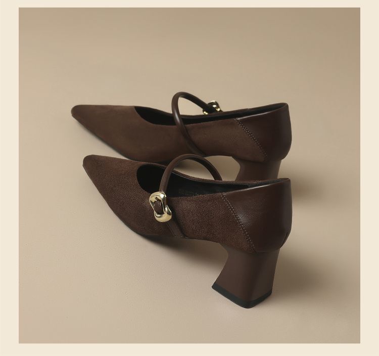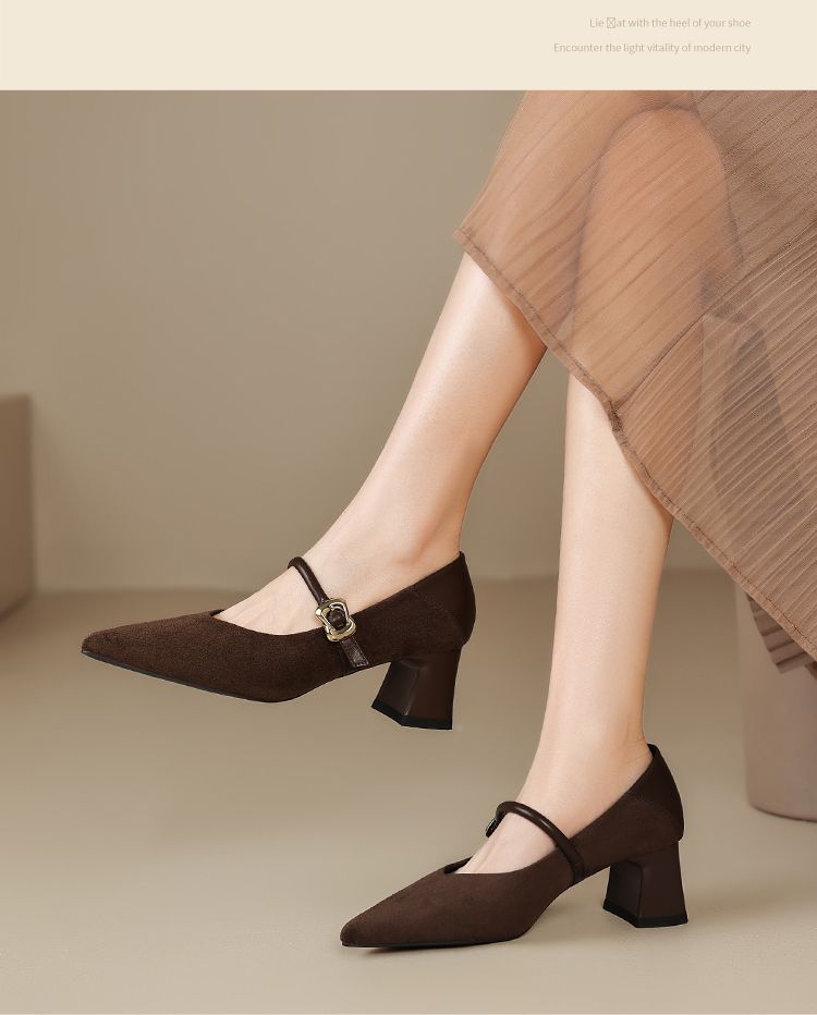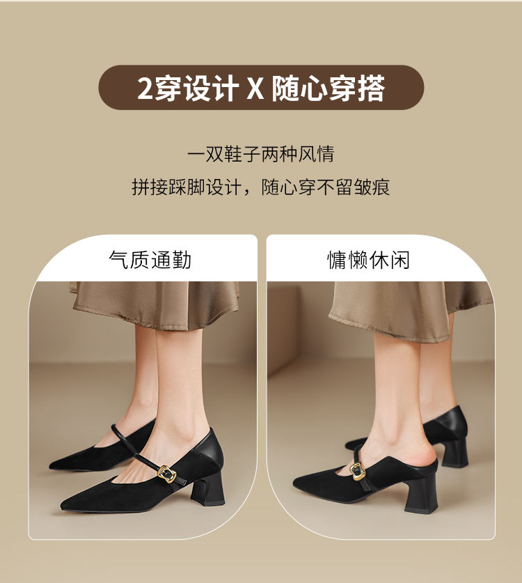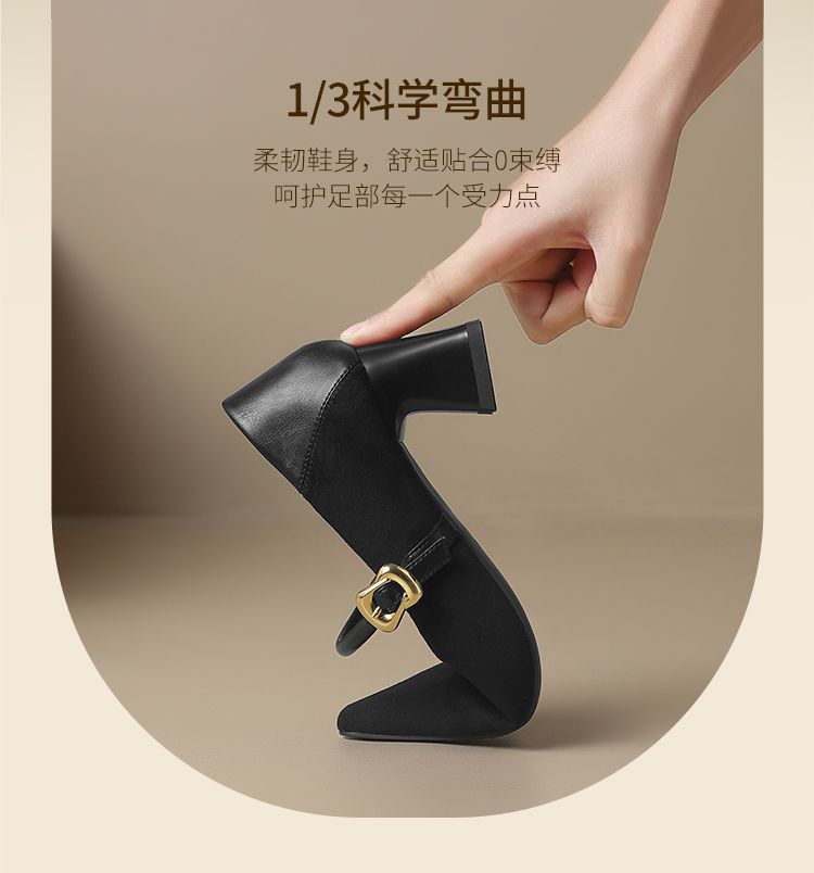 ZHR复古尖头浅口单鞋女2025新款洋气玛丽珍女鞋百搭通勤粗跟鞋子