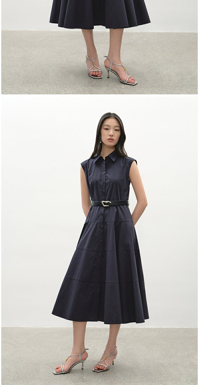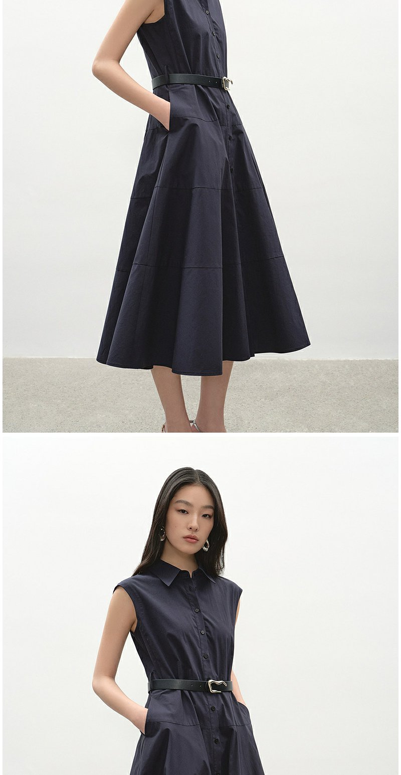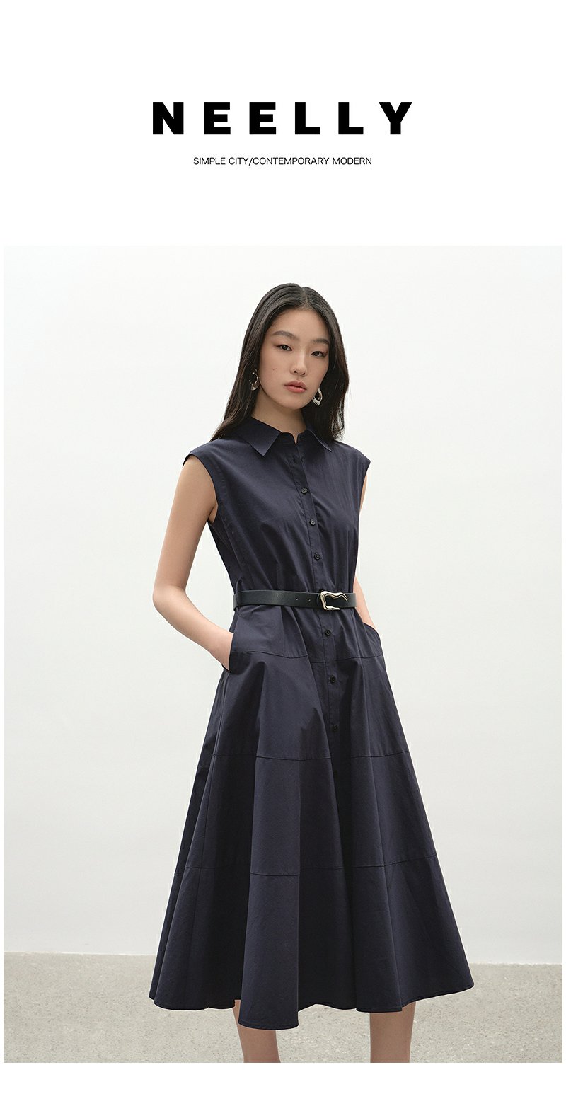 NEELLY纳俪商场同款夏季新款简约舒适无袖连衣裙女时尚通勤长裙N25042Y01059