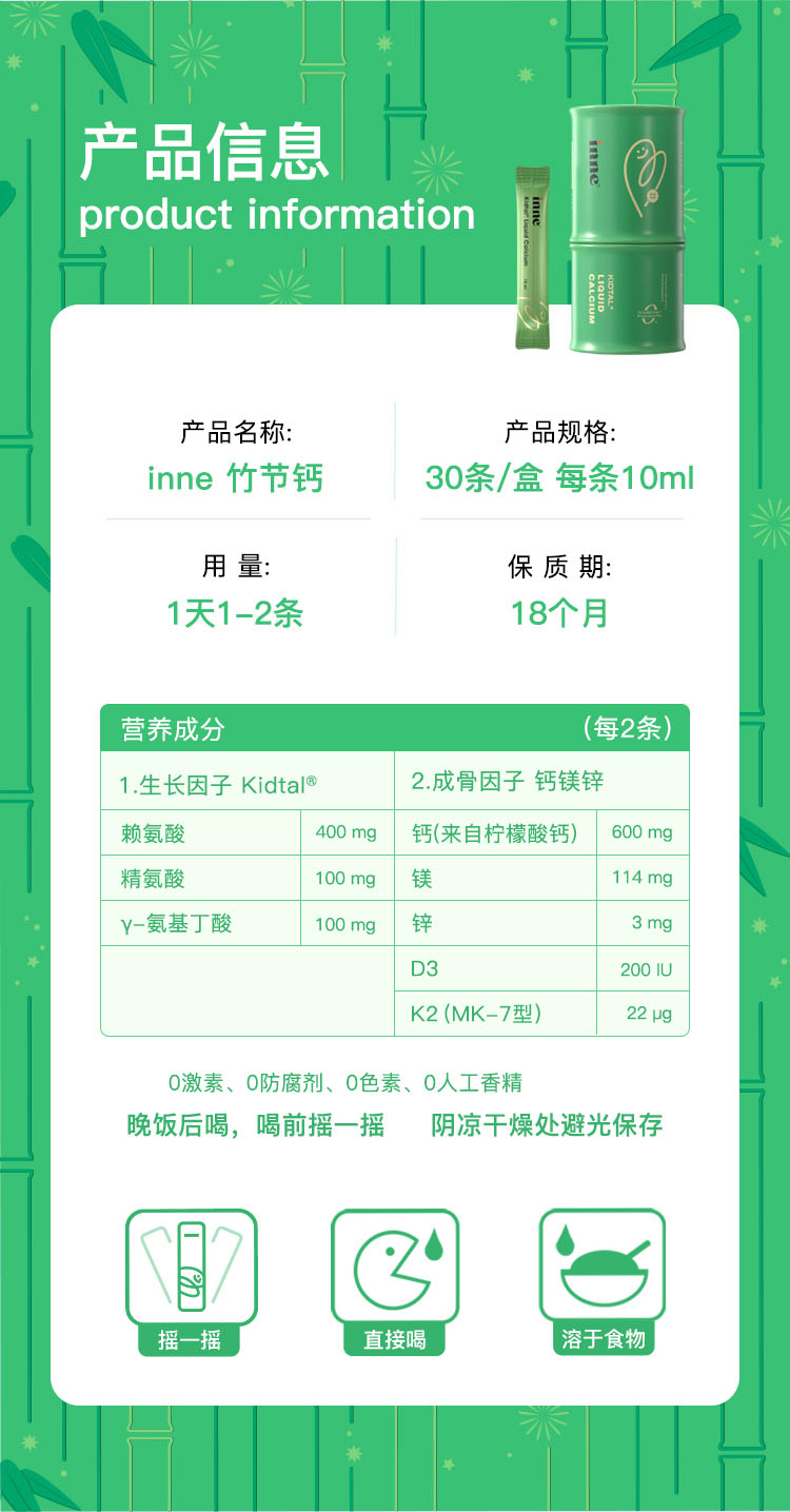 【跨境进口】inne竹节钙青少年钙儿童生长钙镁锌 赖氨酸钙6-18岁| 报关后不支持退换货