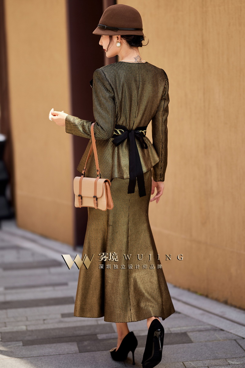 1202026 鎏金岁月 韩国进口定制烫金料人纹料外套 雾境
