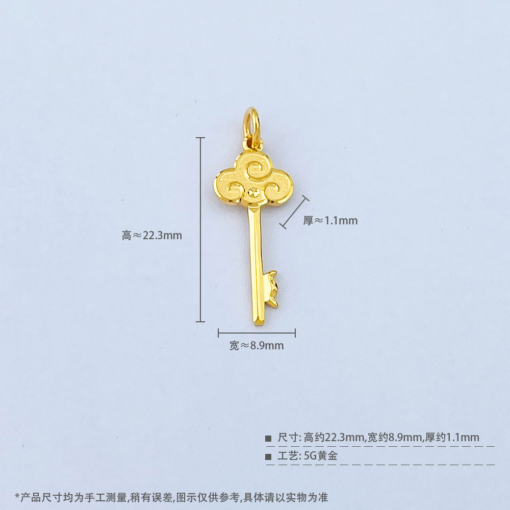 【限时7.5折】足金999 (足金999字印)5G黄金实心如意钥匙吊坠(5GDZ00495)(预售产品下单后不退款不退货不换货不补差价