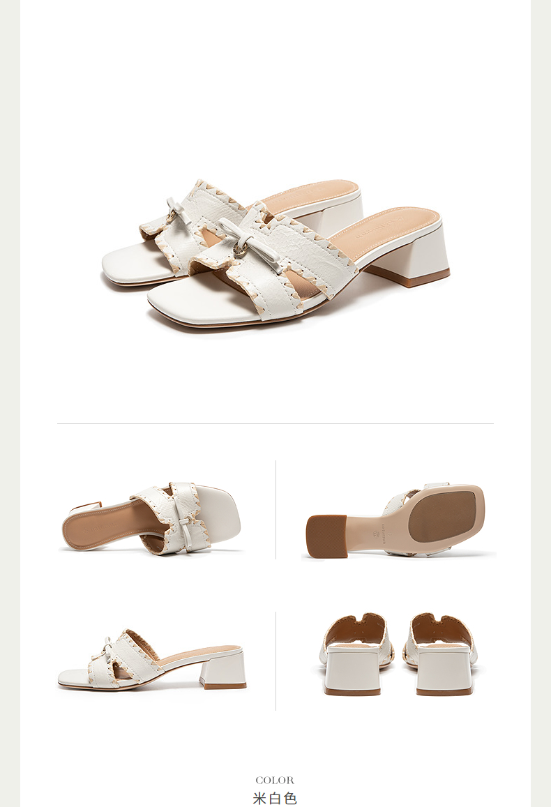 natursun外穿凉拖鞋女法式方头露趾粗跟休闲一字拖N25363202